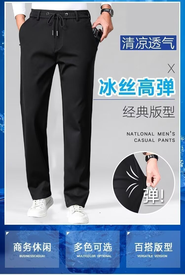 공장 직접 남성 스트레치 캐주얼 바지 봄과 여름 얇은 탄성 허리 스포츠 바지 높은 허리 스트레이트 느슨한 바지