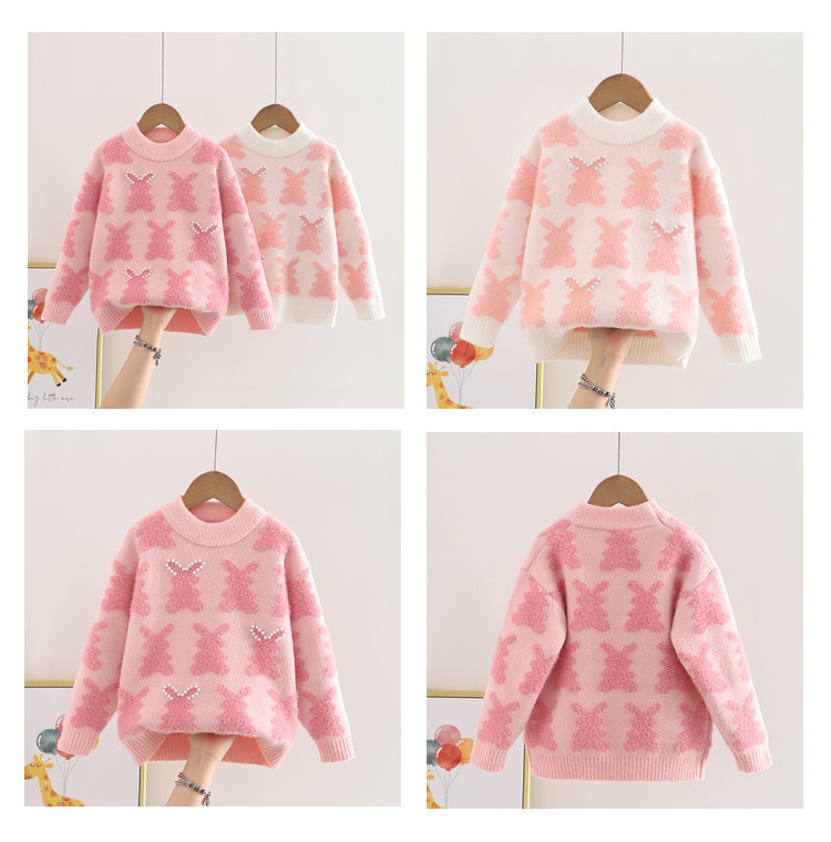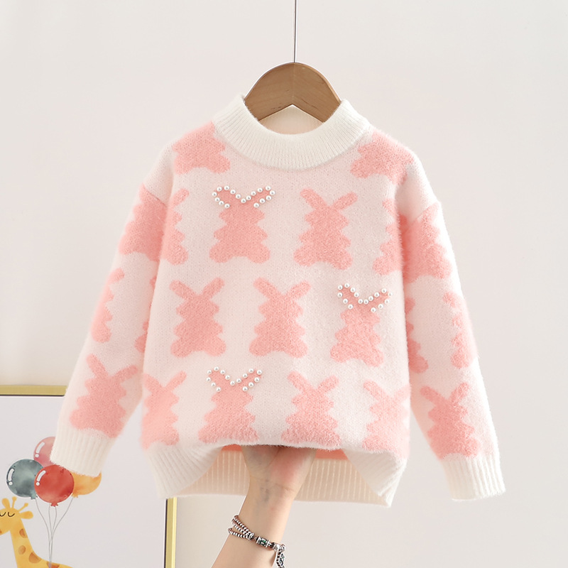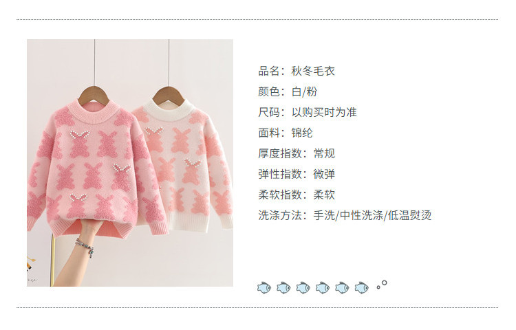 새 여중생 스웨터 중소형 어린이 둥근 목 터틀넥 가을과 겨울 만화 니트웨어 긴소매 한국산 벨벳 반입 금지