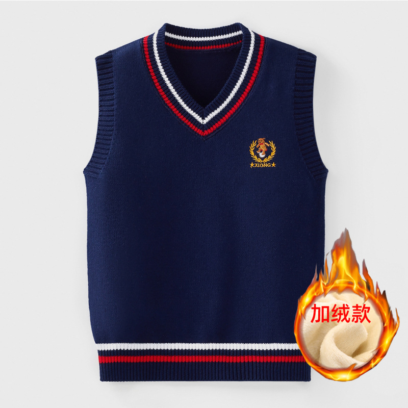 남학생과 여학생 민소매 초등학교 소년 조끼 어린이 조끼 가을 및 겨울 중 큰 어린이 순면 니트 스웨터 웨이스트 코트