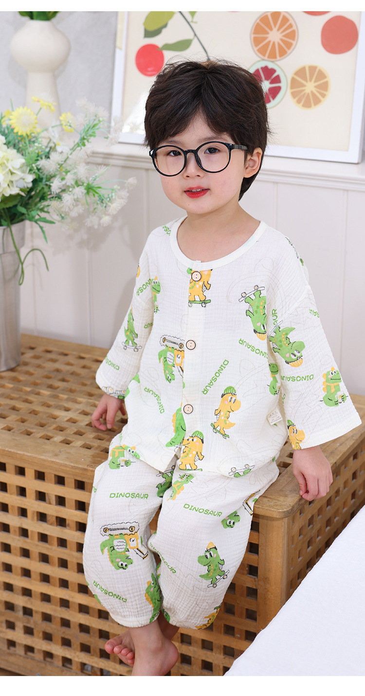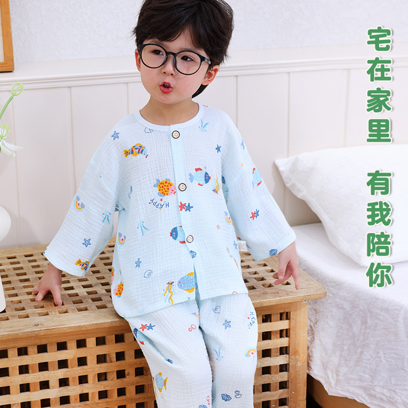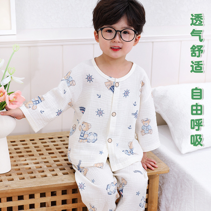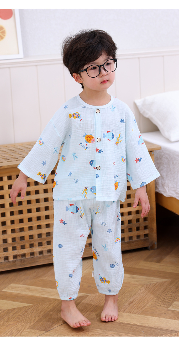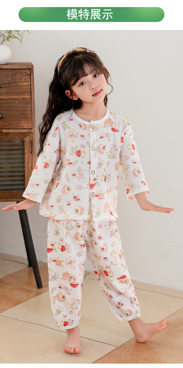 2024 여름 어린이 이중 면사 여아 남아 잠옷 순면 아기 홈웨어 에어컨 의류 만화스토어 가기