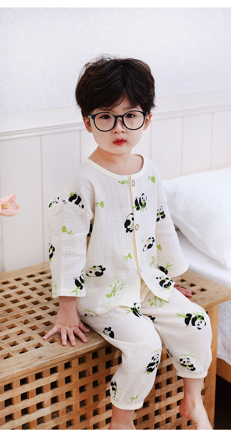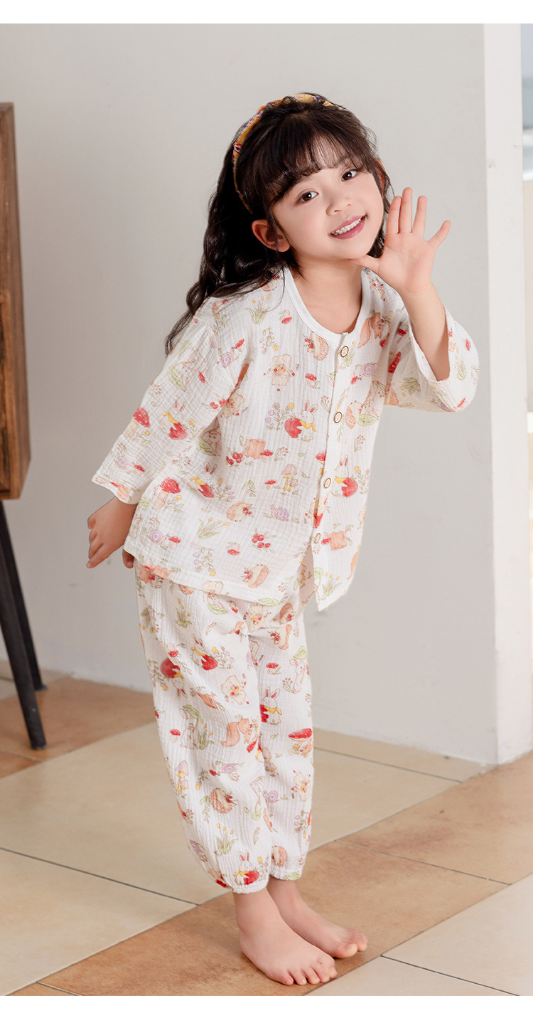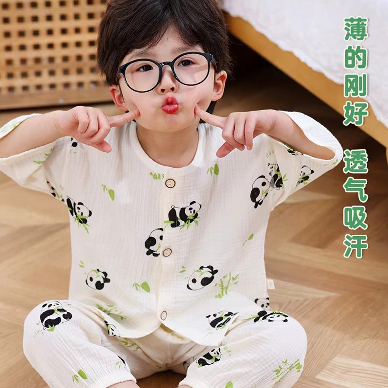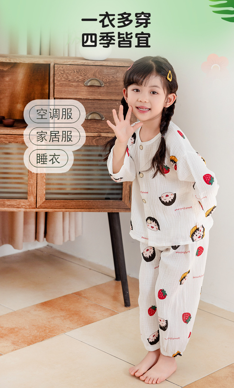 2024 여름 어린이 이중 면사 여아 남아 잠옷 순면 아기 홈웨어 에어컨 의류 만화스토어 가기