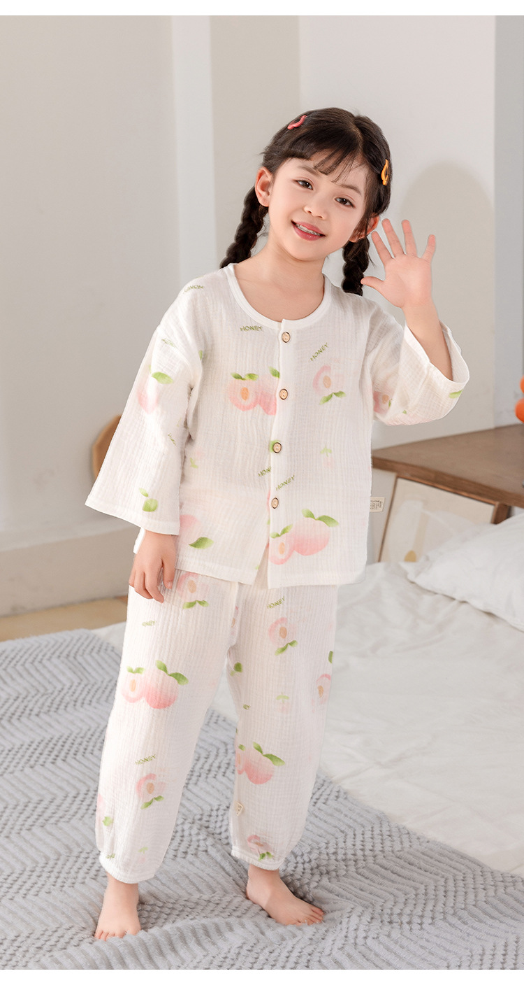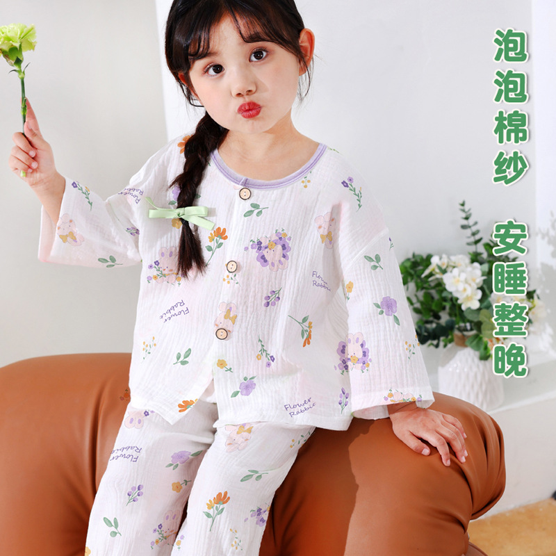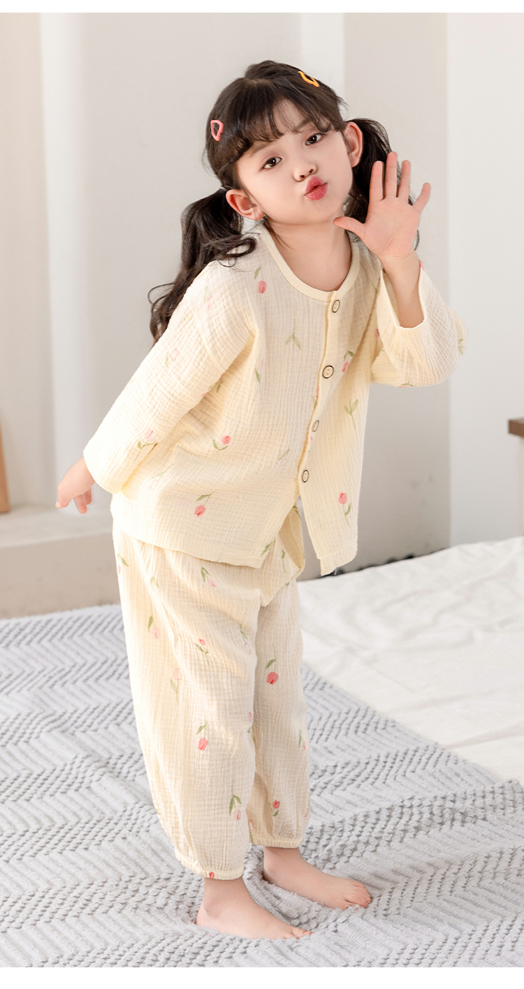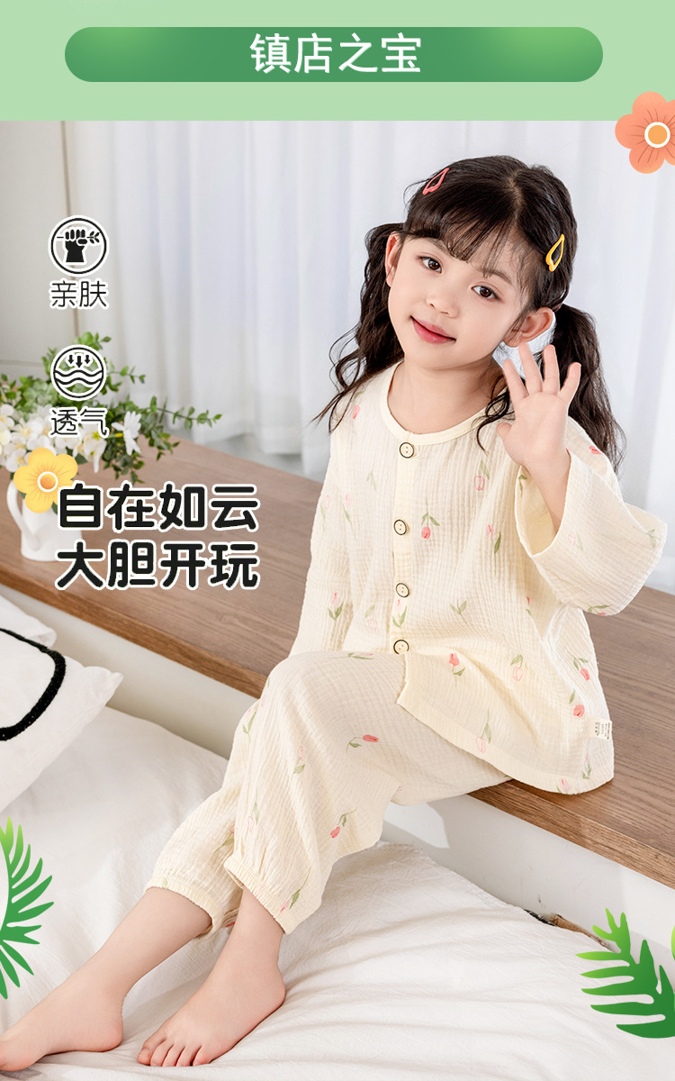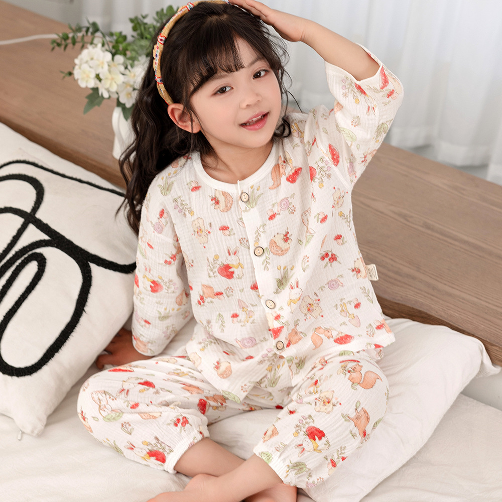 2024 여름 어린이 이중 면사 여아 남아 잠옷 순면 아기 홈웨어 에어컨 의류 만화스토어 가기