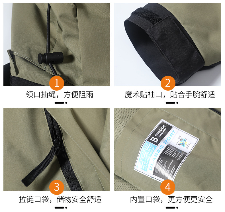 2024 남자와 여자의 싱글 레이어 야외 코트 재킷 얇은 컬러 블록 등산 세트 느슨한 커플 재킷