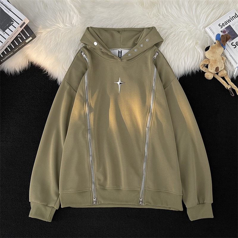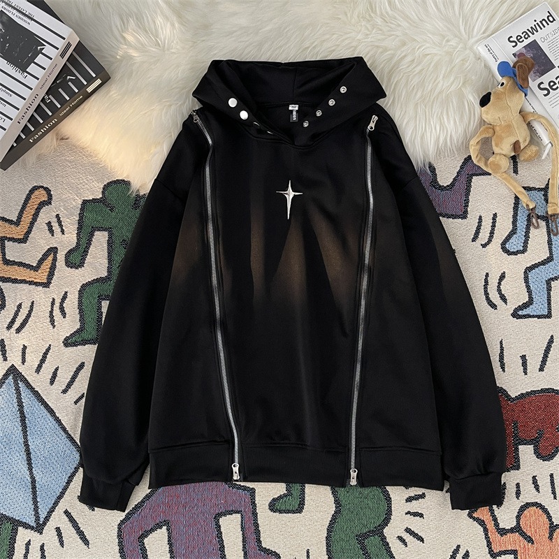 하이 스트리트 디자인 스타 지퍼 스웨트 재킷 남성 봄과 가을 유럽과 미국의 무거운 빈티지 레트로 루즈 탑