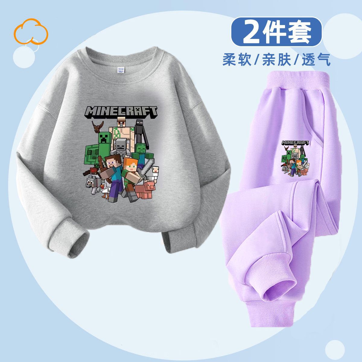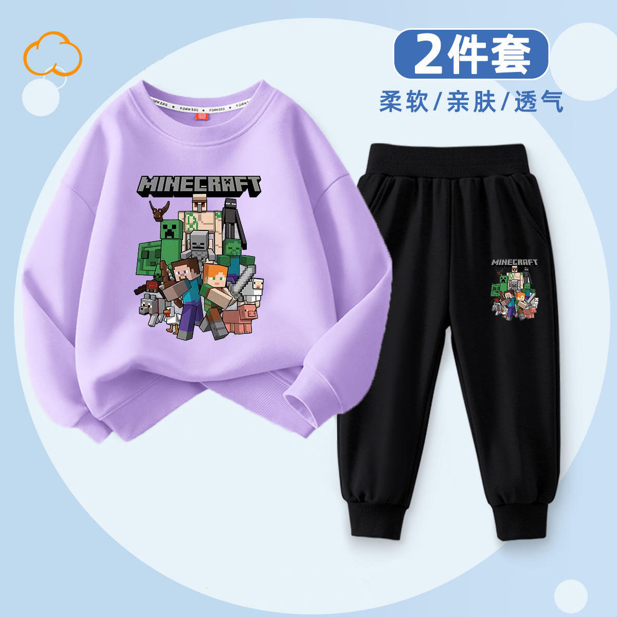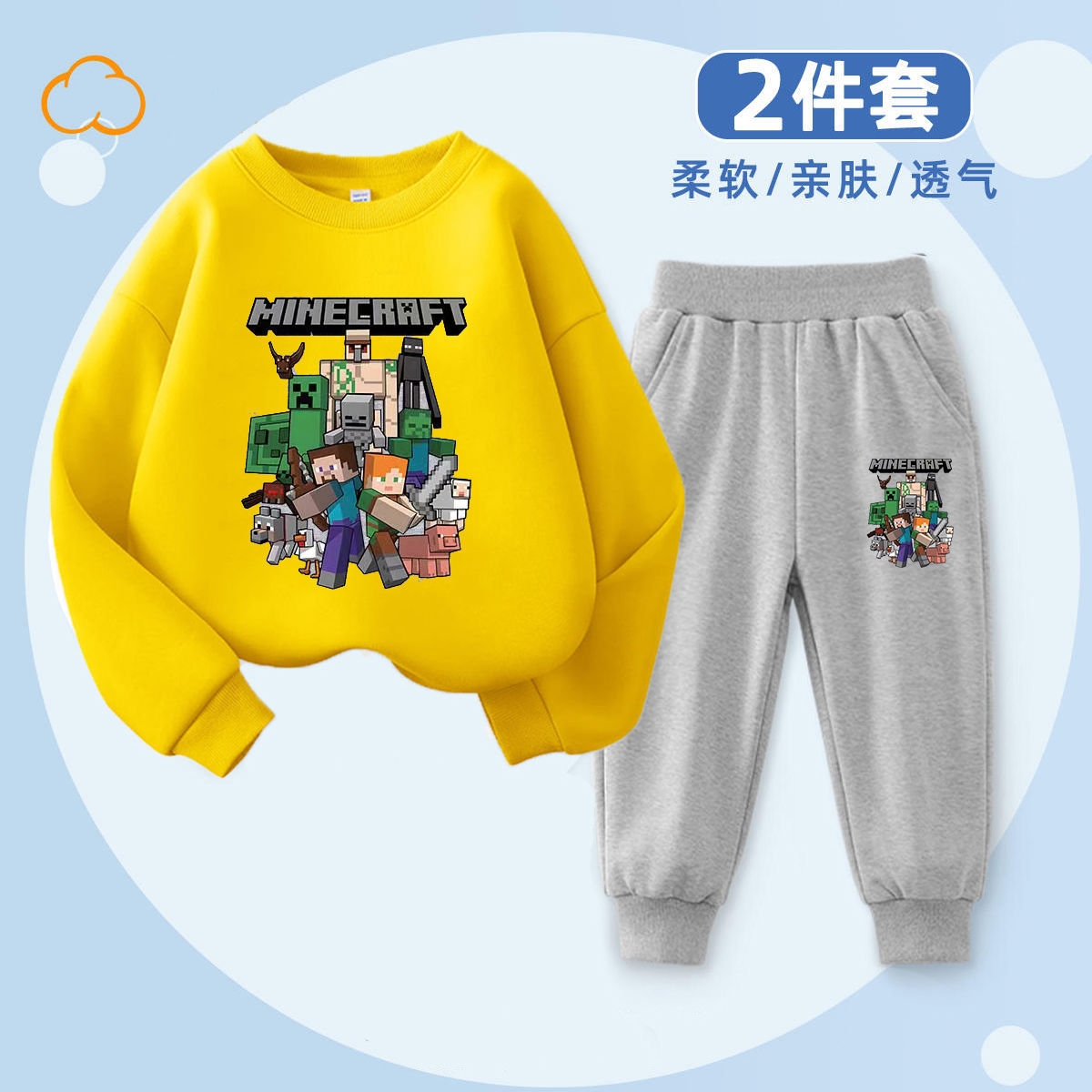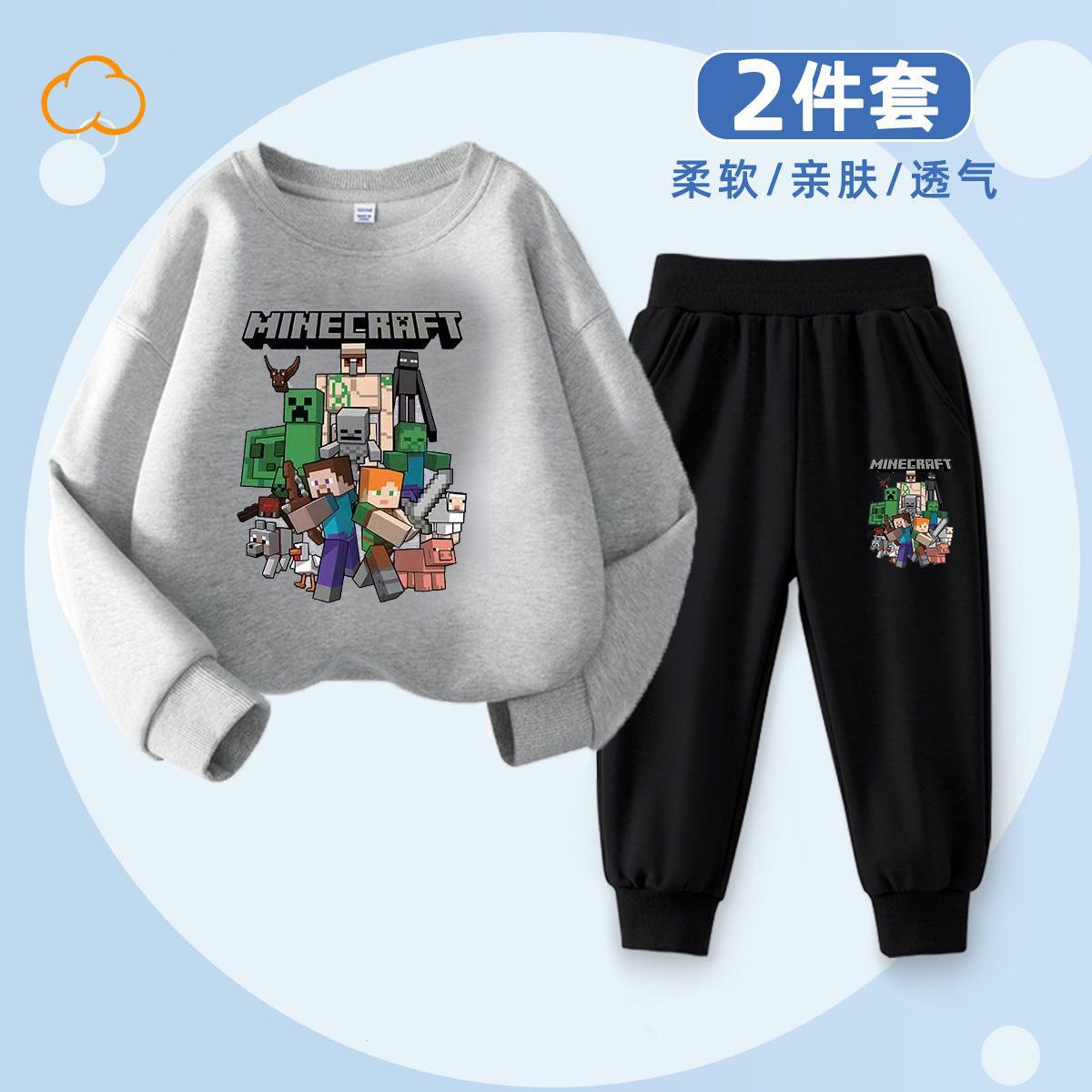 내 세계 소년의 봄과 가을 세트 아이들의 잘 생긴 유행 둥근 목 스웨트 셔츠 다리 바지 2 조각 얇은 옷스토어 가기
