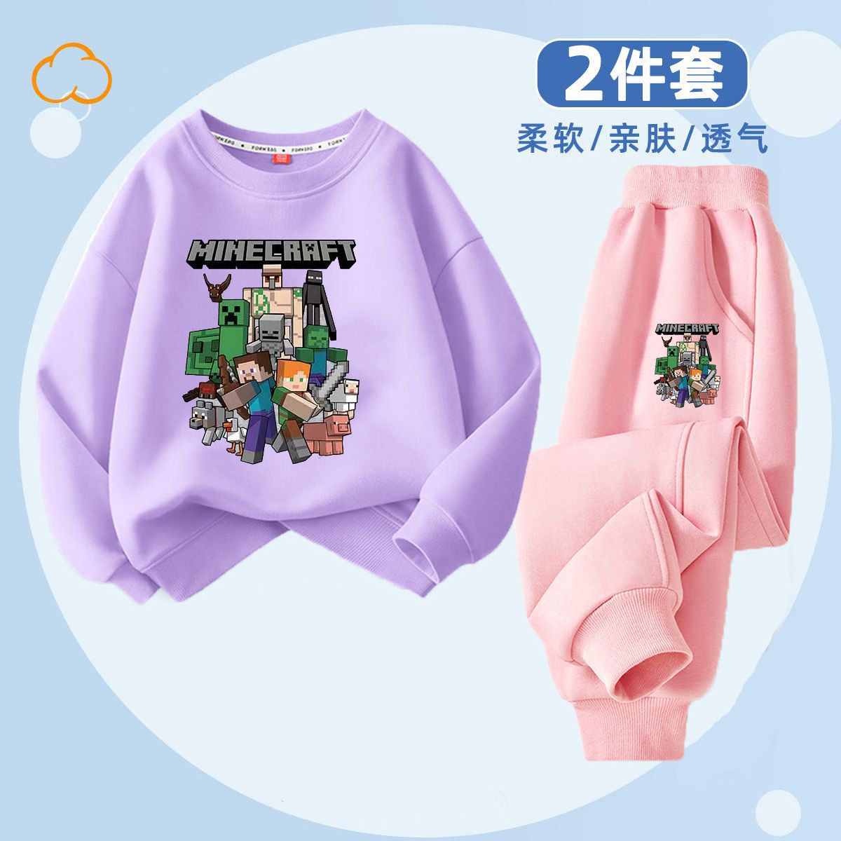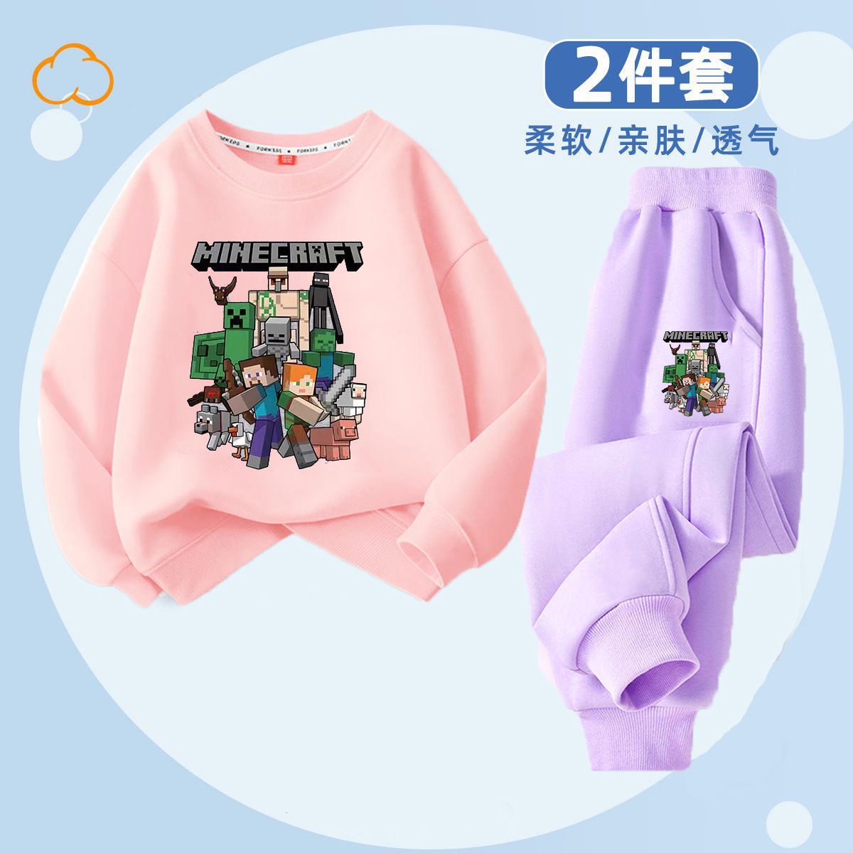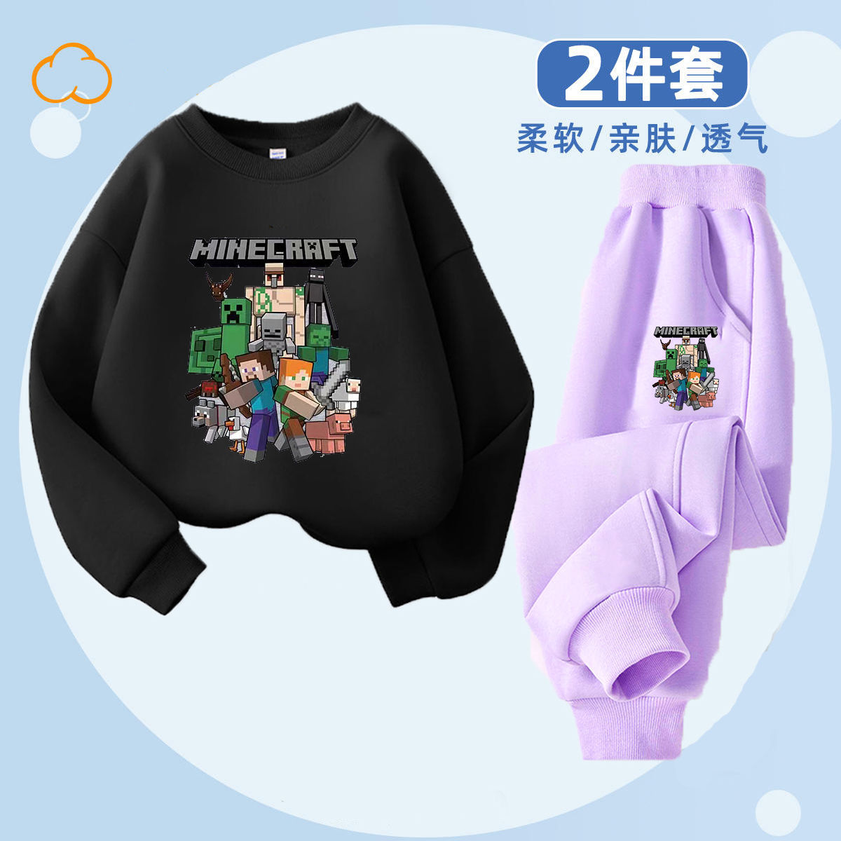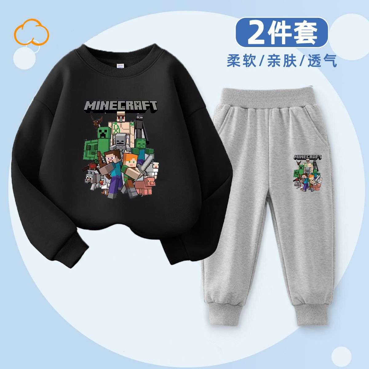 내 세계 소년의 봄과 가을 세트 아이들의 잘 생긴 유행 둥근 목 스웨트 셔츠 다리 바지 2 조각 얇은 옷스토어 가기