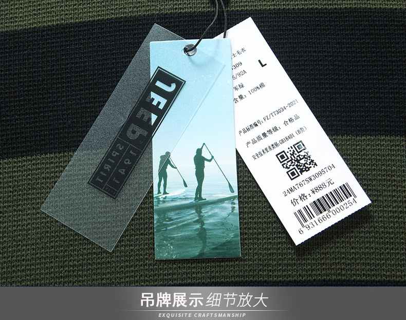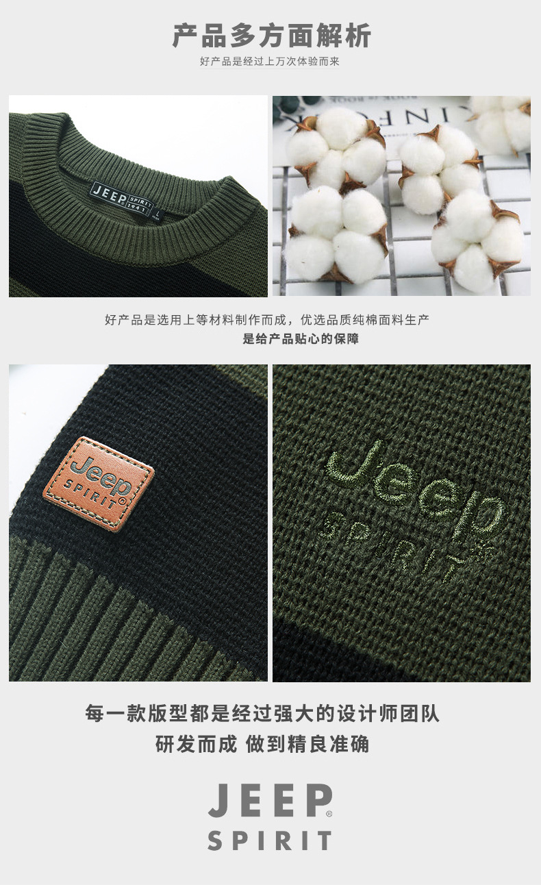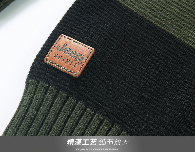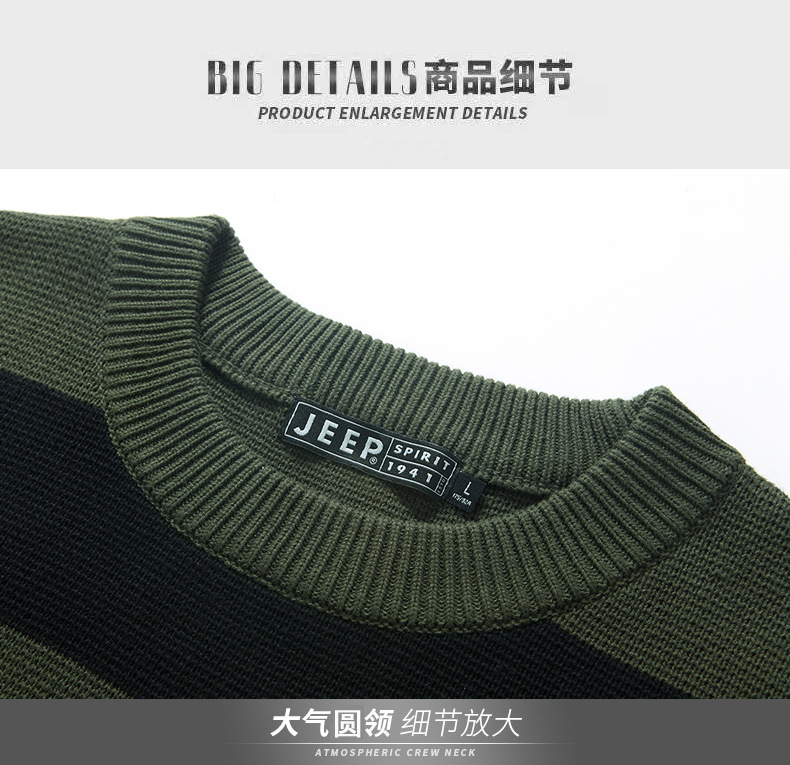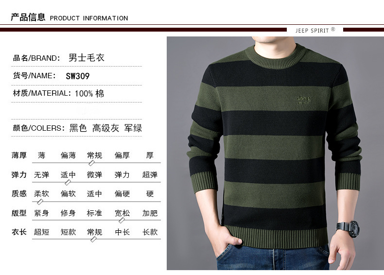 JEEPSPIRIT 라운드 넥 스트라이프 스웨터 가을과 겨울 남자 풀오버 면화 바닥 스웨터 309