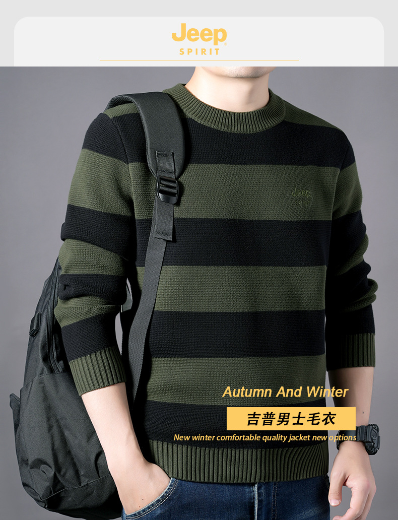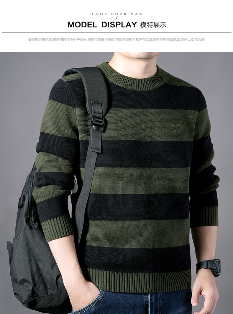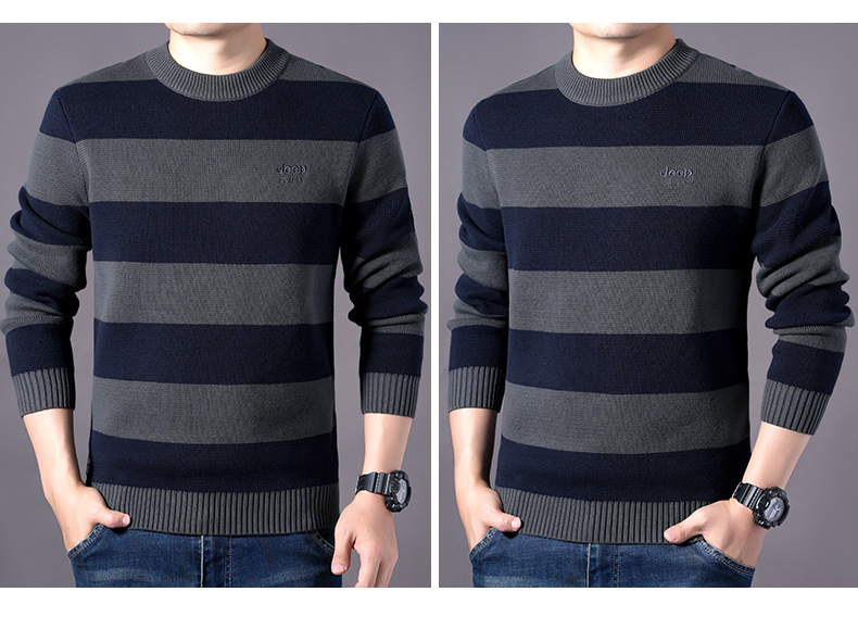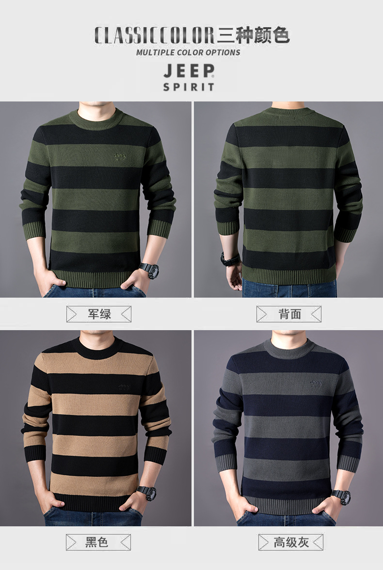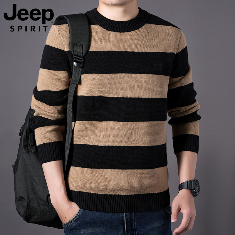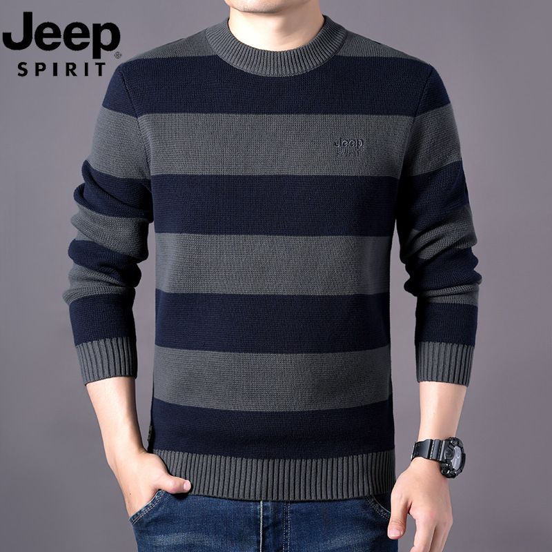 JEEPSPIRIT 라운드 넥 스트라이프 스웨터 가을과 겨울 남자 풀오버 면화 바닥 스웨터 309스토어 가기