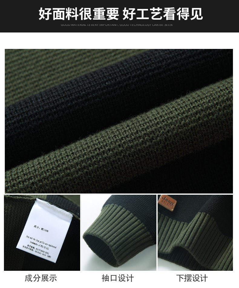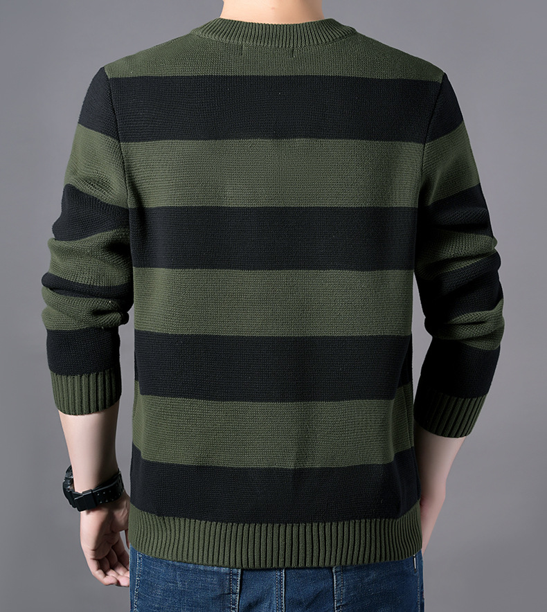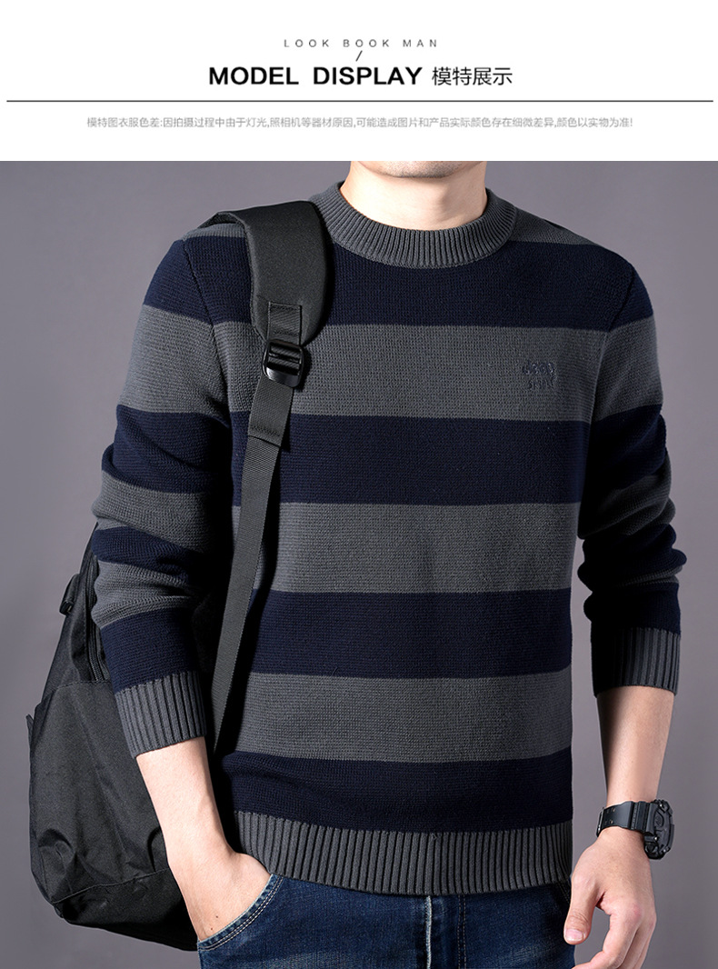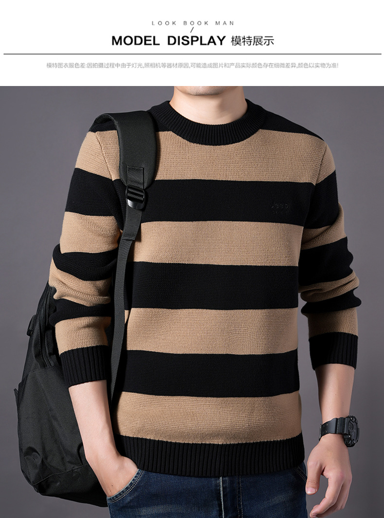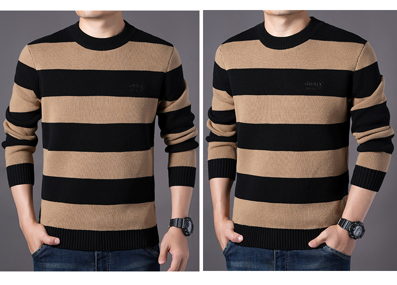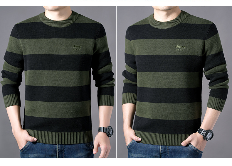JEEPSPIRIT 라운드 넥 스트라이프 스웨터 가을과 겨울 남자 풀오버 면화 바닥 스웨터 309스토어 가기