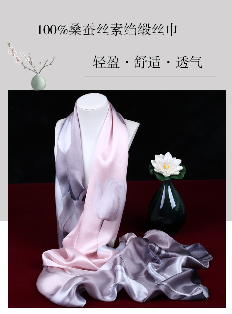 100 뽕나무 실크 인쇄 스카프 새틴 손 롤 가장자리 스카프 공장 도매 항저우 실크 빠른 배달스토어 가기