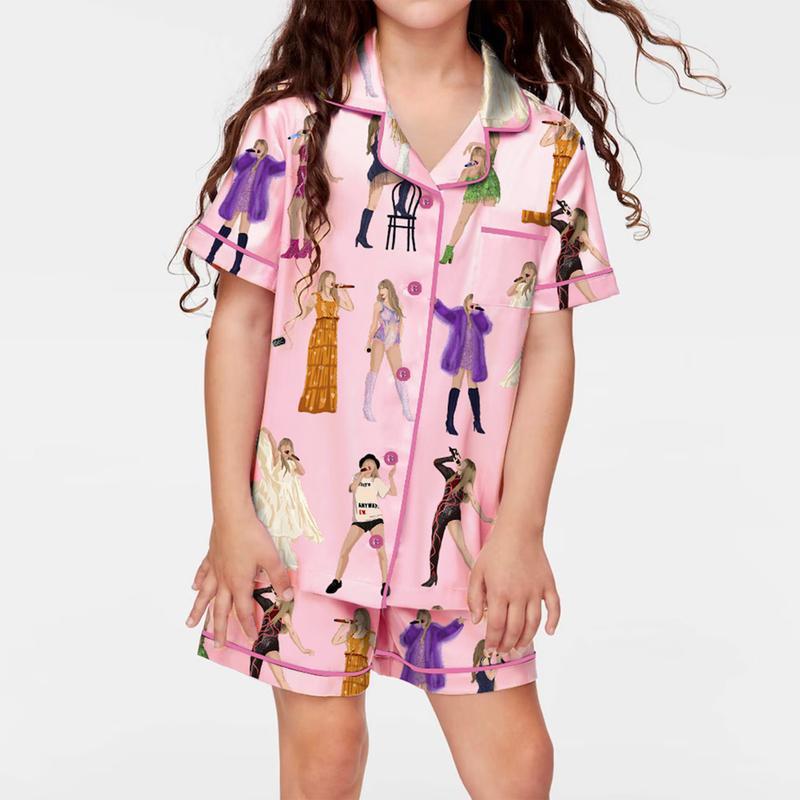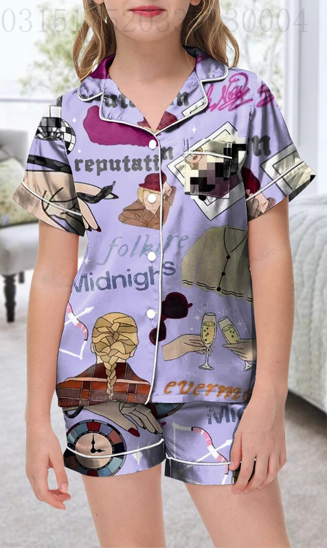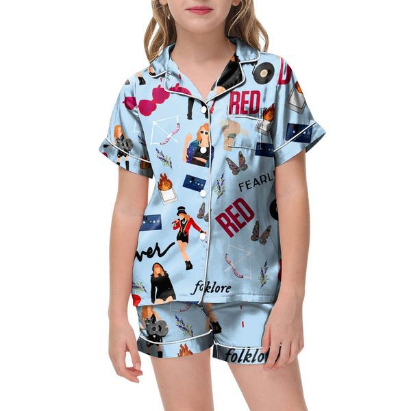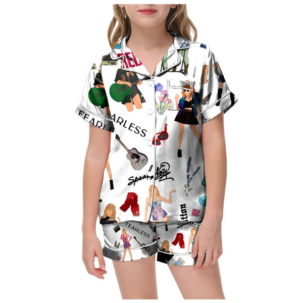 어린이 소녀 테일러 스위프트 테일러 곰팡이 파자마 짧은 소매 버튼 상단 반바지 홈 잠옷 세트스토어 가기