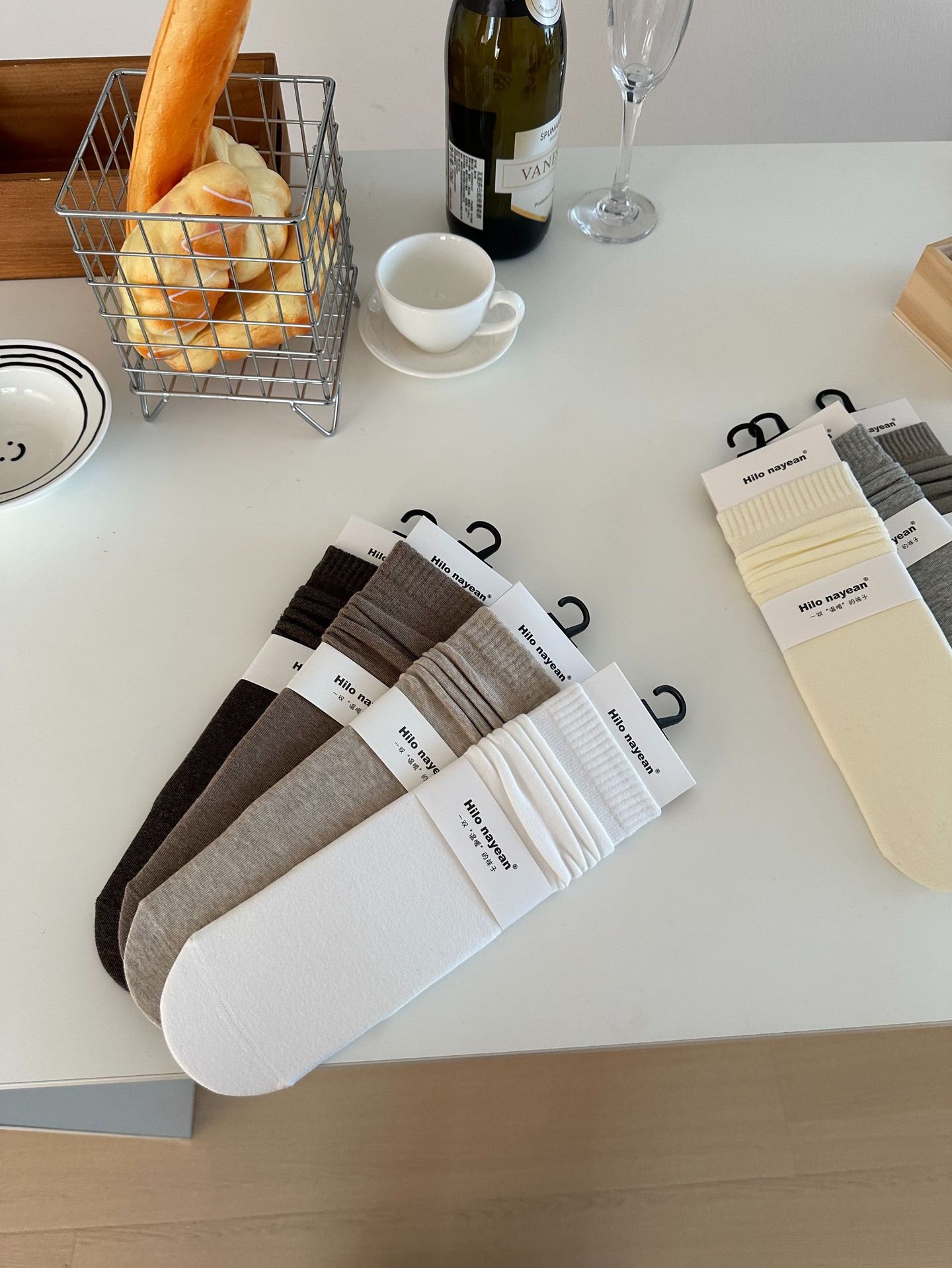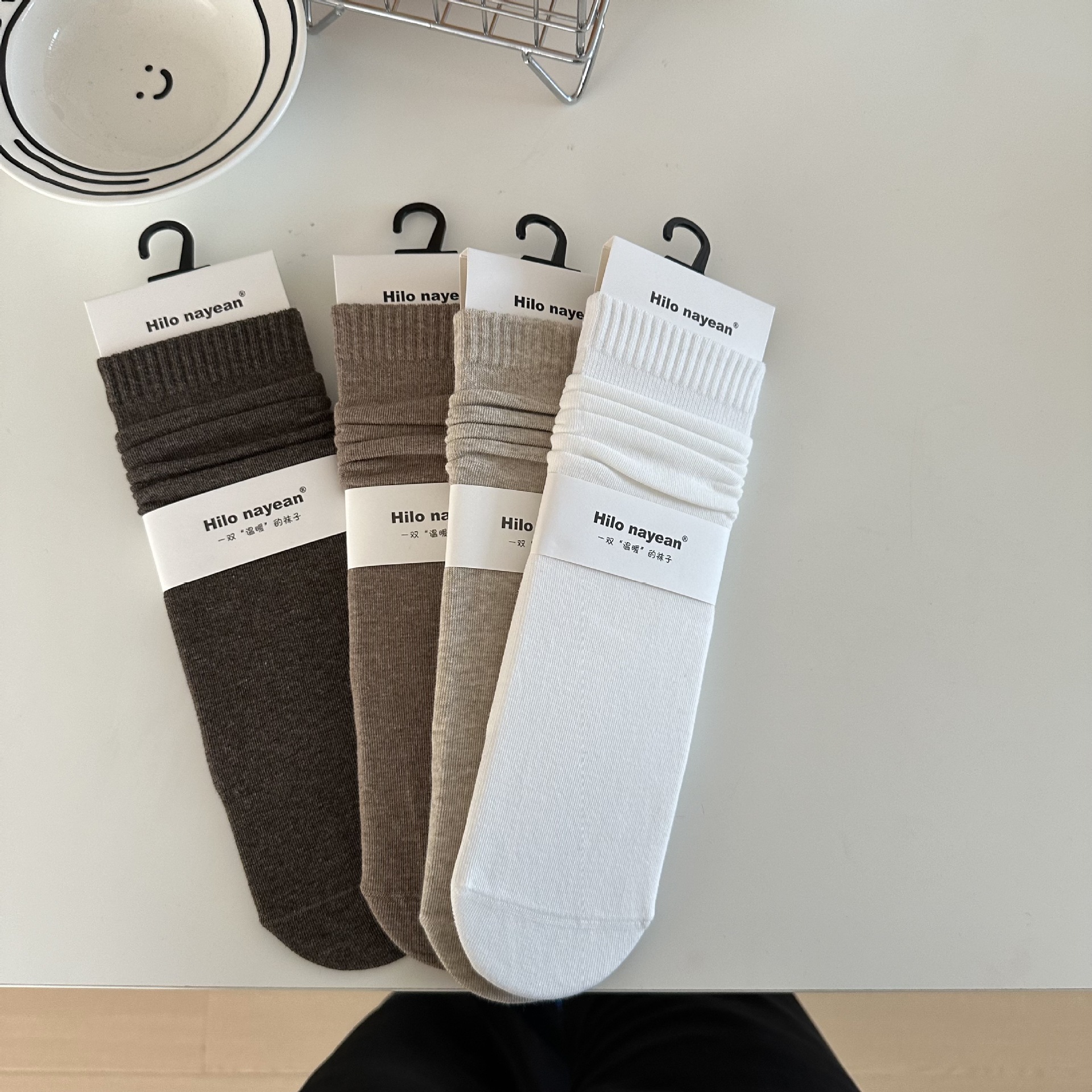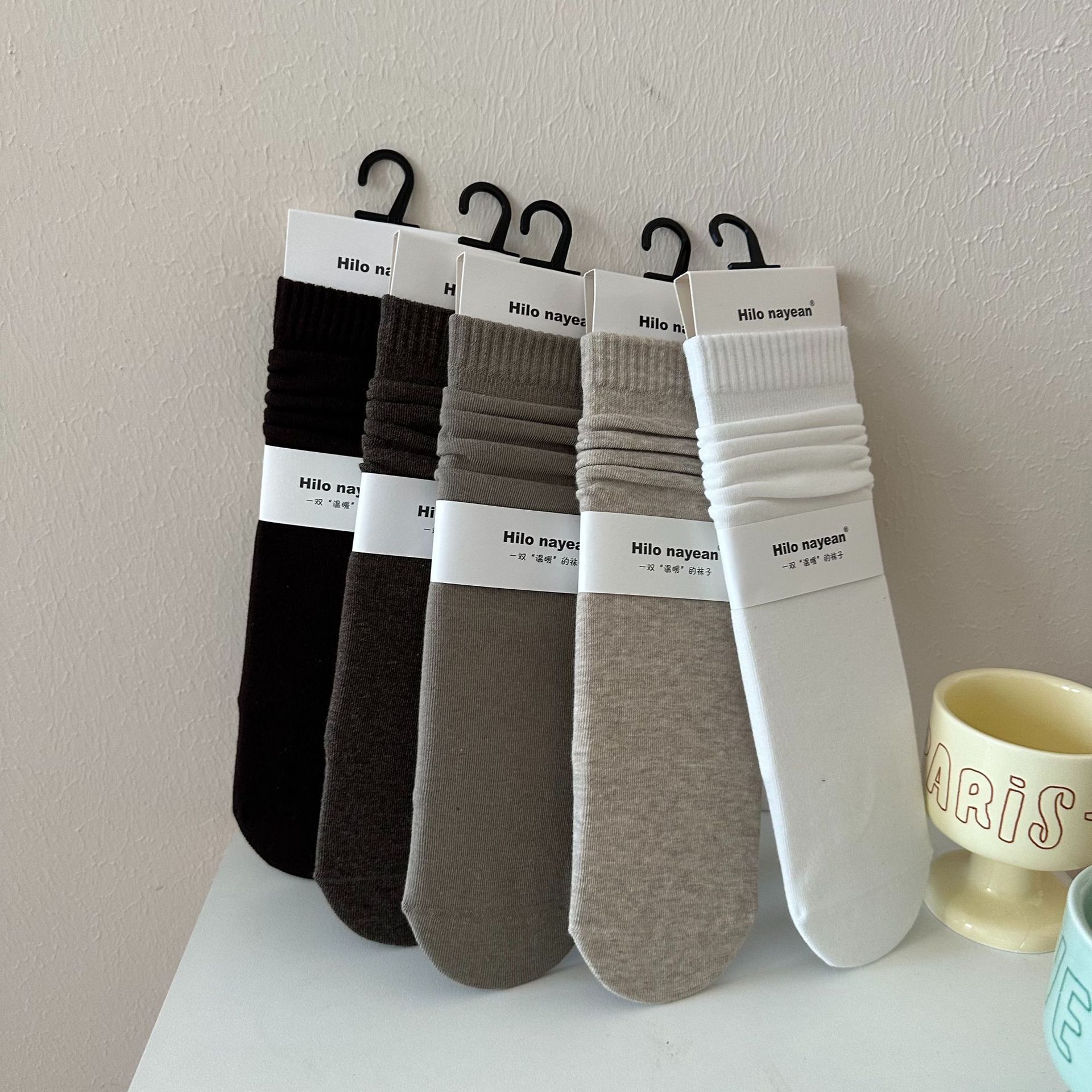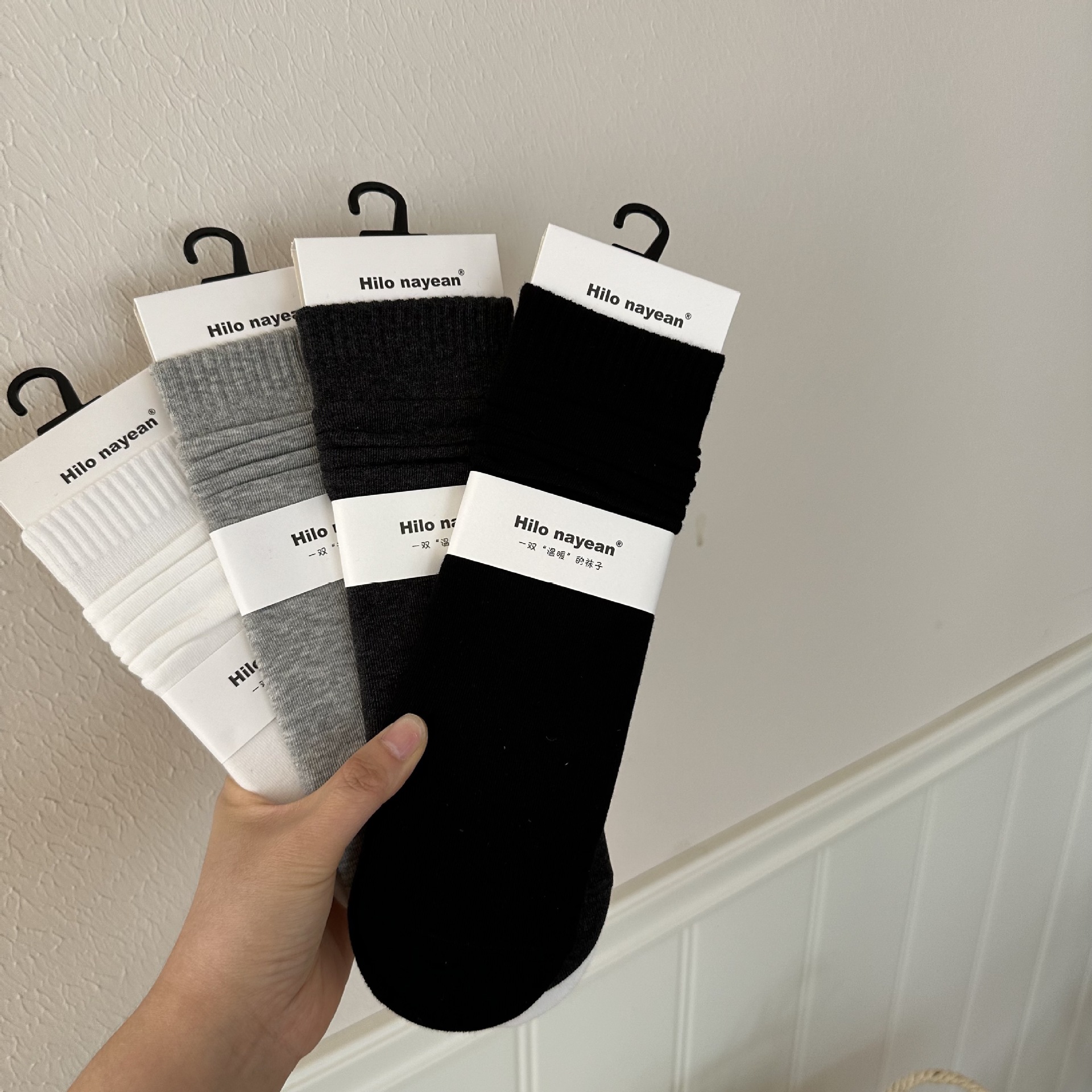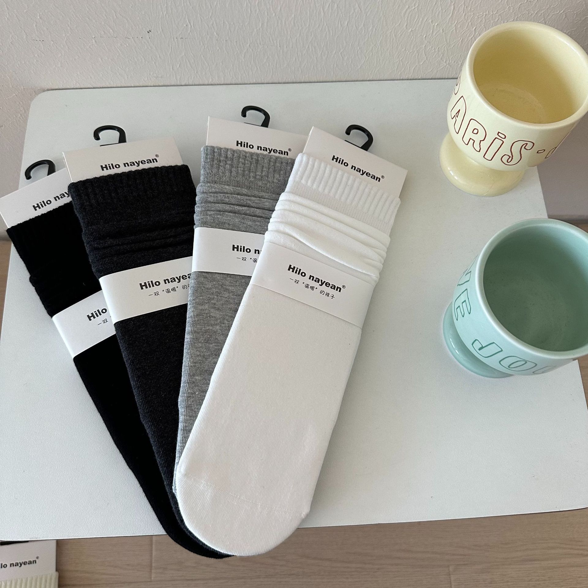 2024 양말 여성의 가을과 겨울 새로운 미드 튜브 여성 양말 마이크로 스포츠 미드 튜브 뼈없는 고무 밴드 더미 양말 여성 도매스토어 가기
