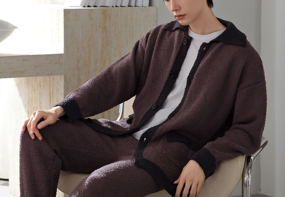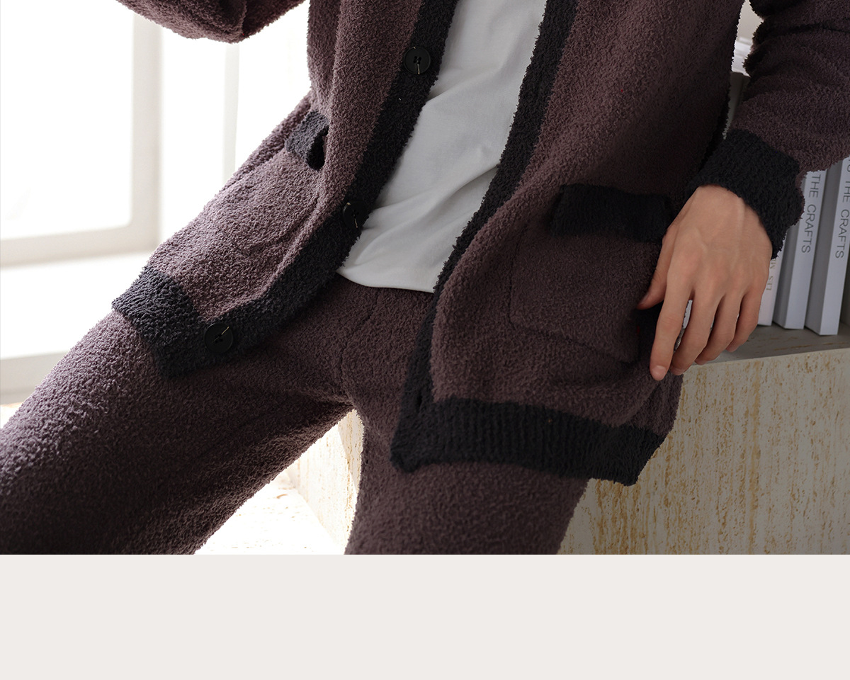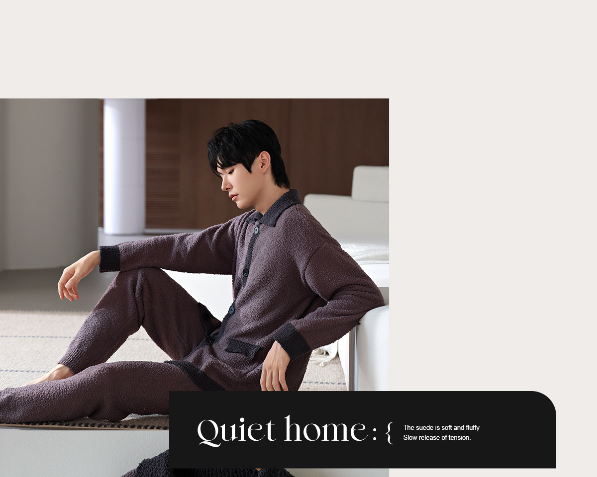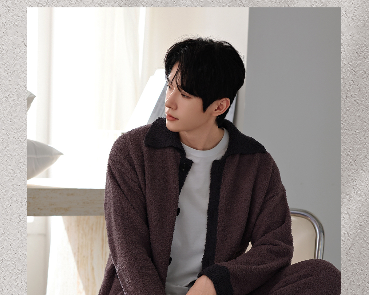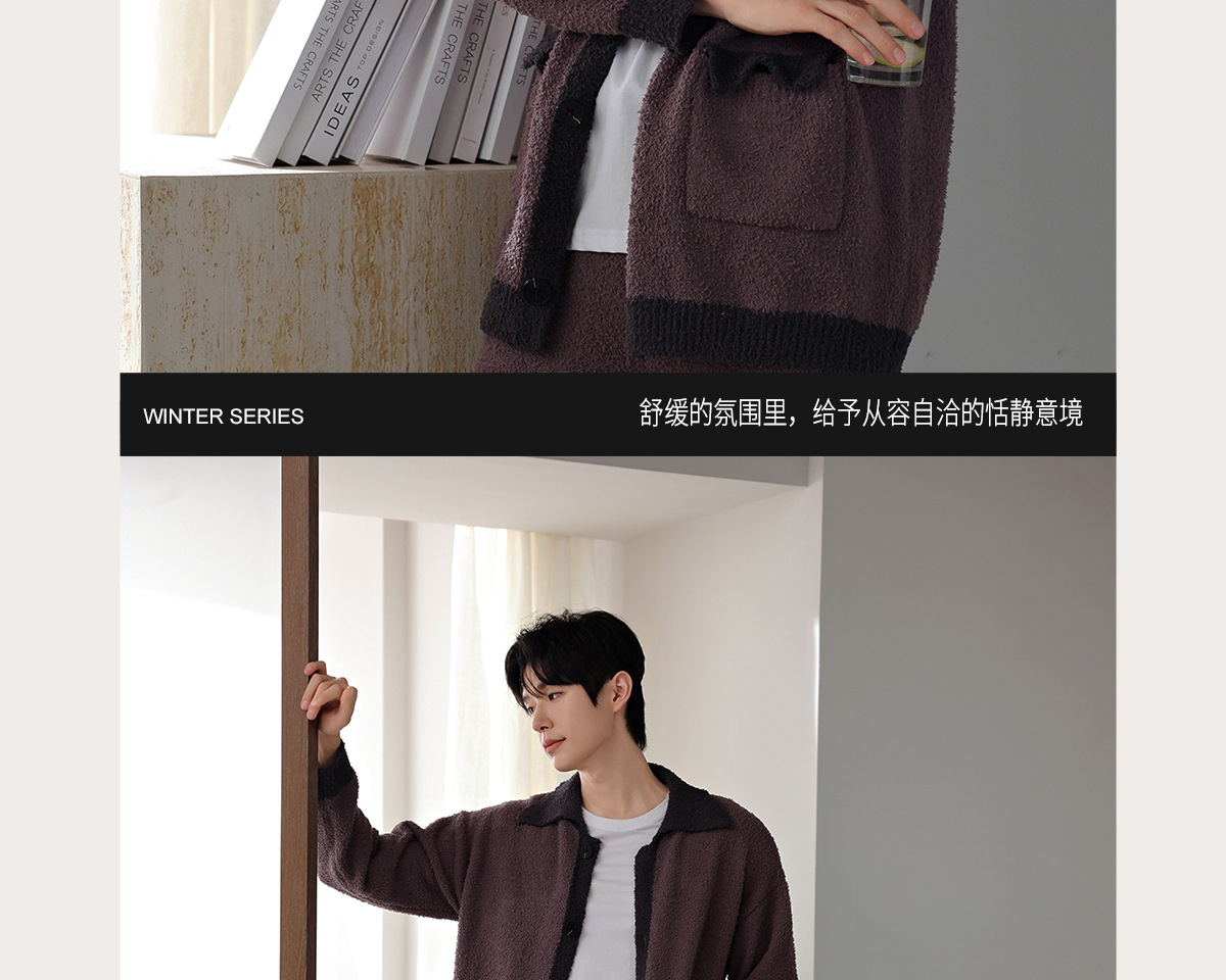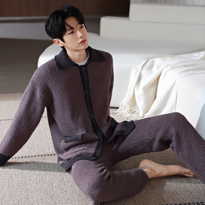 【부드러운 반양털】가을 겨울 남성용 잠옷 두꺼운 보온 패션 카라 오픈형 가정복 대형 사이즈스토어 가기