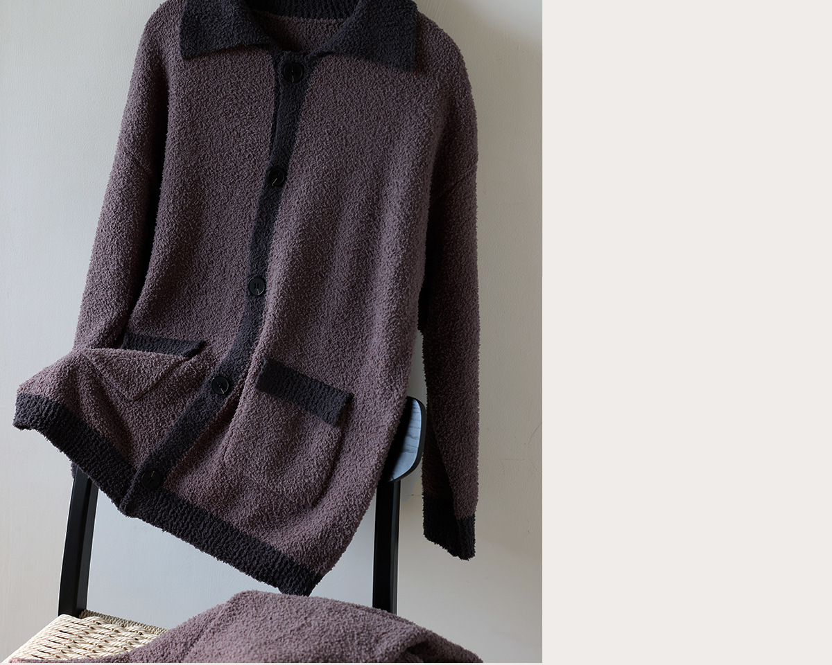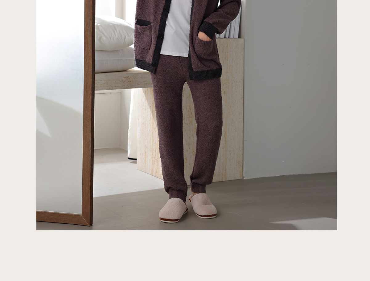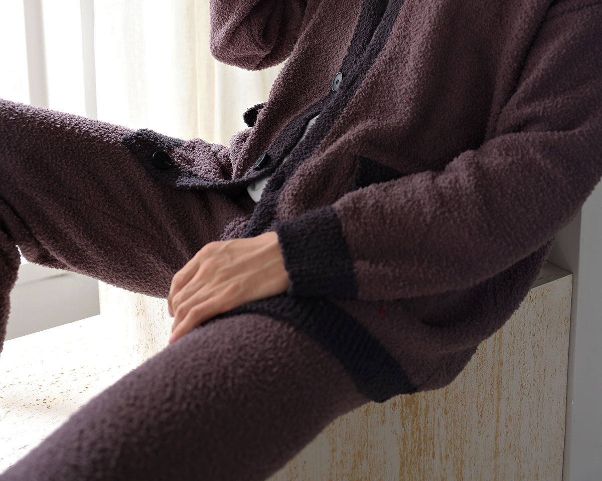 【부드러운 반양털】가을 겨울 남성용 잠옷 두꺼운 보온 패션 카라 오픈형 가정복 대형 사이즈
