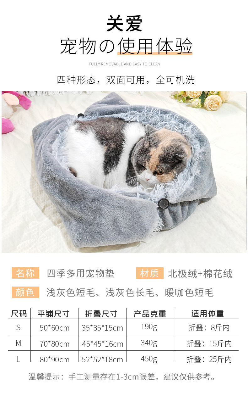 애완 동물 담요 작은 애완 동물 봉제 사육장 두꺼운 애완 동물 패드 이중 목적 접는 개집 세척 가능한 올 시즌 유니버설 고양이 둥지