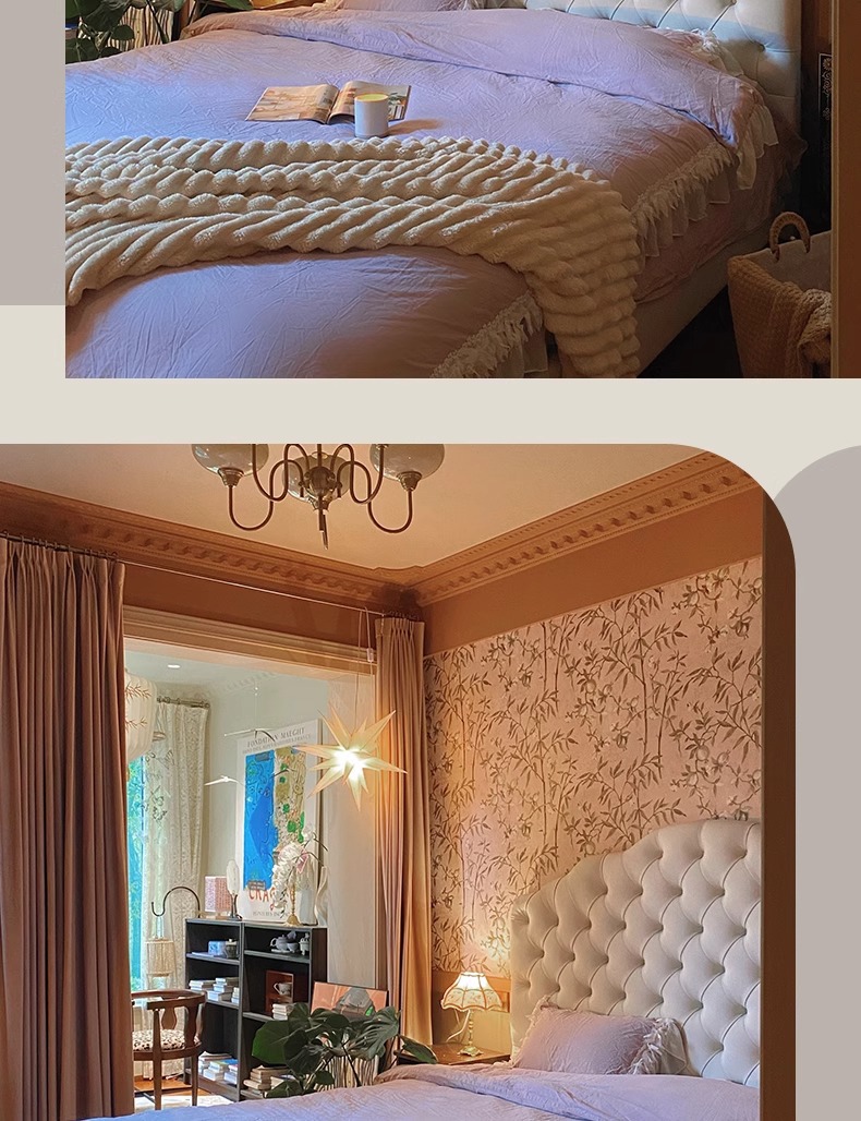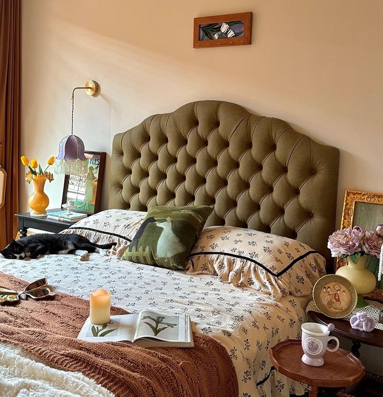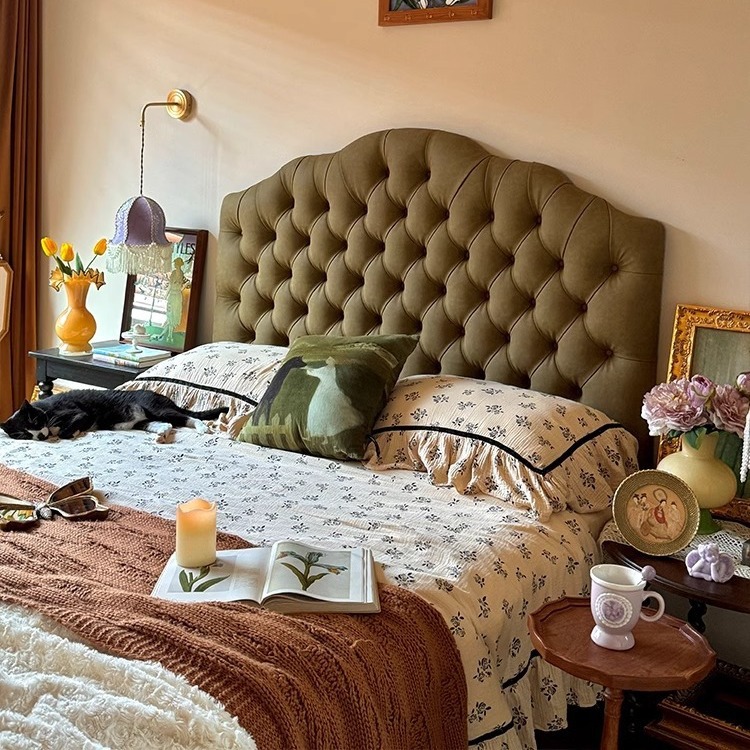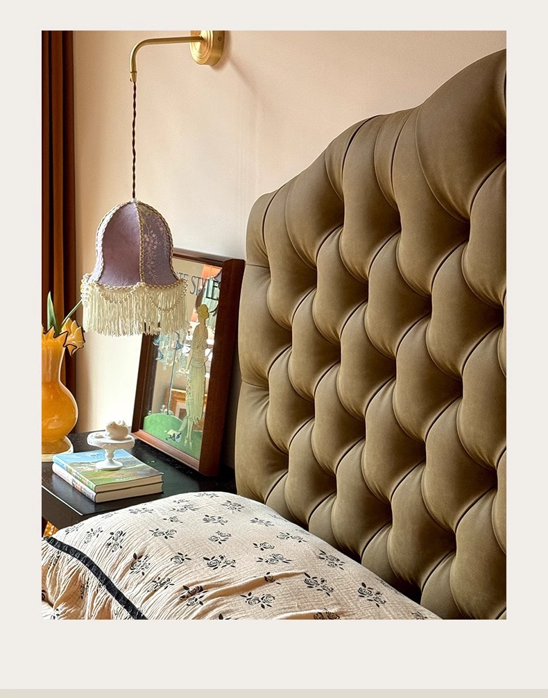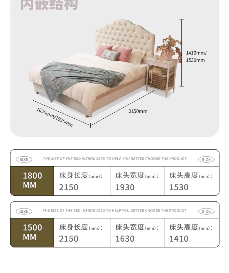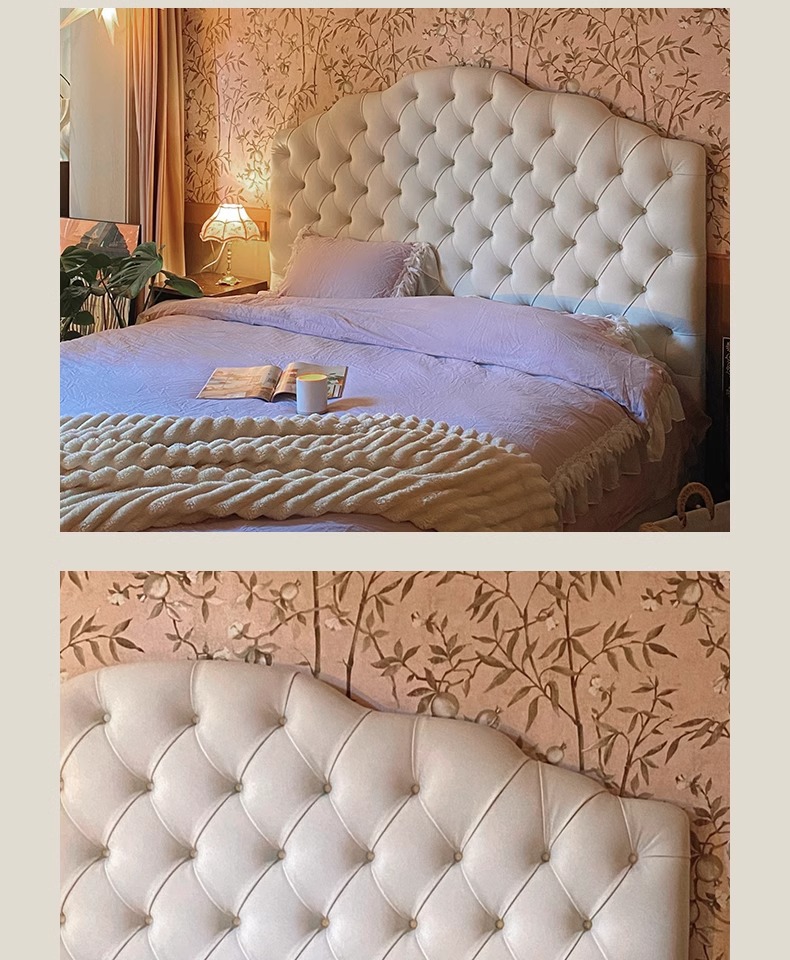목욕 프렌치 크림 스타일 화이트 라이트 럭셔리 가죽 침대 이탈리아 스타일 미니멀리스트 더블 마스터 침실 풀 가죽 침대 골동품 스타일 솔리드 우드 침대스토어 가기