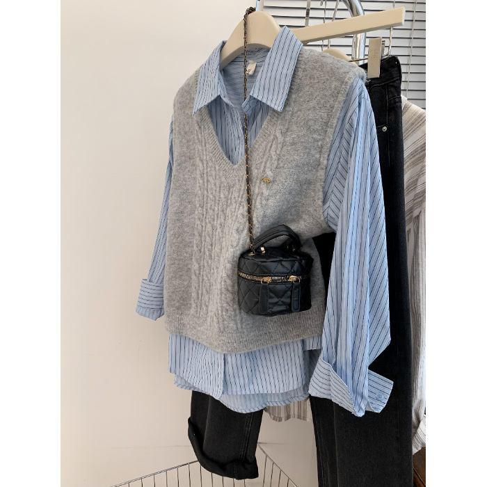 [캐시미어] 가을 새 트위스터 니트 조끼 V-Neck 민소매 스웨터 풀오버 스택 패션 심플 여성