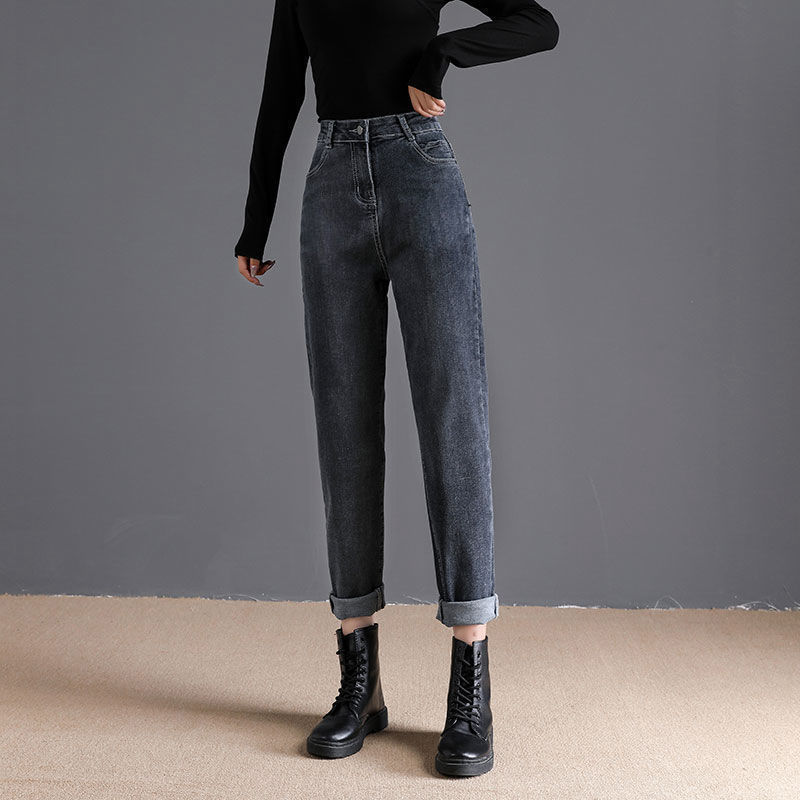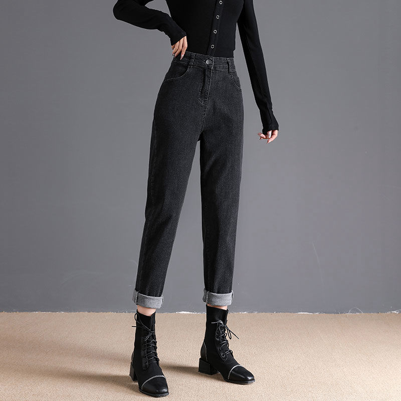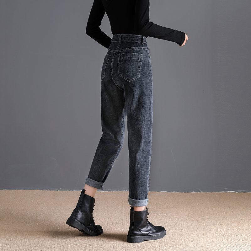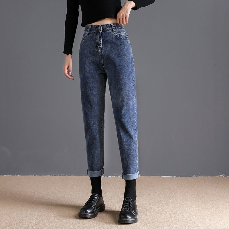 스트레치 청바지 여성의 똑바로 느슨한 가을 2024 새로운 높은 허리 슬림 룩 높은 9 점 토레 당근 바지스토어 가기