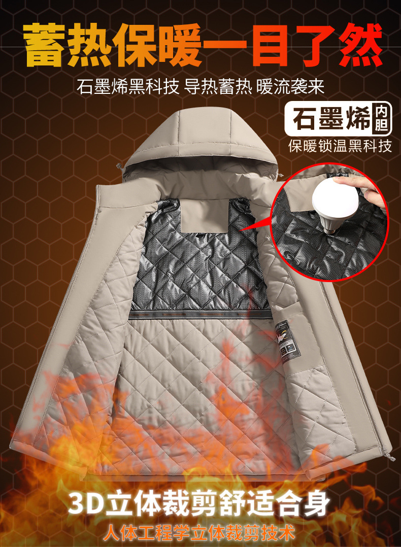 2024 그래 핀 충전 코튼 의류 남녀 면 패딩 재킷 분리식 캡 겨울 야외 방수 면 패딩 재킷
