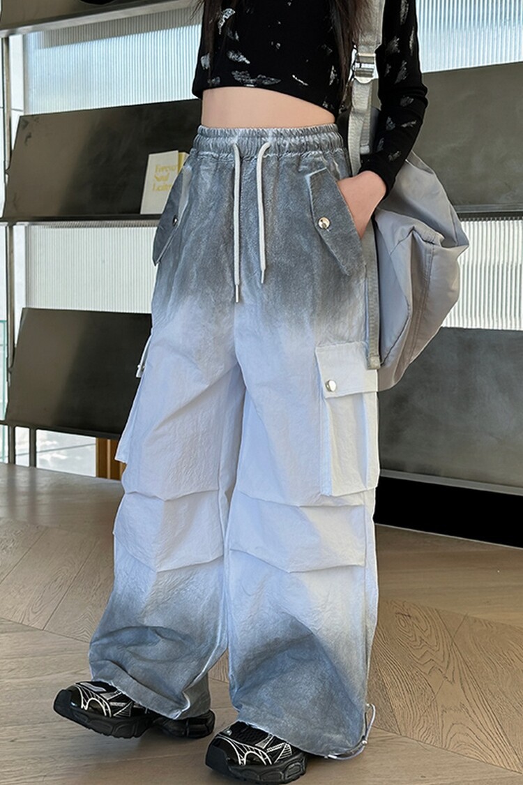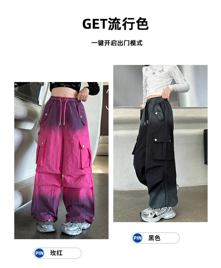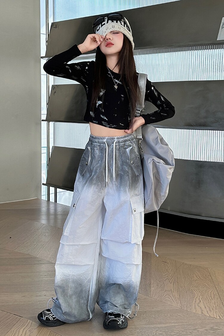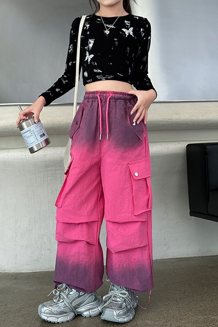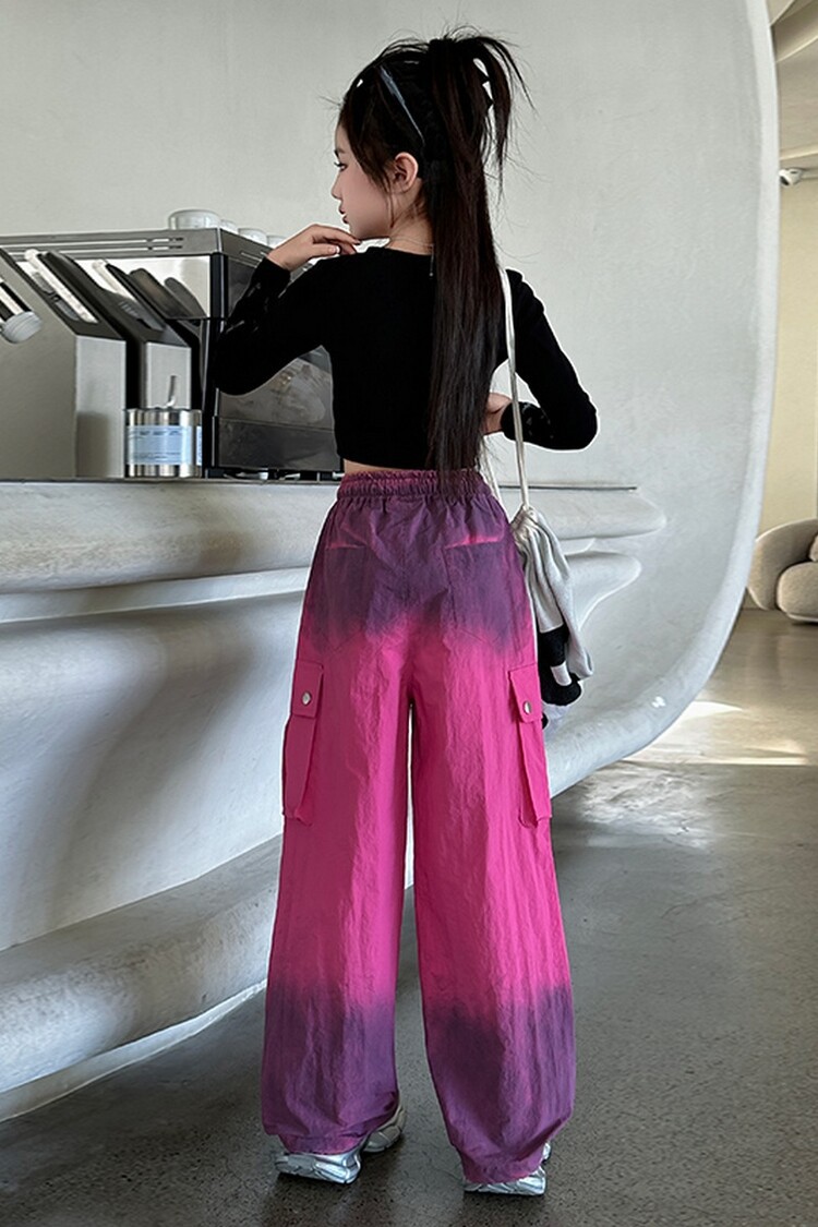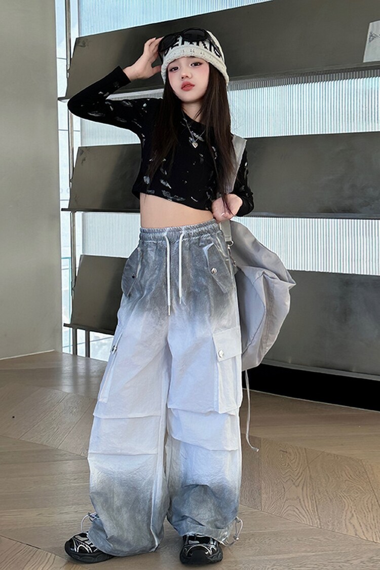 국경 간 소녀 코일 바지 세트 트렌디 쿨 어린이 긴팔 나비 티셔츠 빛나는 와이드 레그 바지 2 피스 봄과 가을 세트