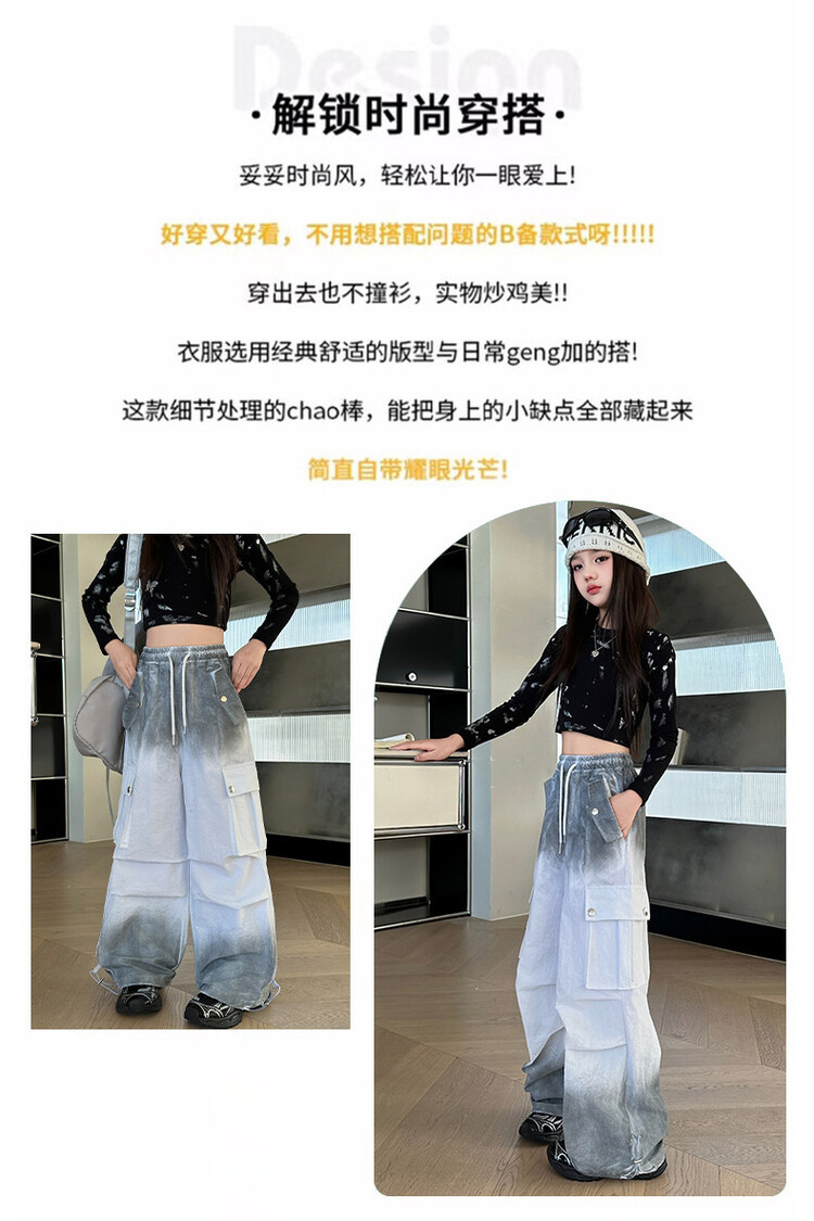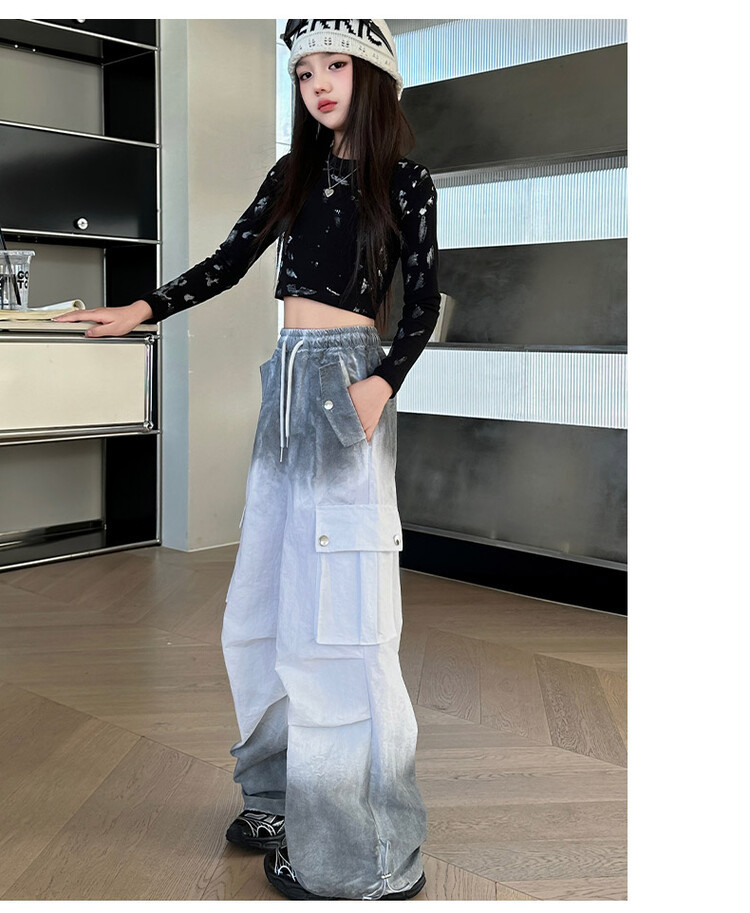 국경 간 소녀 코일 바지 세트 트렌디 쿨 어린이 긴팔 나비 티셔츠 빛나는 와이드 레그 바지 2 피스 봄과 가을 세트스토어 가기