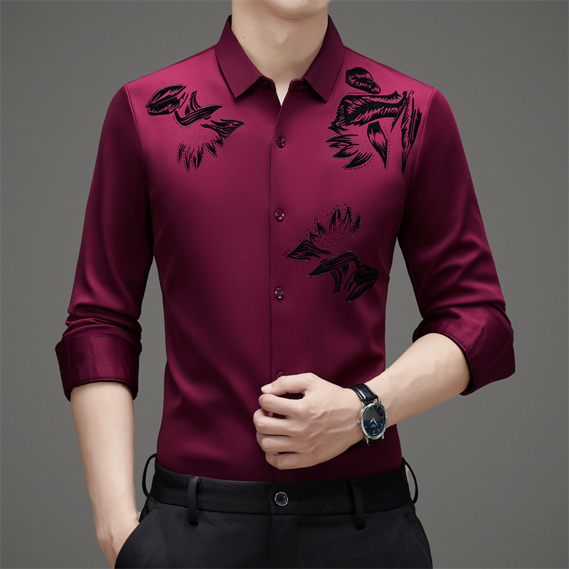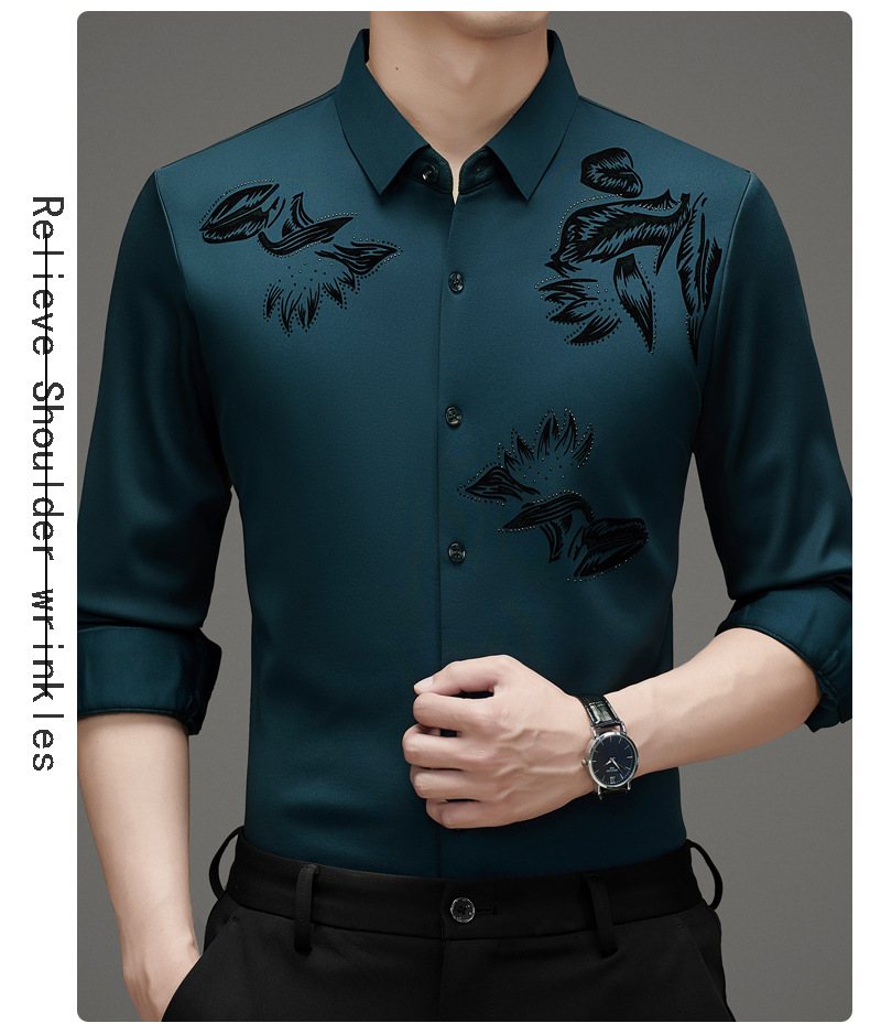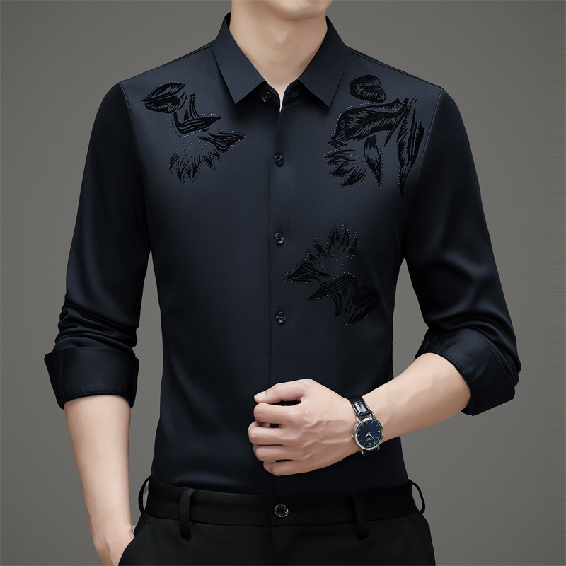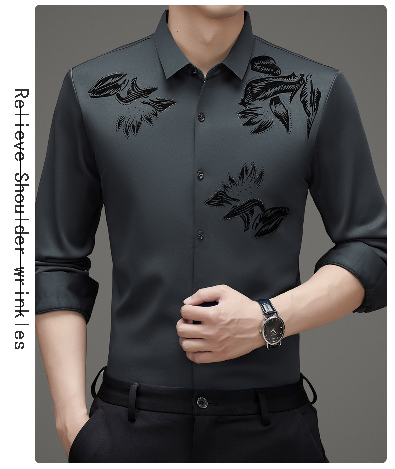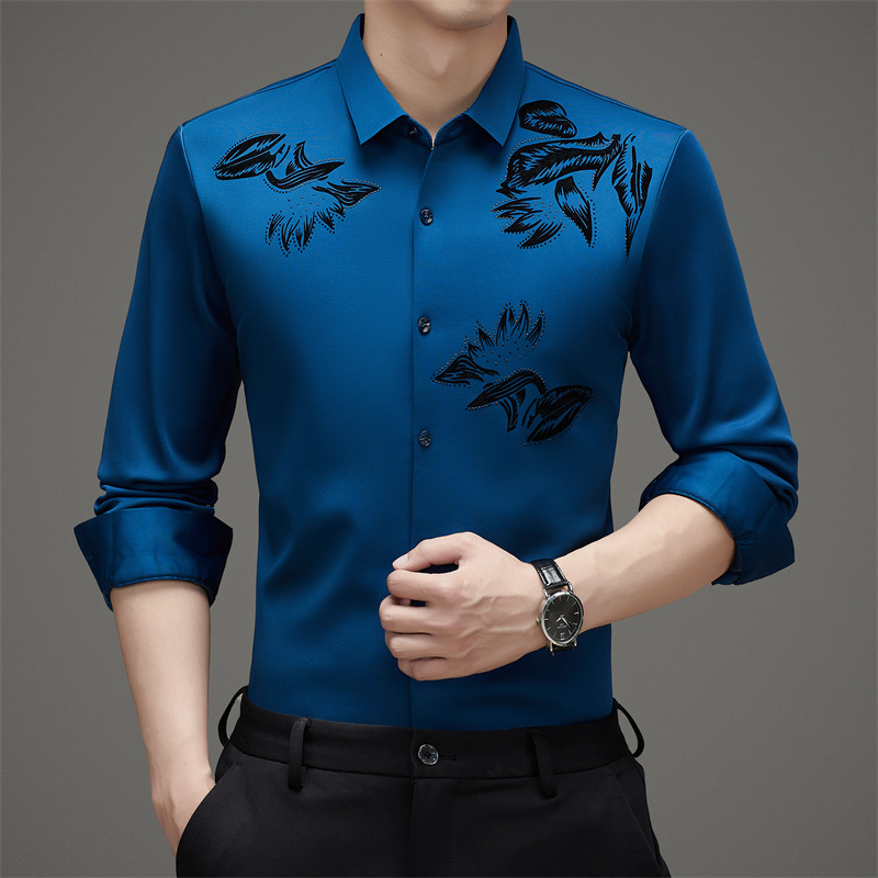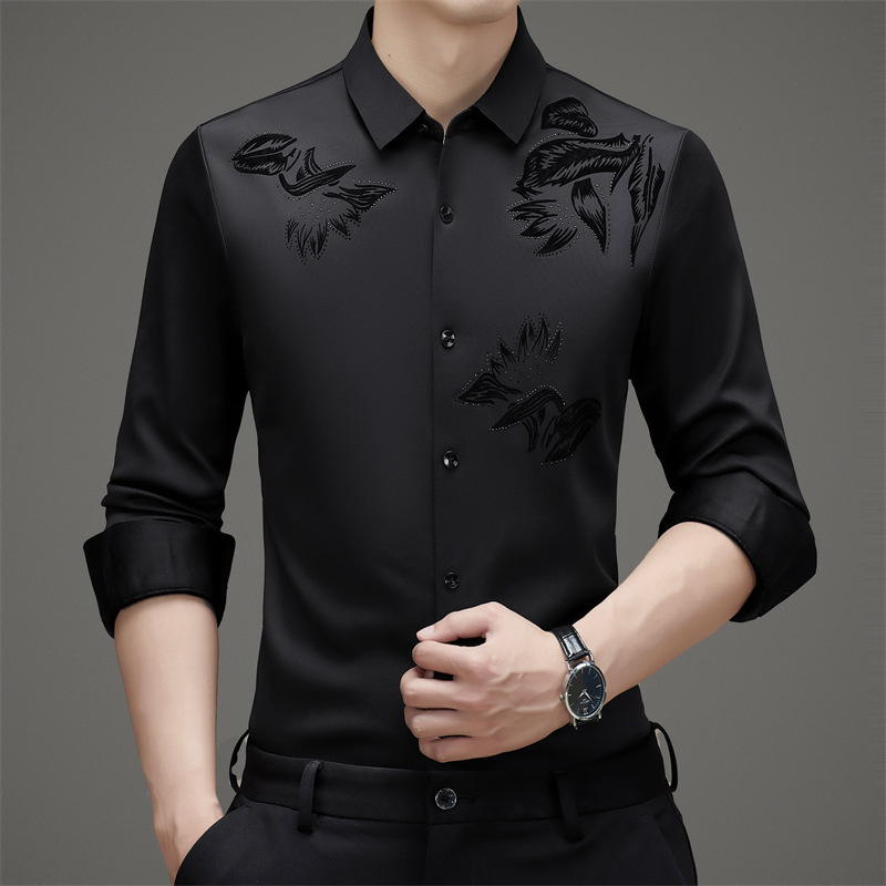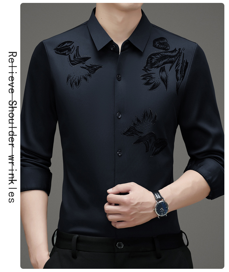국경 간 긴팔 셔츠 남성용 원활한 비 다림질 인치 셔츠 가을 새로운 비즈니스 캐주얼 중년 남성 긴팔 셔츠
