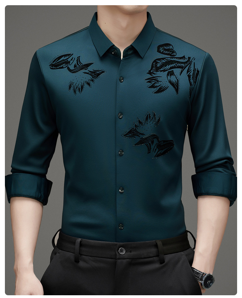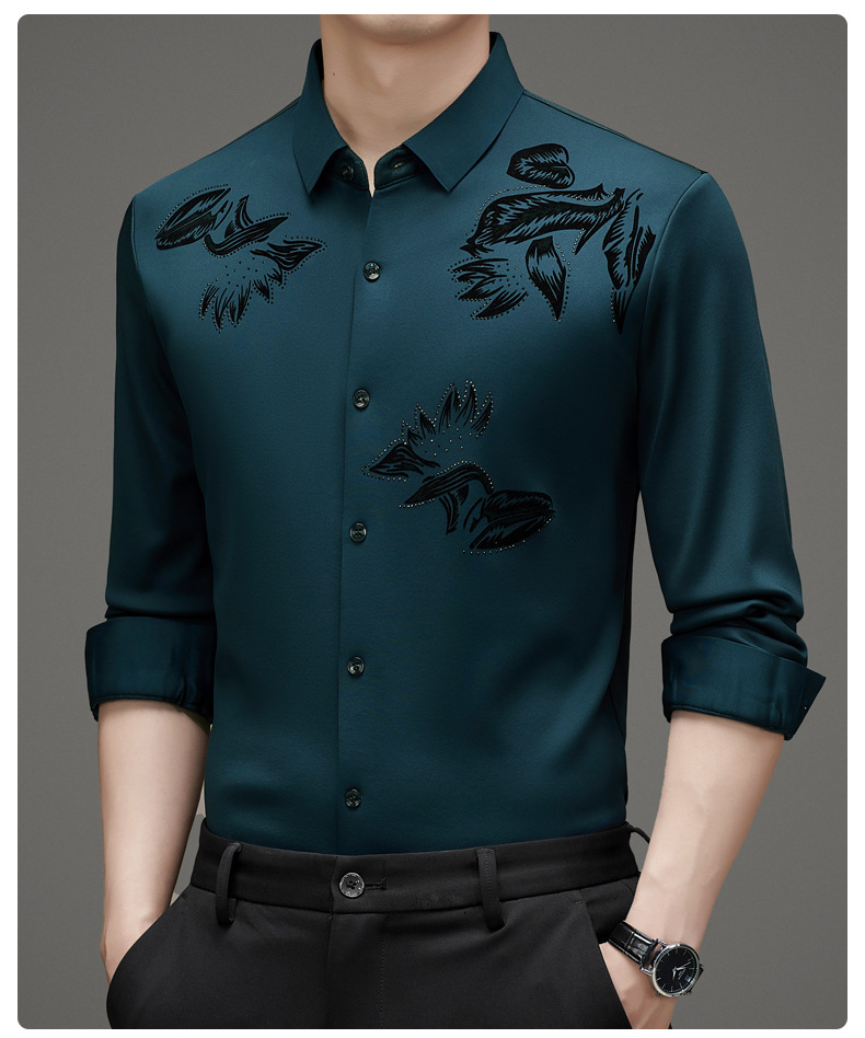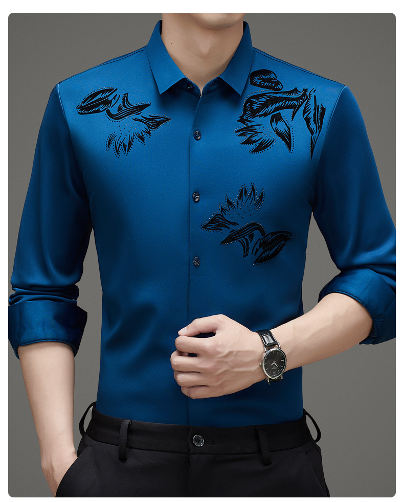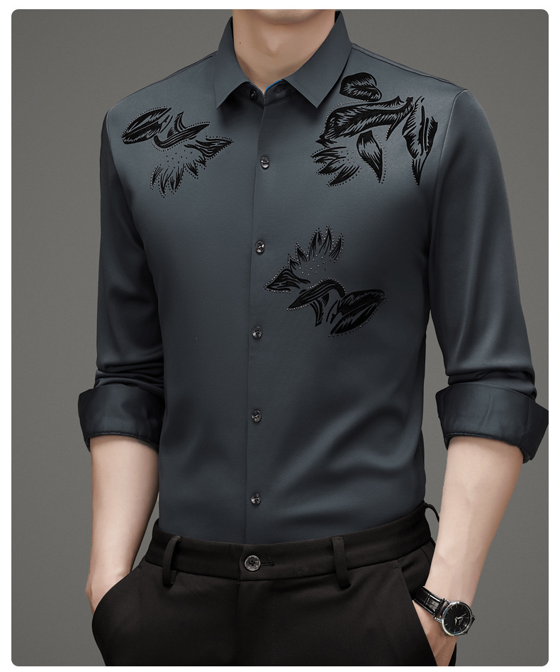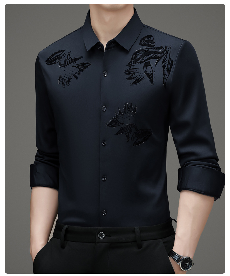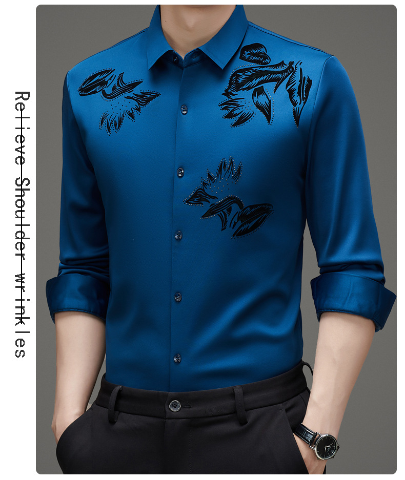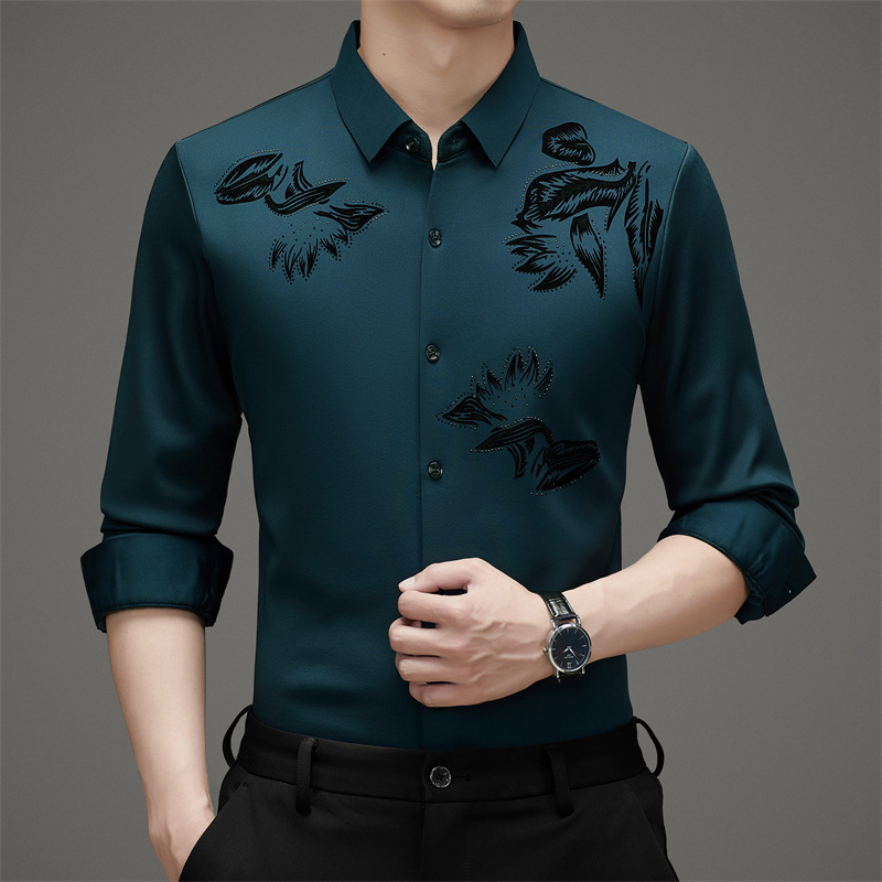 국경 간 긴팔 셔츠 남성용 원활한 비 다림질 인치 셔츠 가을 새로운 비즈니스 캐주얼 중년 남성 긴팔 셔츠