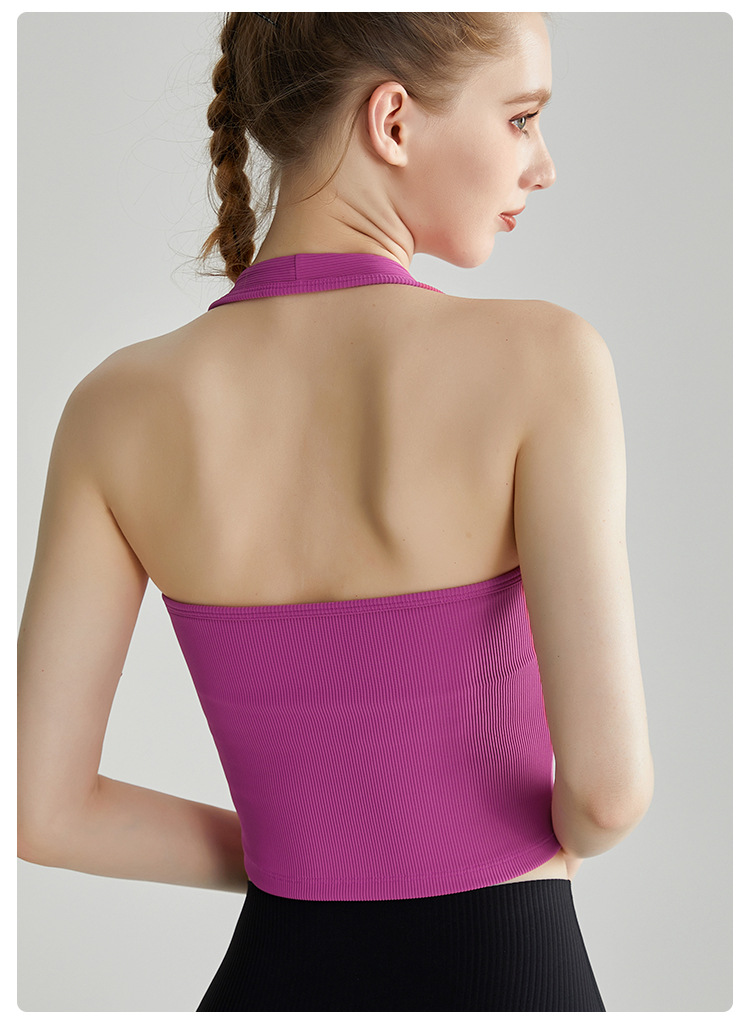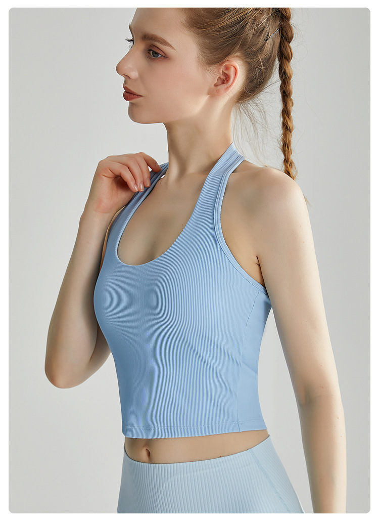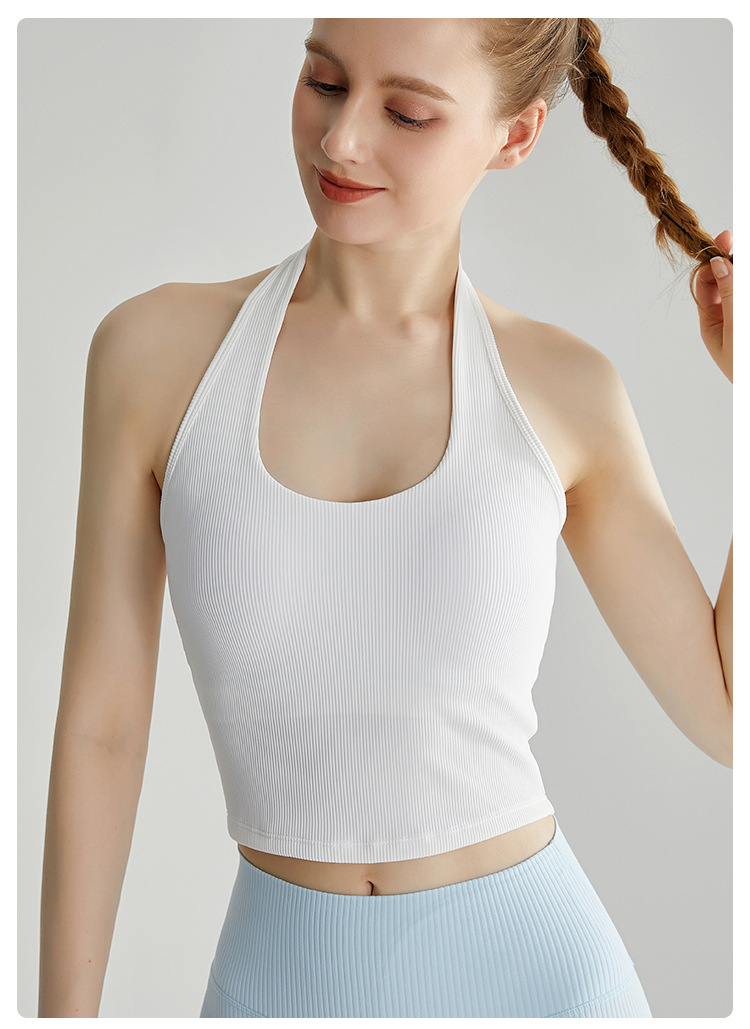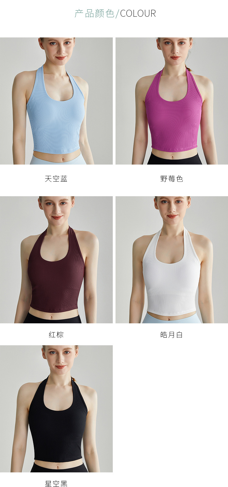 가슴 패드가 있는 여성용 LAHN 홀터넥 요가 조끼 탑, 긴 충격 방지 푸시업 겉옷, 속이 빈 아름다운 등받이 피트니스 조끼스토어 가기