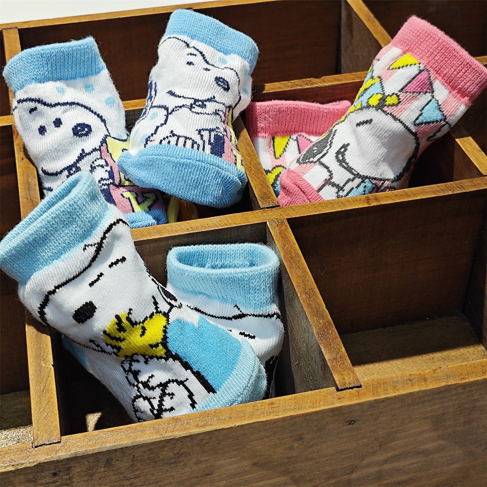 일본 새로운 귀여운 만화 신생아 양말 아기 양말 코튼 양말 스누피 크레용 작은 새 토끼