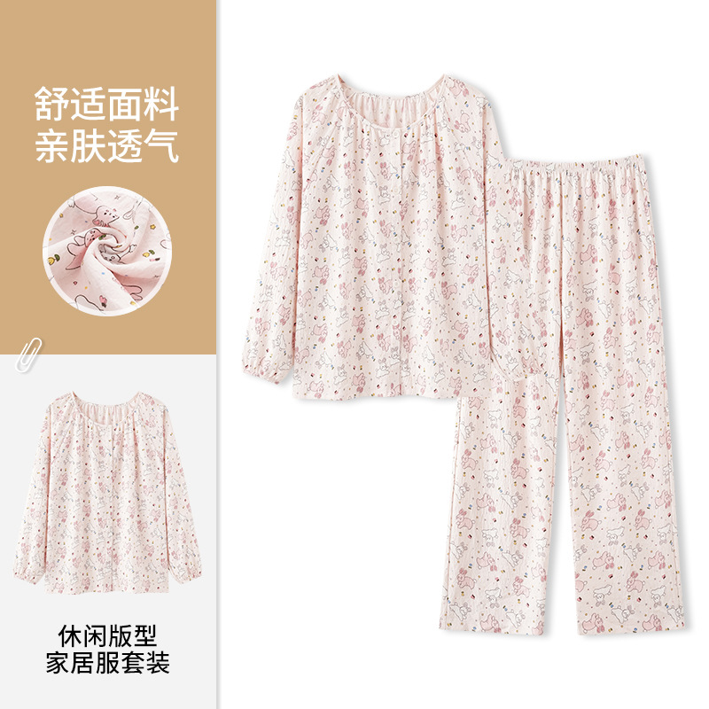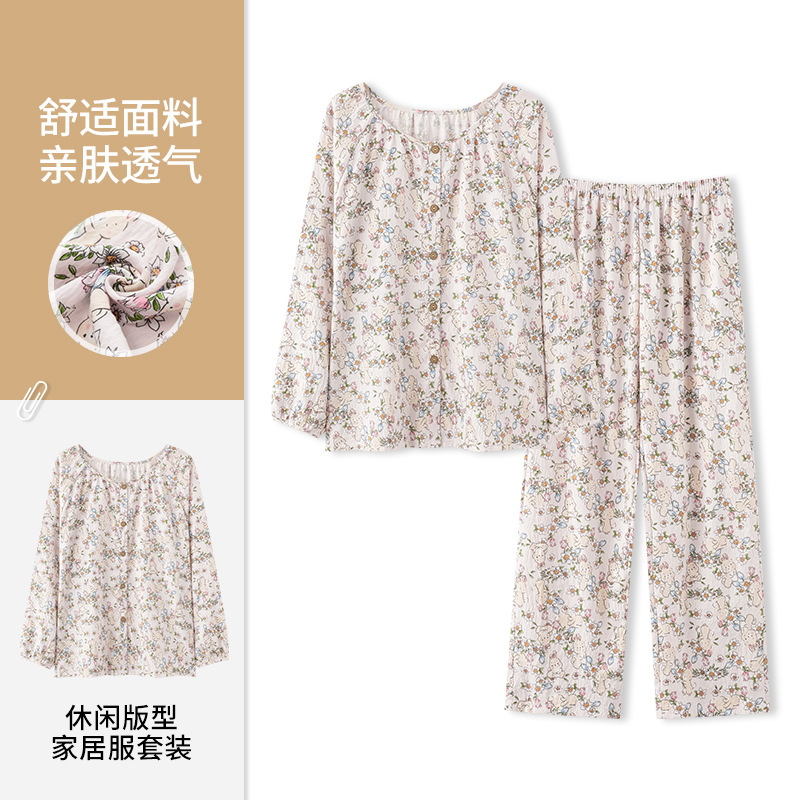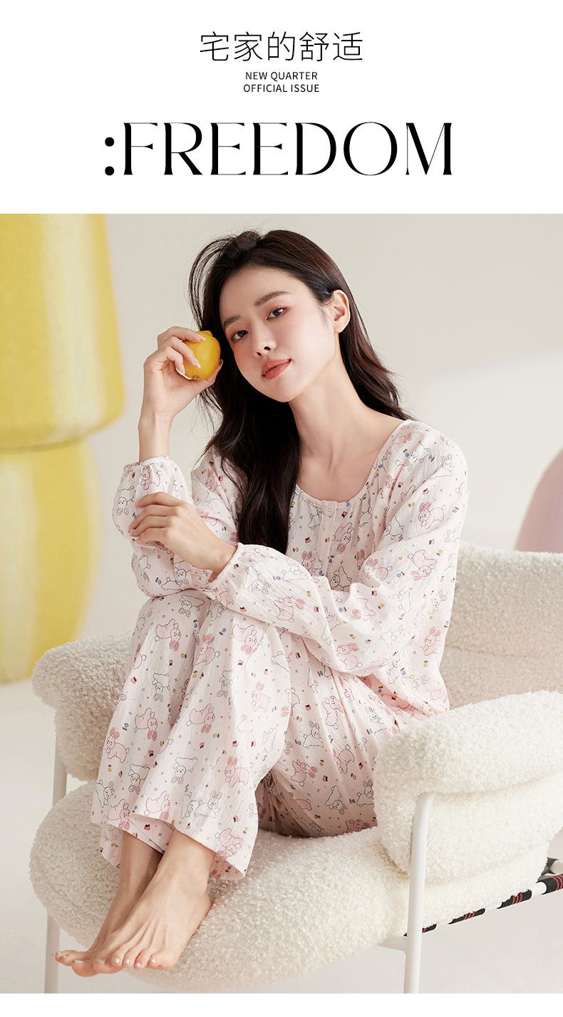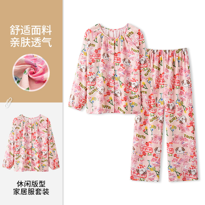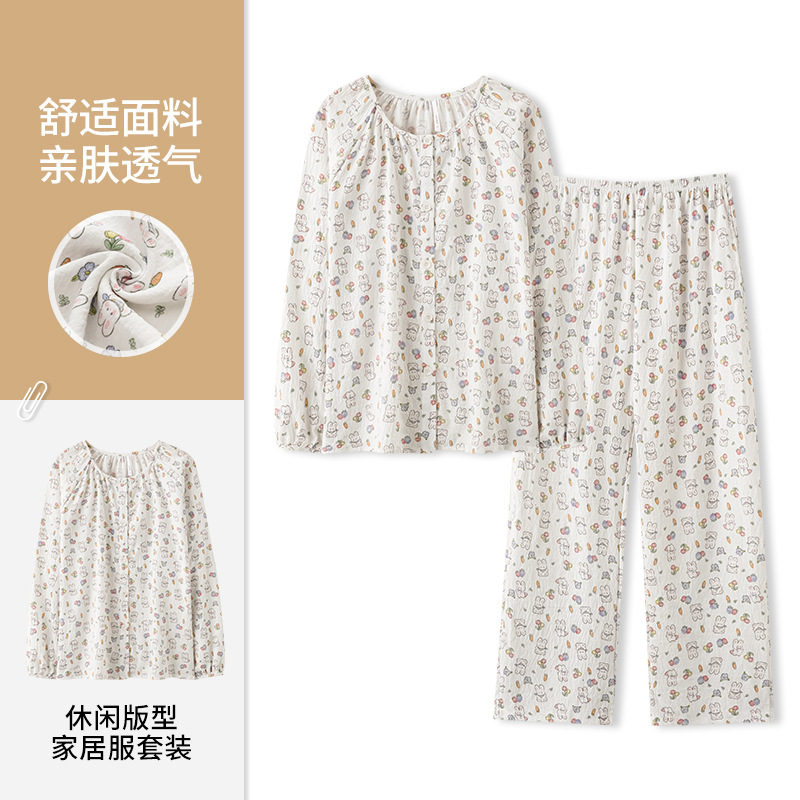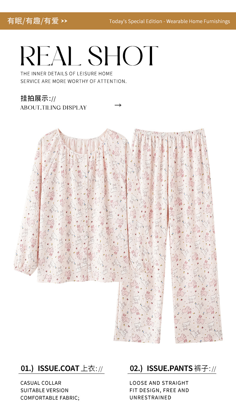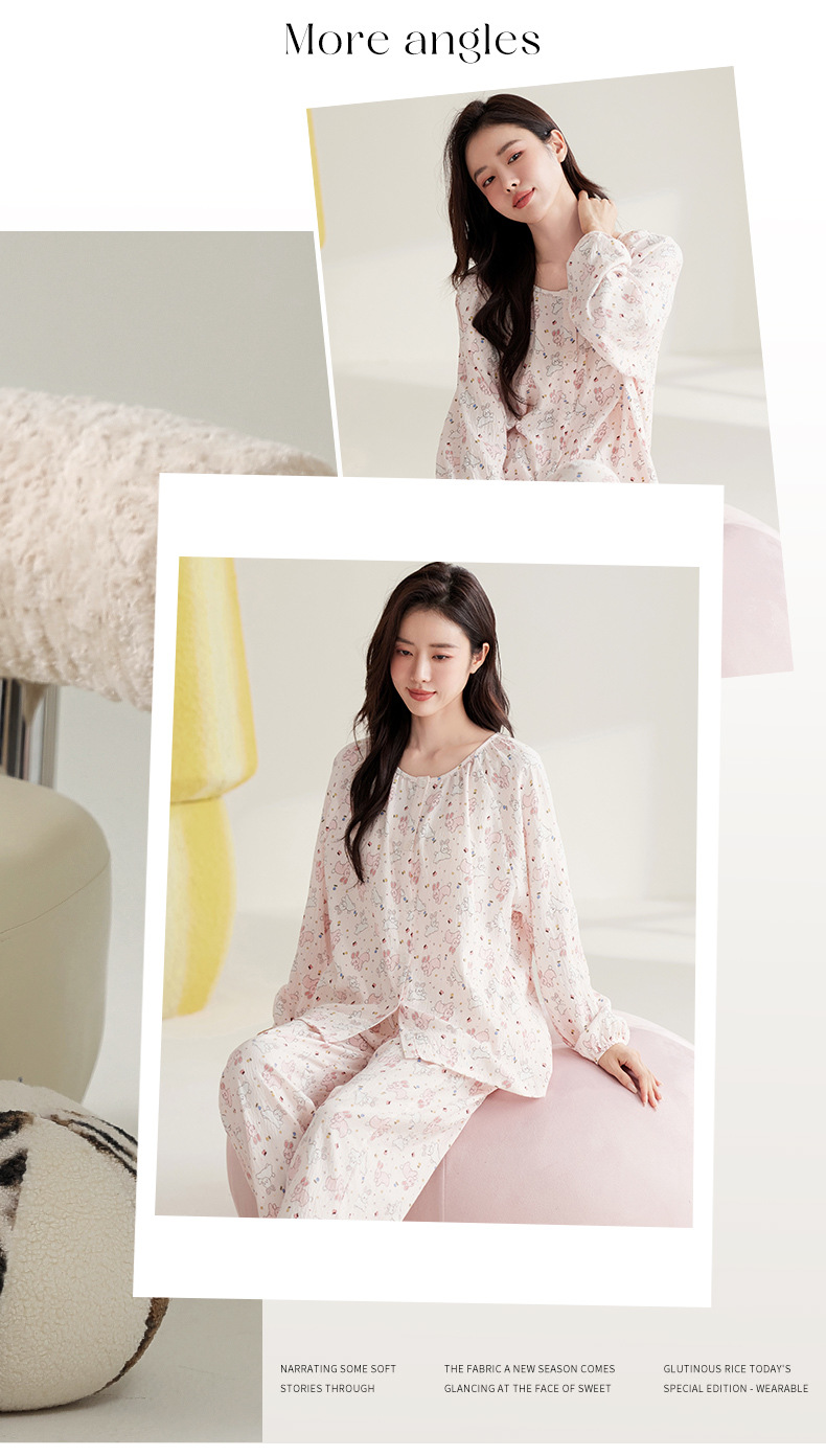 잠옷 여성의 봄과 가을 구름 센스 코튼 원사 긴 소매 느슨한 달콤한 만화 꽃 크루 넥 카디건 의상스토어 가기