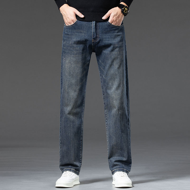 2024 년 봄과 가을 새로운 청바지 남성용 탄성 매일 캐주얼 스트리트 트렌디 바지 느슨한 스트레이트 바지