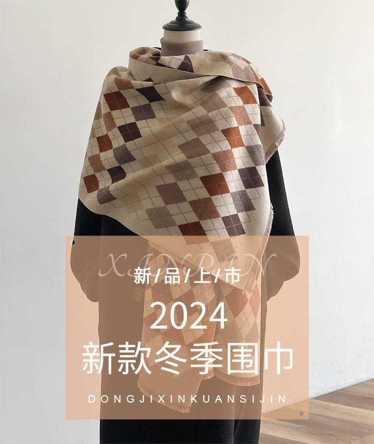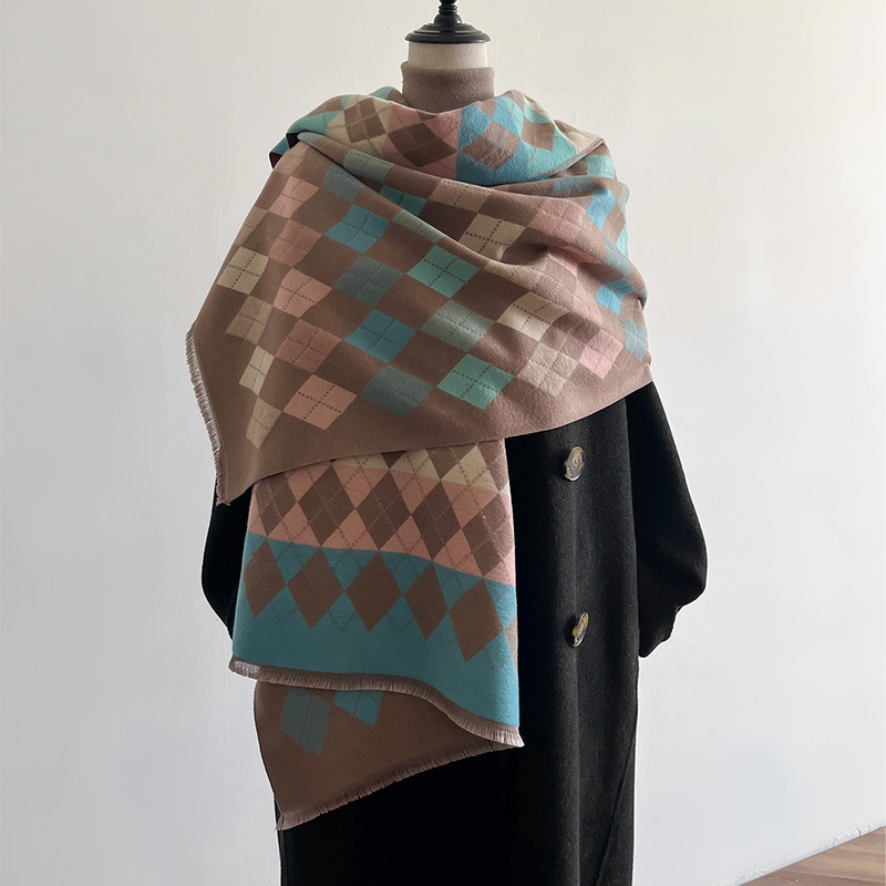 영어 버전 가을과 겨울 두꺼운 짧은 수염 술 기하학 다이아몬드 패션 올 매치 캐시미어 스카프 목도리 여성 스카프스토어 가기