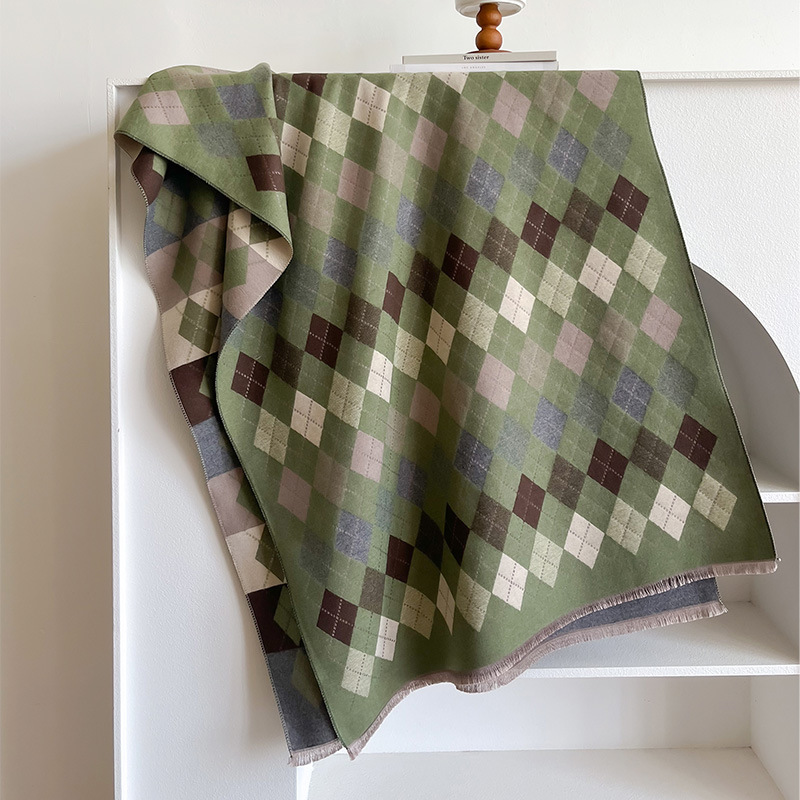 영어 버전 가을과 겨울 두꺼운 짧은 수염 술 기하학 다이아몬드 패션 올 매치 캐시미어 스카프 목도리 여성 스카프