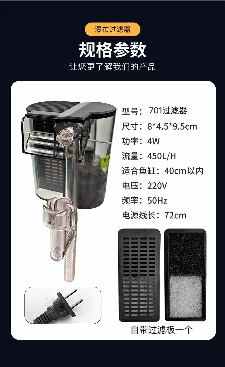 물고기 탱크 필터 정수 사이클 작은 외부 폭포 필터 물없는 물고기 탱크 벽에 장착 된 조용한 물 펌프