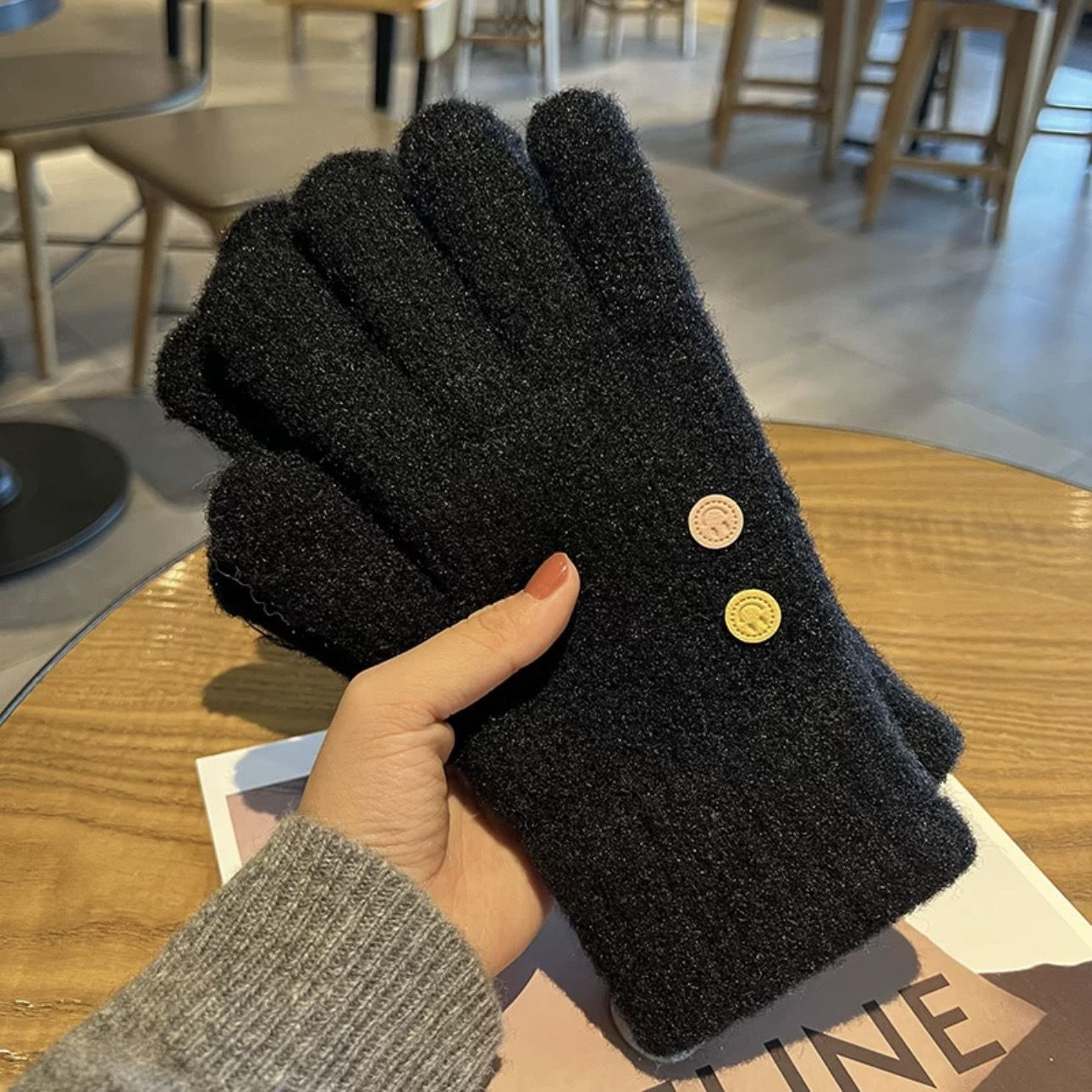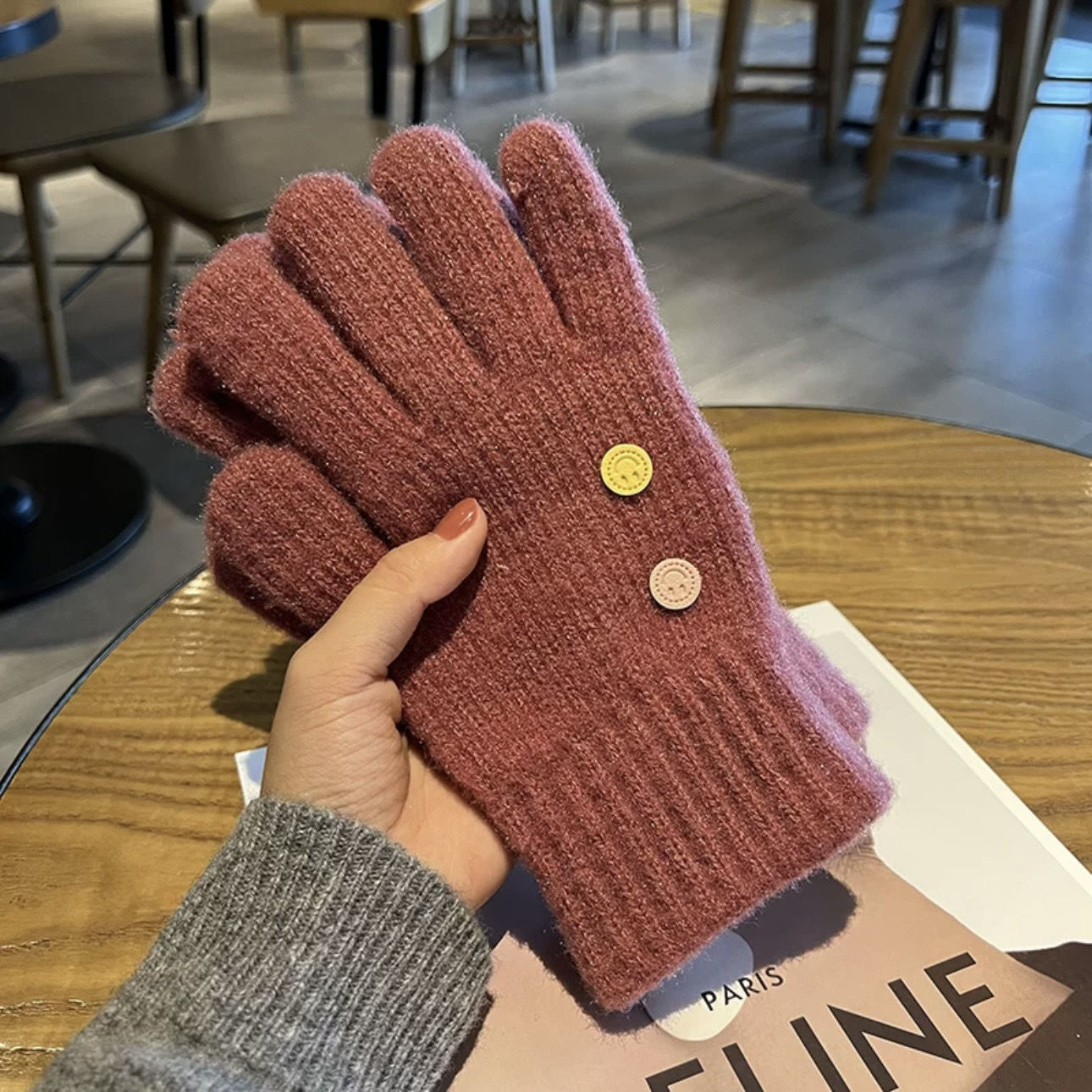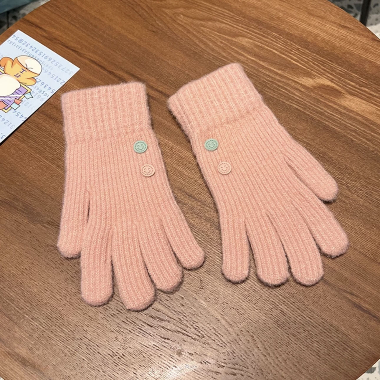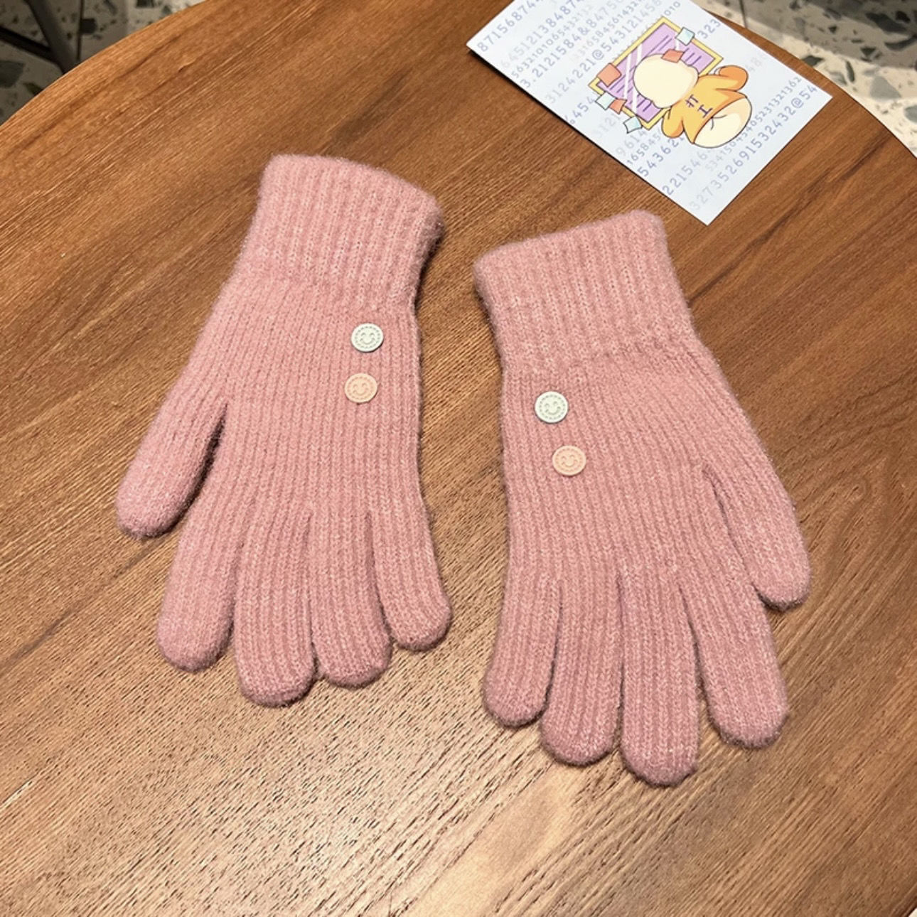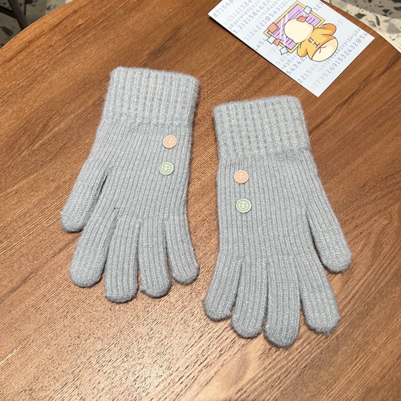 새로운 양모 장갑 소녀 귀여운 겨울 따뜻한 다섯 손가락 니트 터치 스크린 한국 버튼 따뜻한 두꺼운