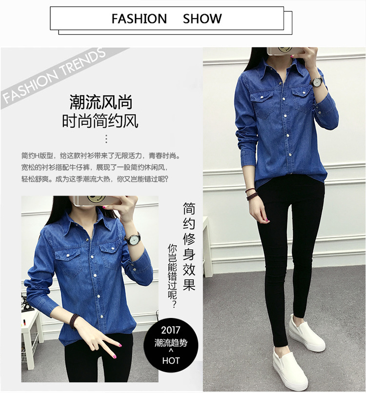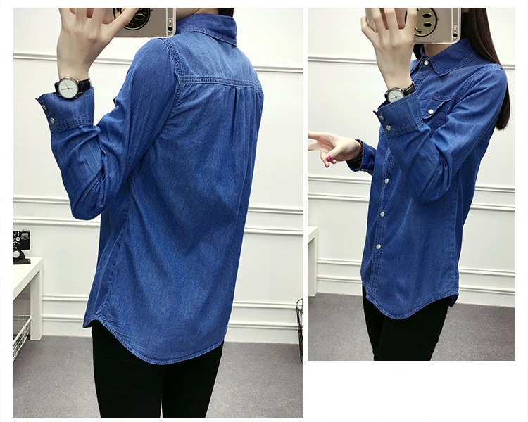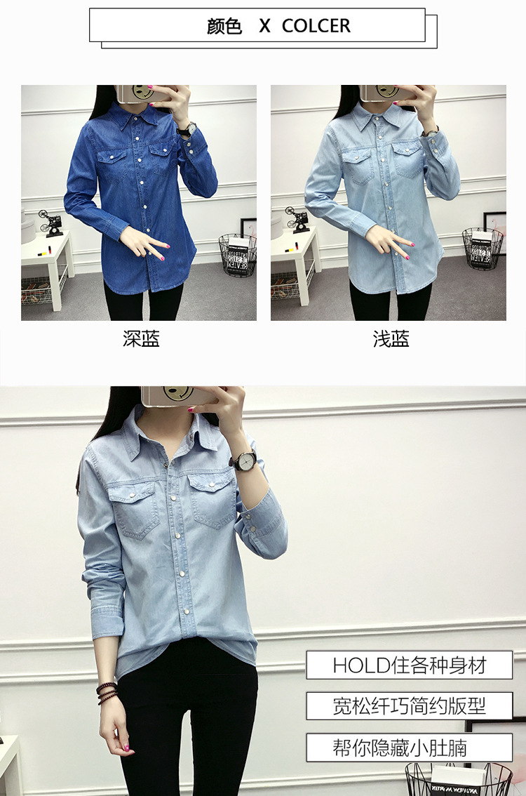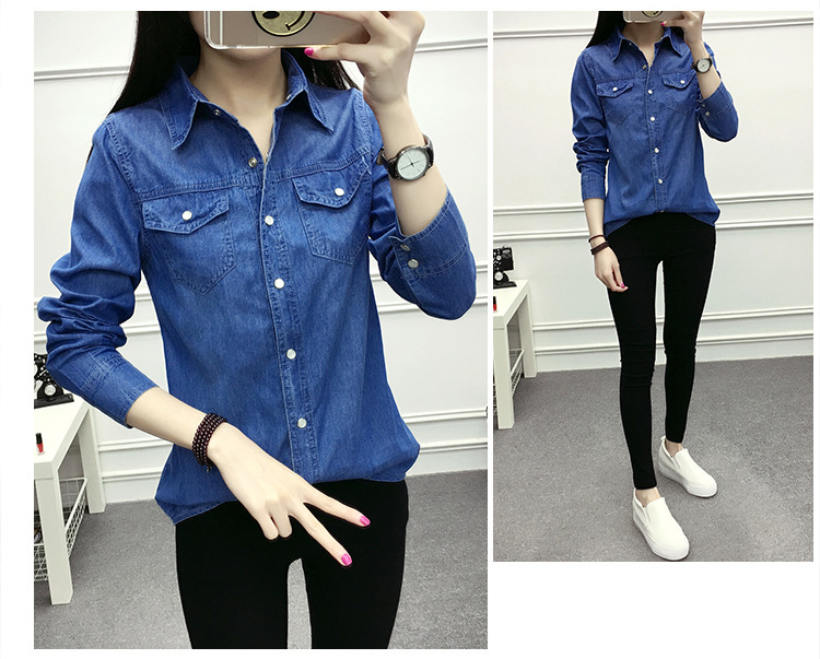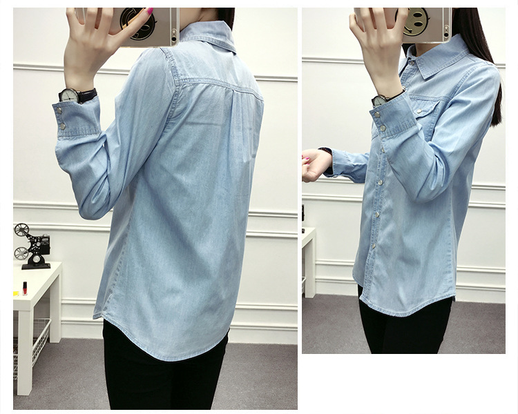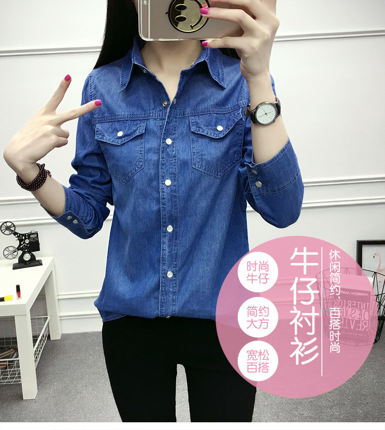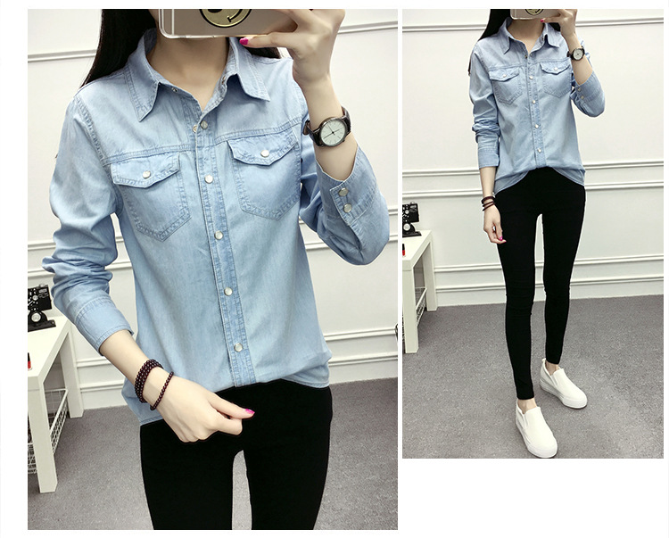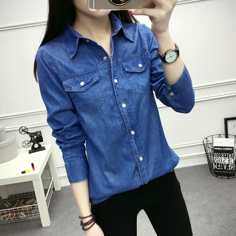리얼 샷 2022 가을 새 데님 셔츠 여성용 슬림 핏 한국 얇은 코트 다용도 긴 소매 청바지스토어 가기