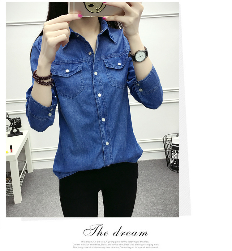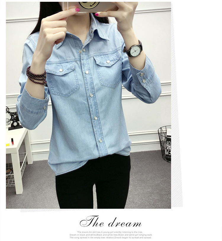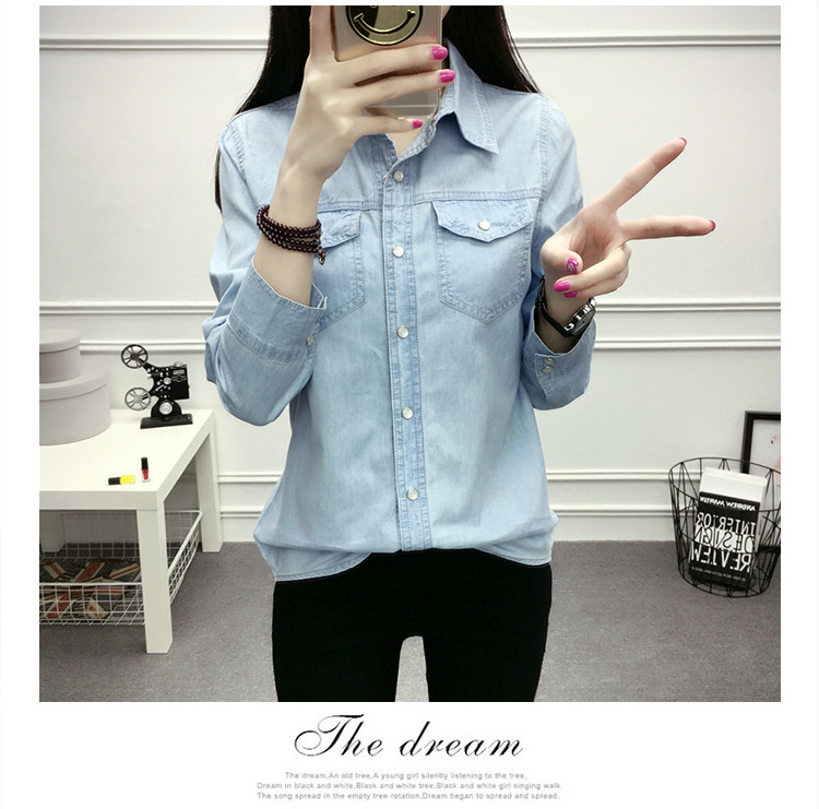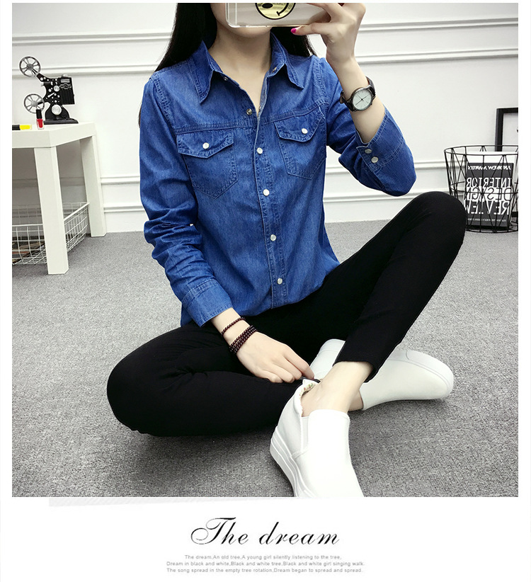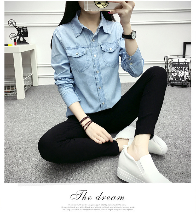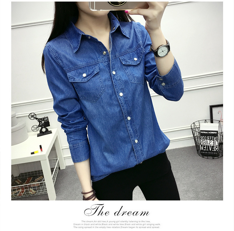 리얼 샷 2022 가을 새 데님 셔츠 여성용 슬림 핏 한국 얇은 코트 다용도 긴 소매 청바지