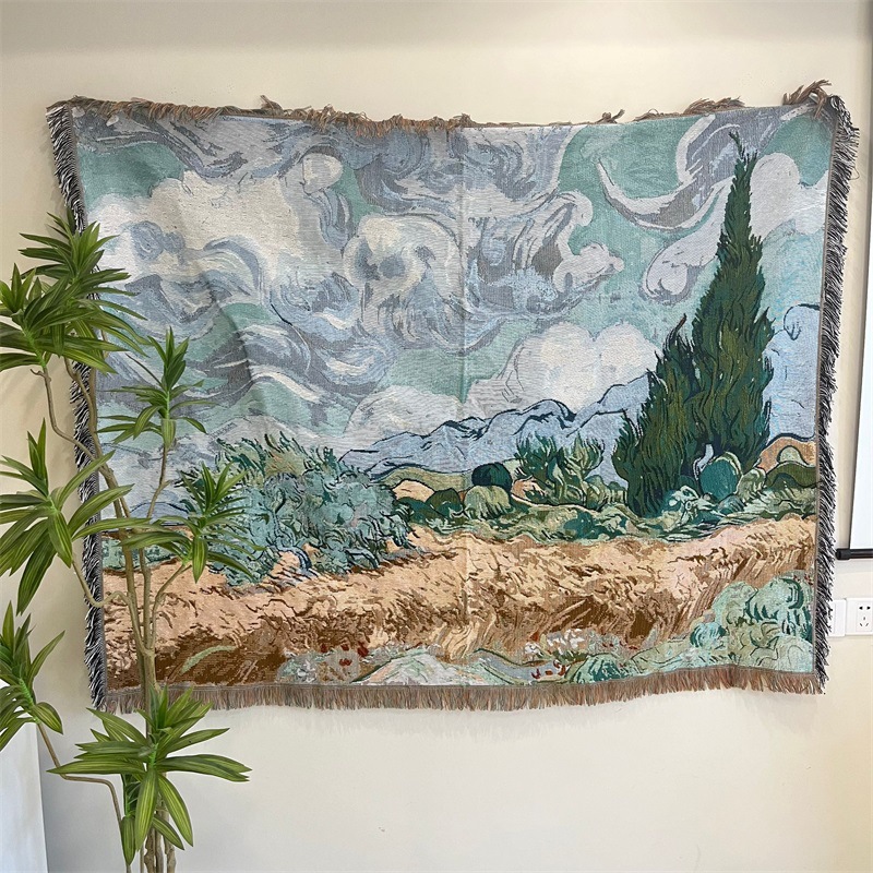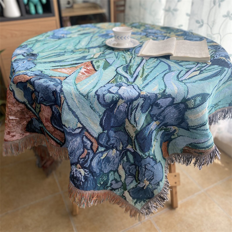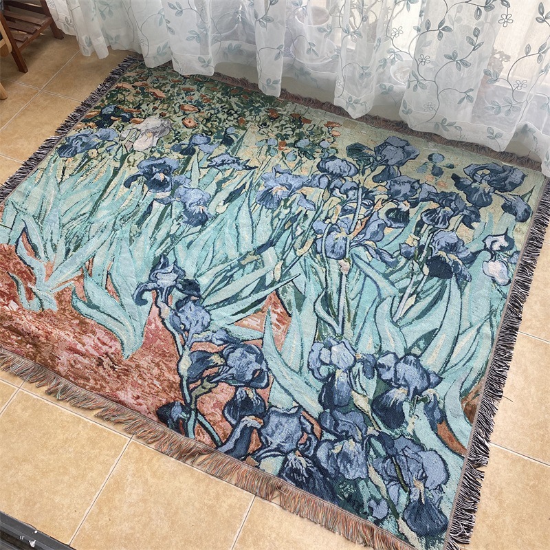 국경 반 고흐 유화 스타일 아이리스 싱글 소파 수건 빈티지 장식 커버 담요 천 옷감 매달려 천 배경 천스토어 가기