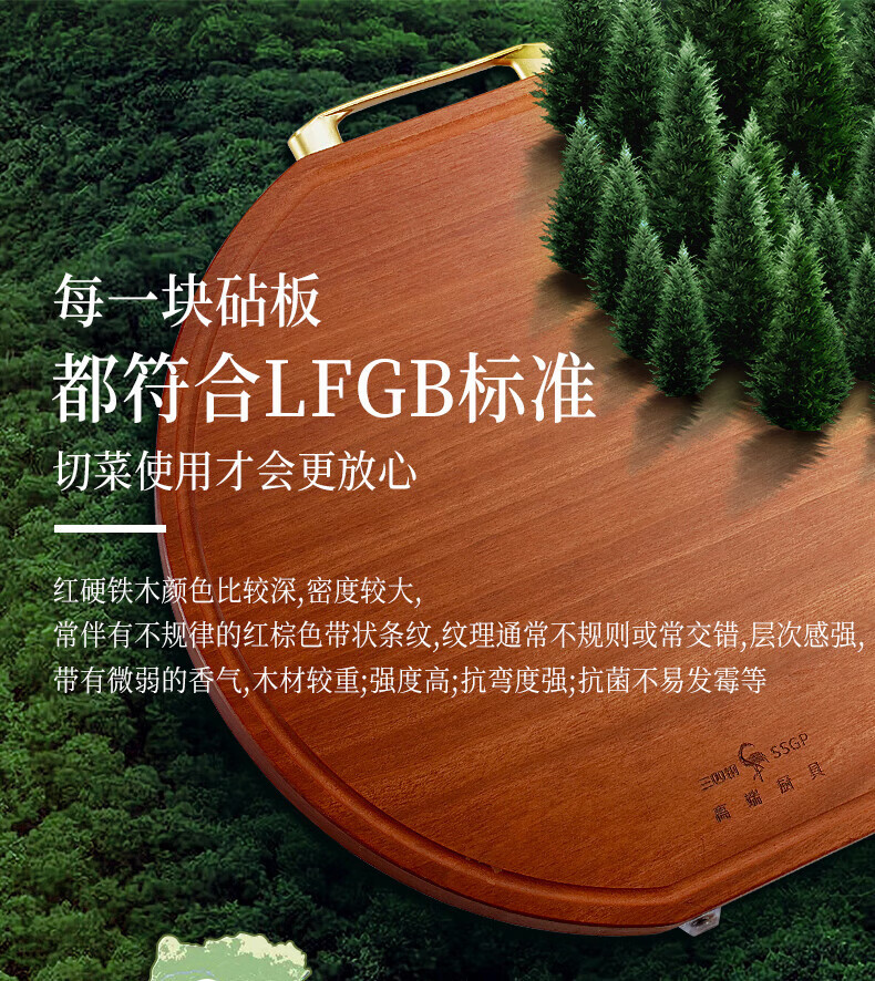 3 개의 4 개의 강철 수입 레드 하드 아이언 우드 커팅 보드 솔리드 우드 가구 라운드 커팅 보드 항균 곰팡이 방지 야채 부두스토어 가기
