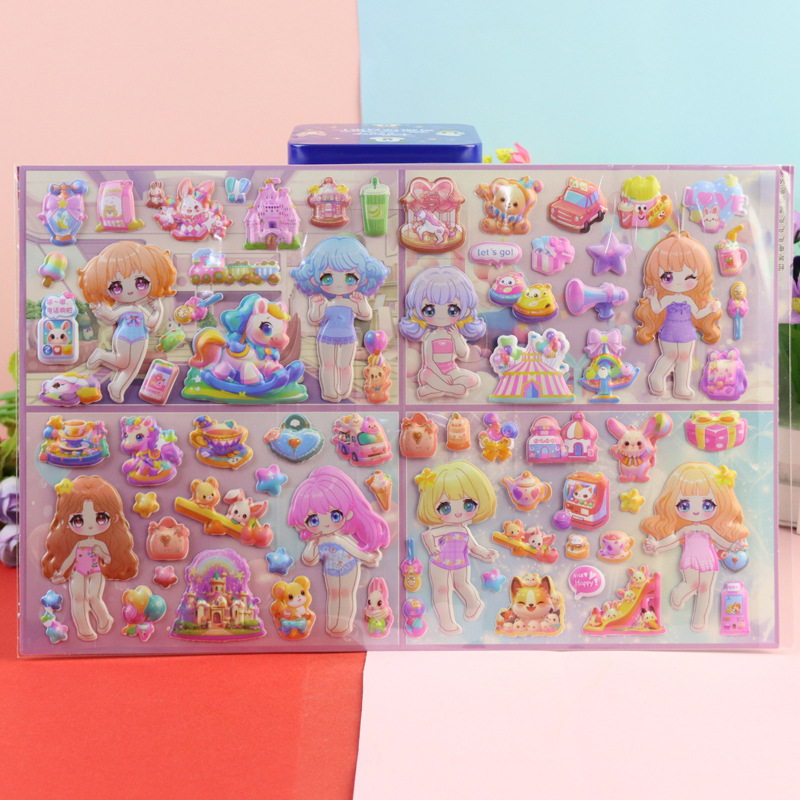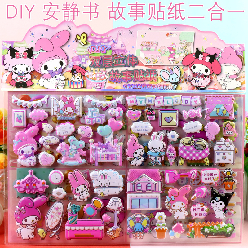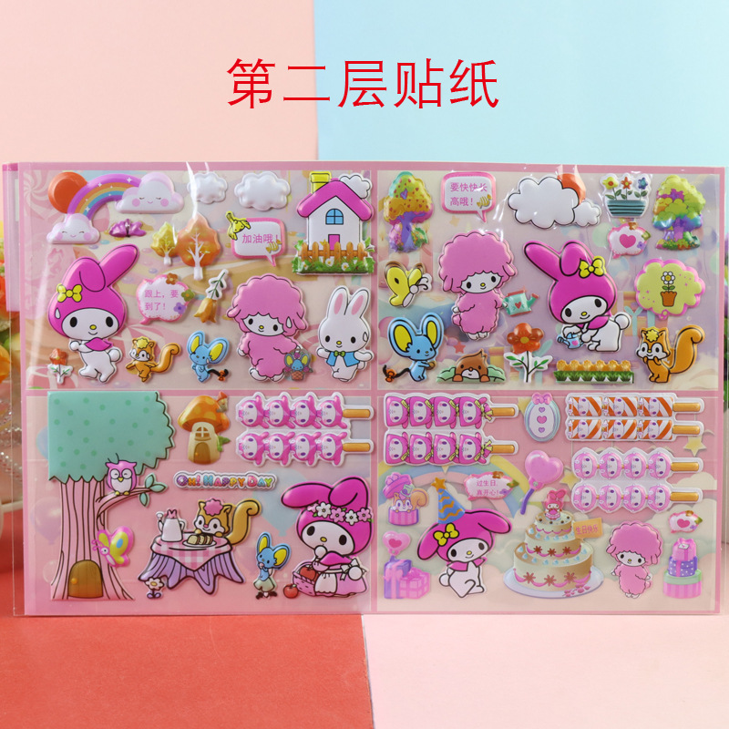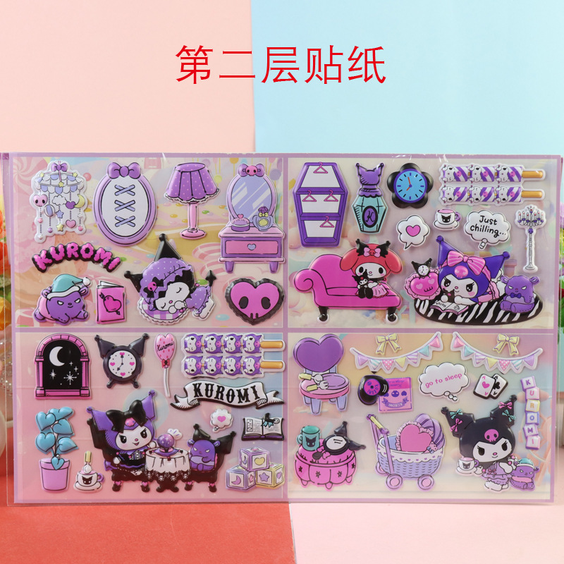어린이 만화 더블 레이어 이야기 Sanrio Kurome 멜로디 입체 대형 버블 스티커 소녀 드레스 업 스티커스토어 가기