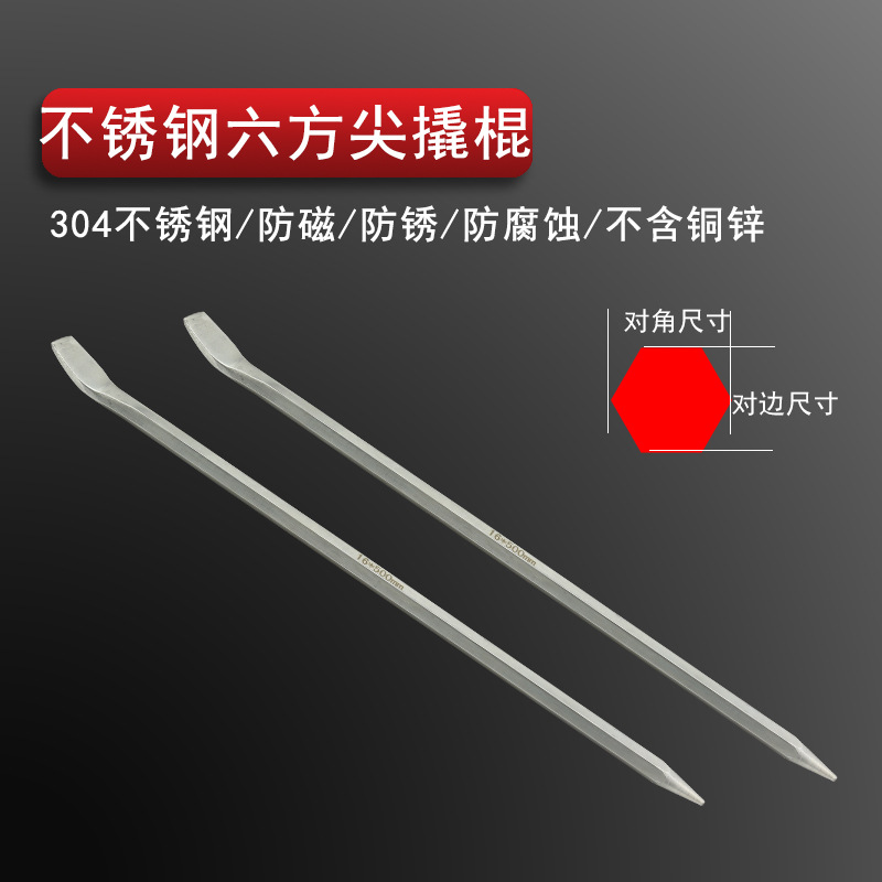 안티자기 육각형 뾰족한 지렛대 304 스테인레스 스틸 지렛대 녹슬지 않는 흰색 강철 6 가장자리 지렛대, 한쪽 끝이 뾰족하고 한쪽 끝이 평평합니다.
