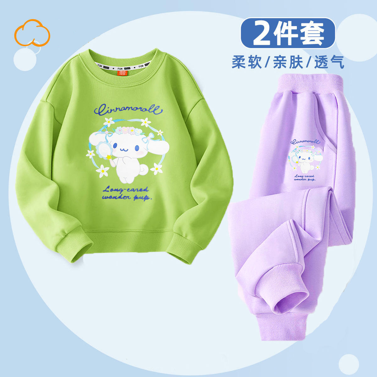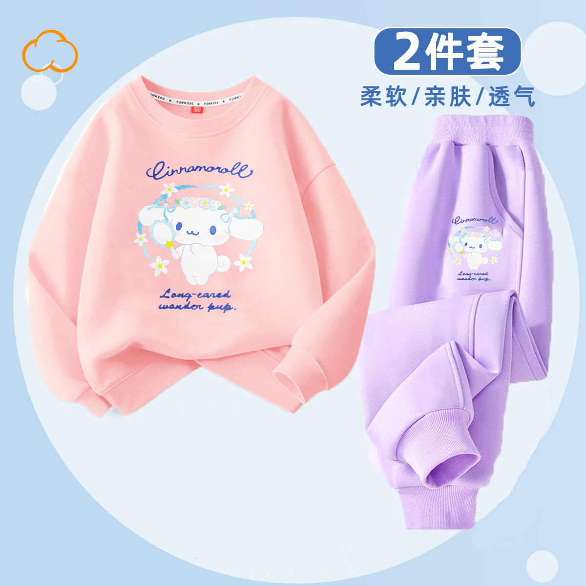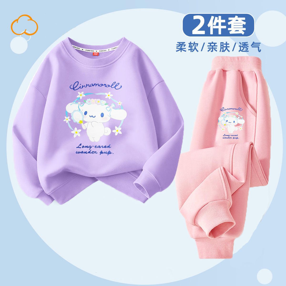 Yugui Dog 어린이 귀여운 세트 소녀의 크루 넥 스웨트 셔츠 다리 바지 큰 어린이를위한 2 피스 세트 봄과 가을스토어 가기