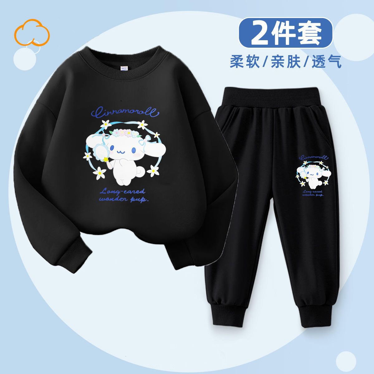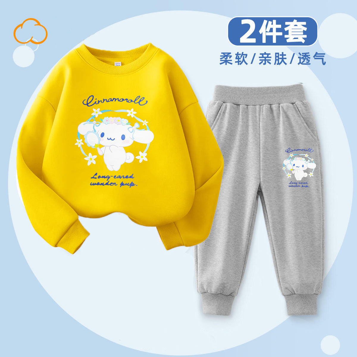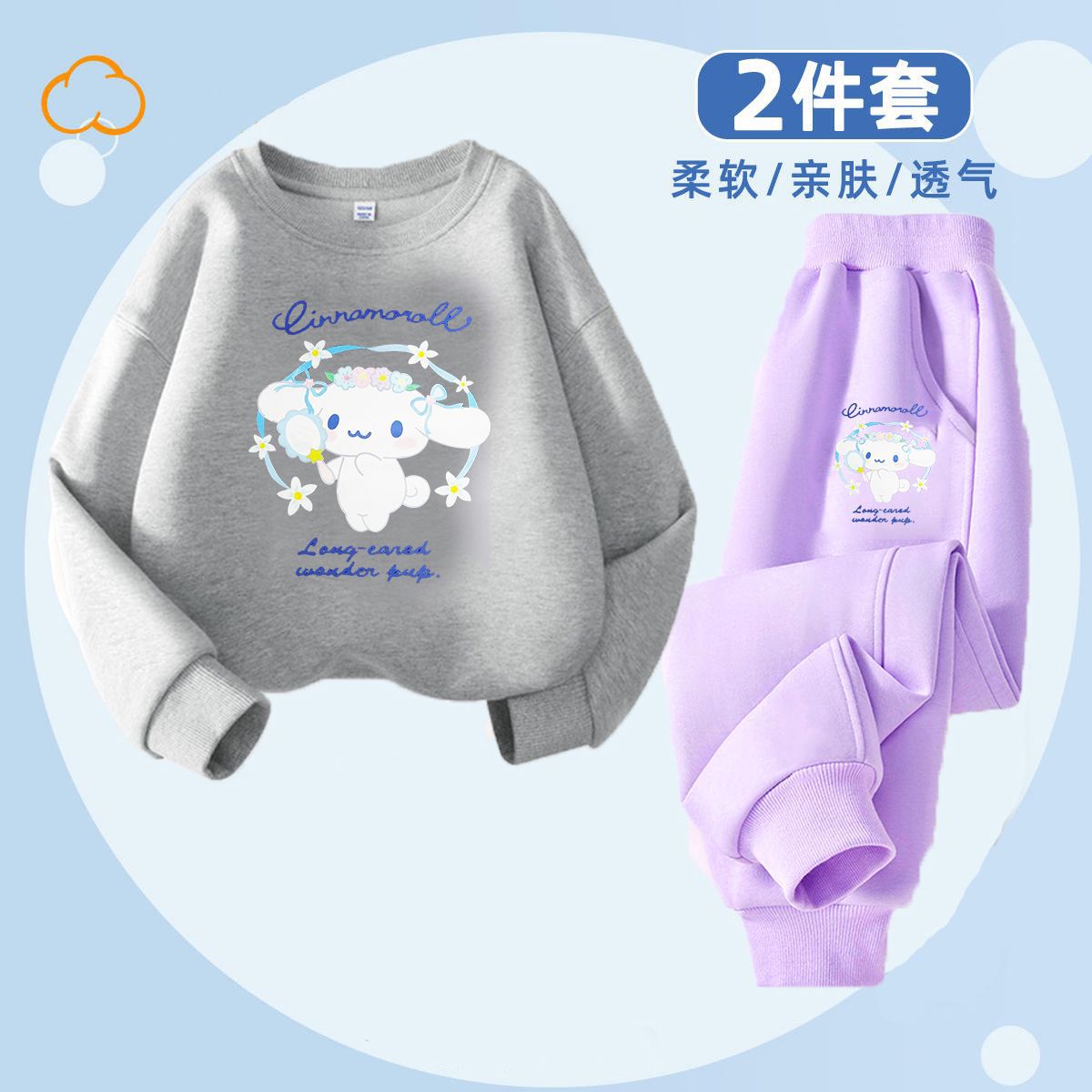 Yugui Dog 어린이 귀여운 세트 소녀의 크루 넥 스웨트 셔츠 다리 바지 큰 어린이를위한 2 피스 세트 봄과 가을스토어 가기