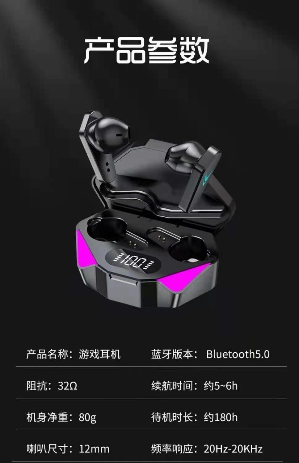 국경 간 뜨거운 악마의 눈 전원 디스플레이 무선 블루투스 헤드셋 반 귀 게임 음악 긴 내구성
