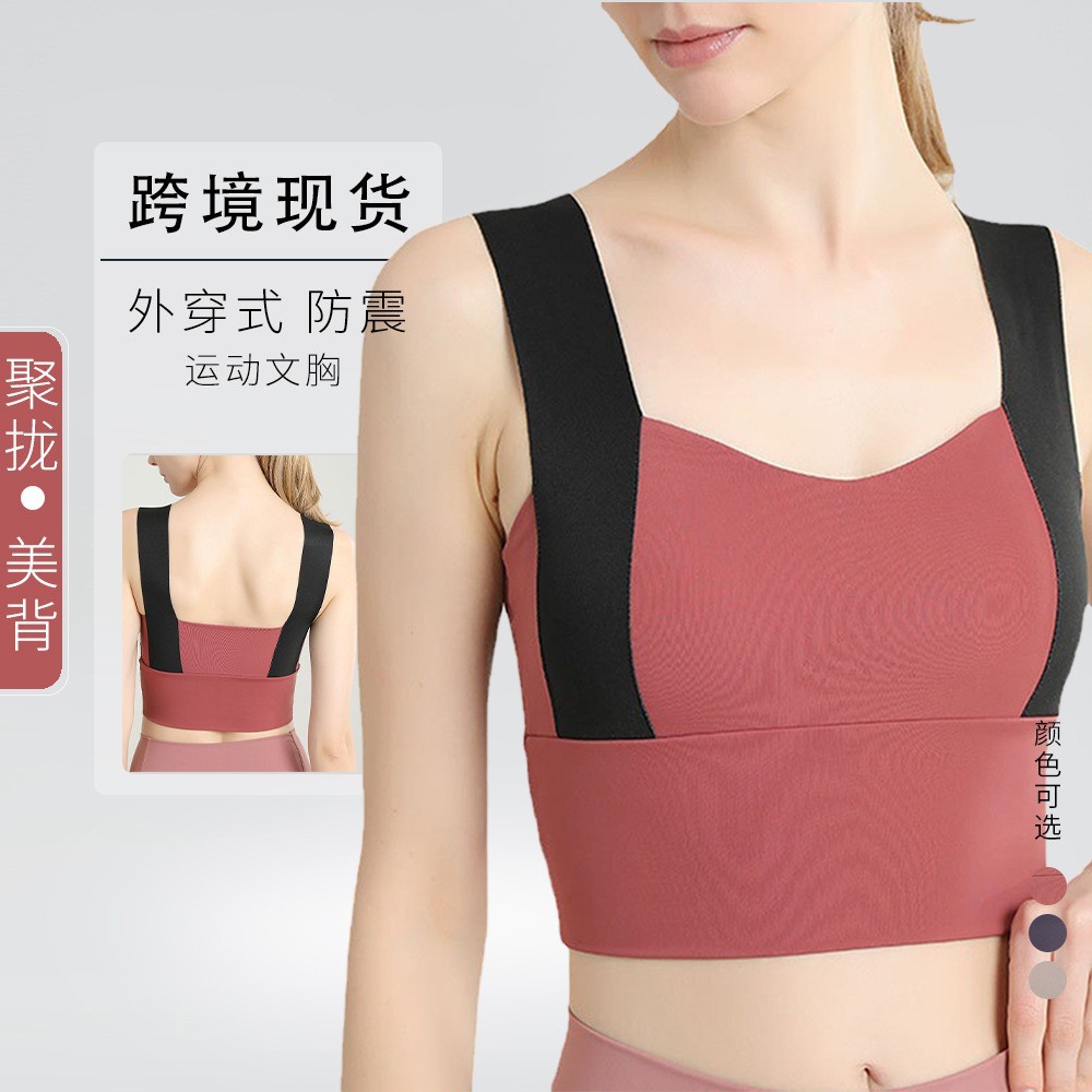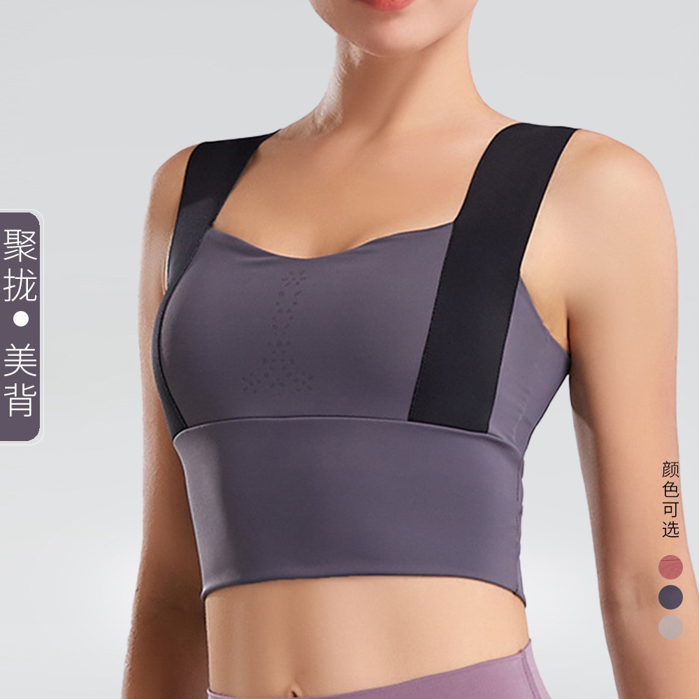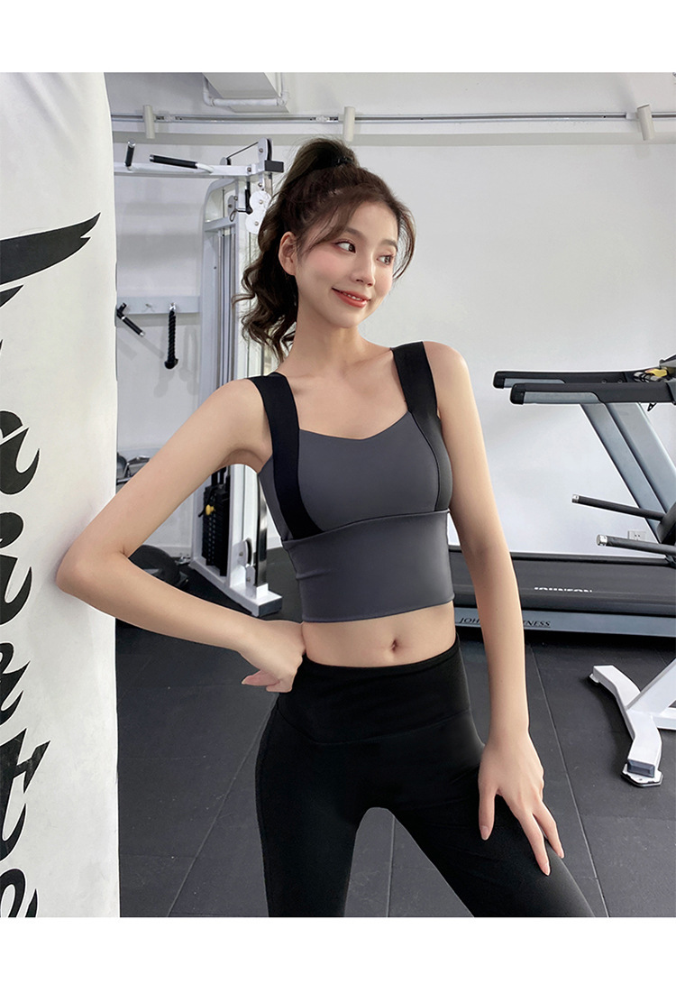 Lulu Naked 착용 피트니스 조끼 스티칭 대조 컬러 와이드 어깨 스트랩 스포츠 브라 충격 방지 액세서리 요가 속옷스토어 가기