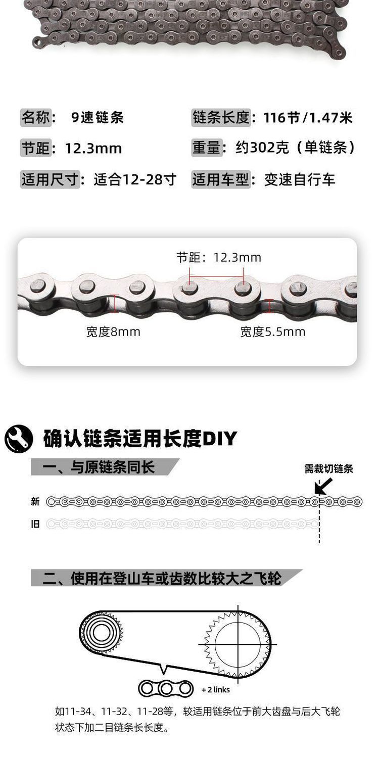 유니버설 자전거 체인 단일 속도 가변 속도 접이식 유모차 산악 자전거 일반 자동차 체인 액세서리 6/7/8/9 속도