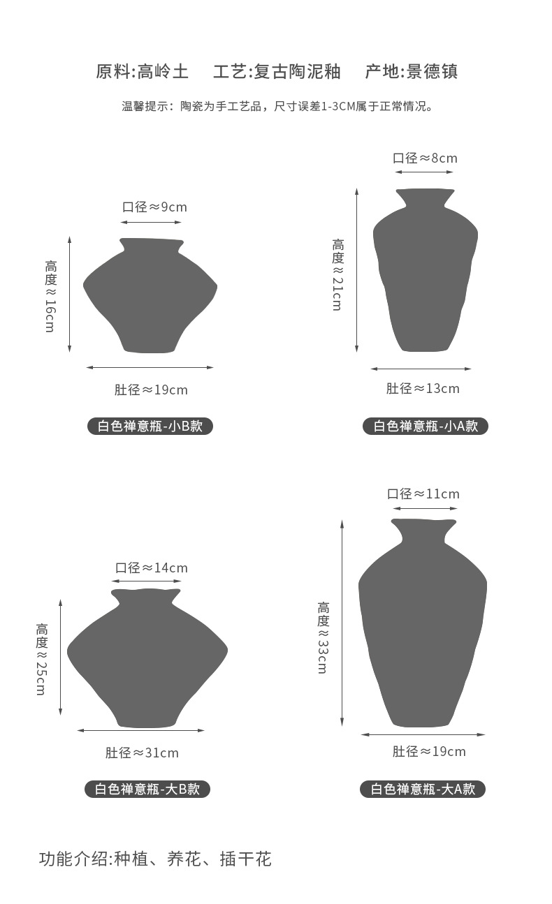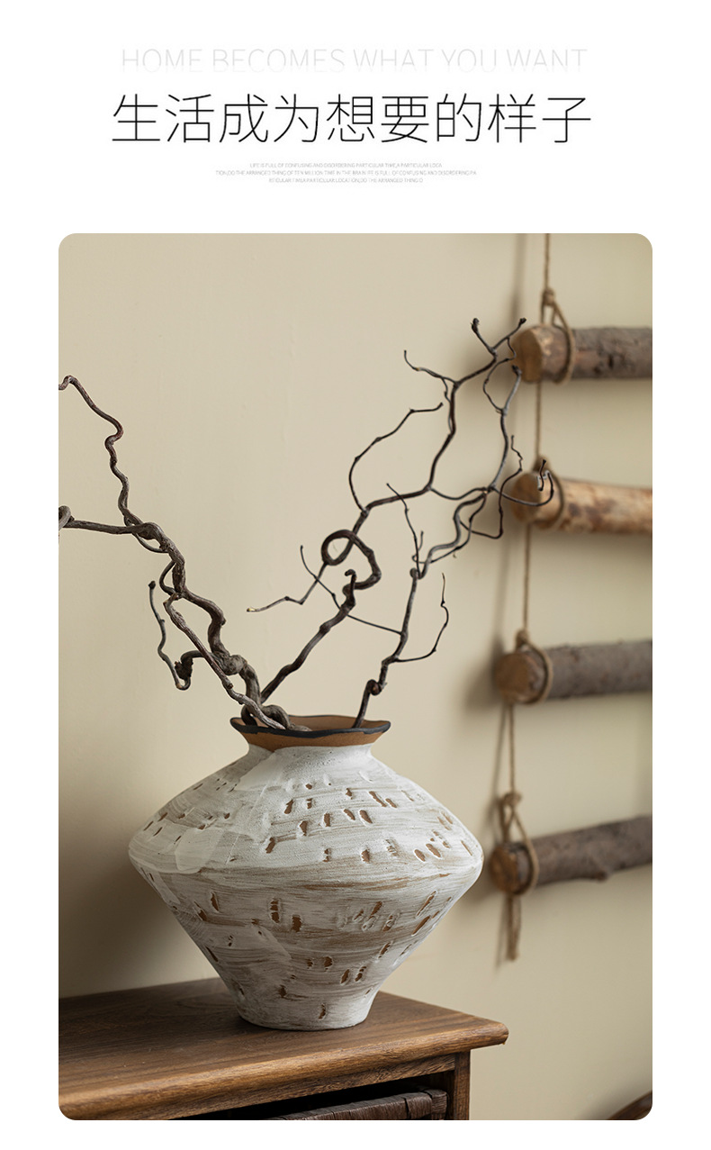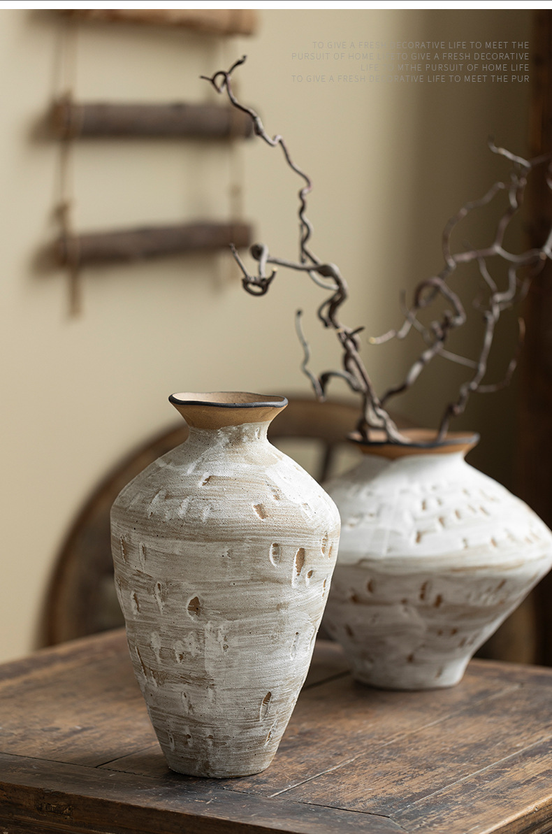 Jingdezhen Zen 홈 장식 빈티지 예술 스타일 수제 세라믹 수경 꽃병 호텔 장식품