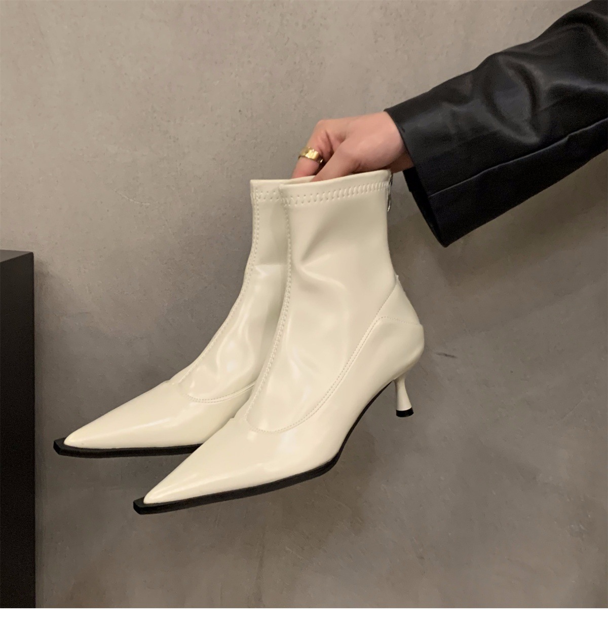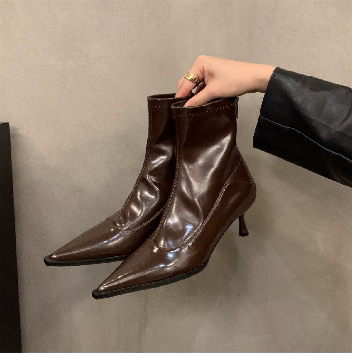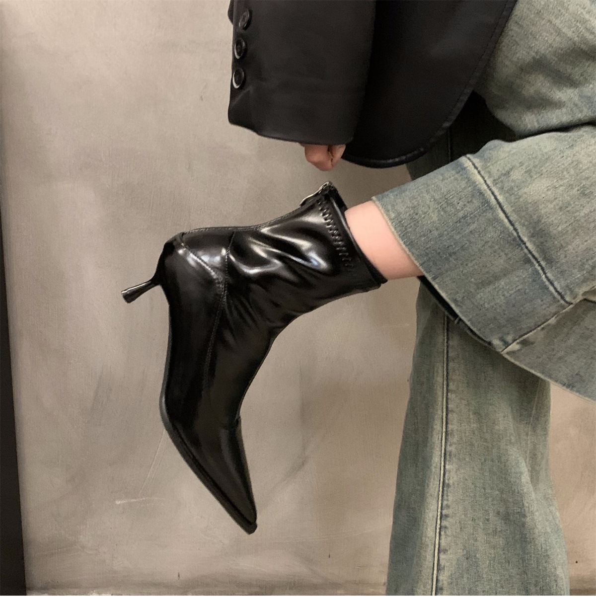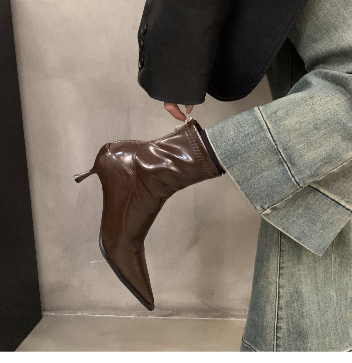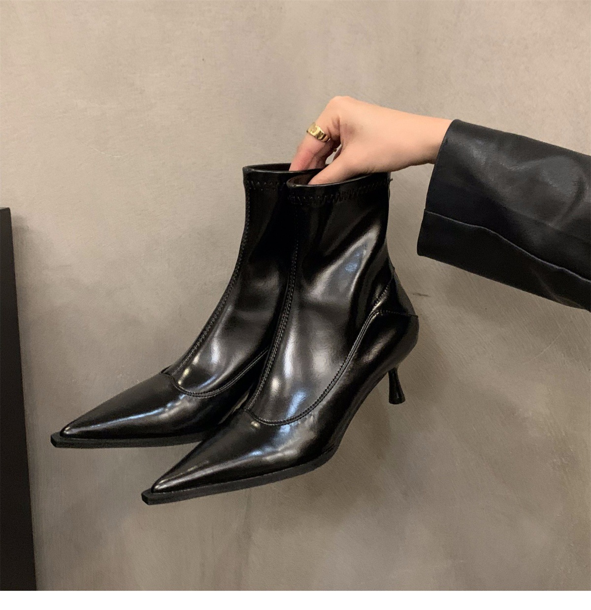 하이힐 포인팅 프랑스 작은 짧은 부츠 여성 신발 2024 새로운 봄 가을 겨울 기모 얇은 부츠 한국 작은 발목 부츠스토어 가기
