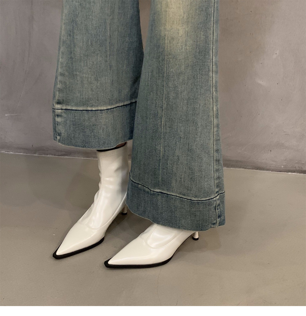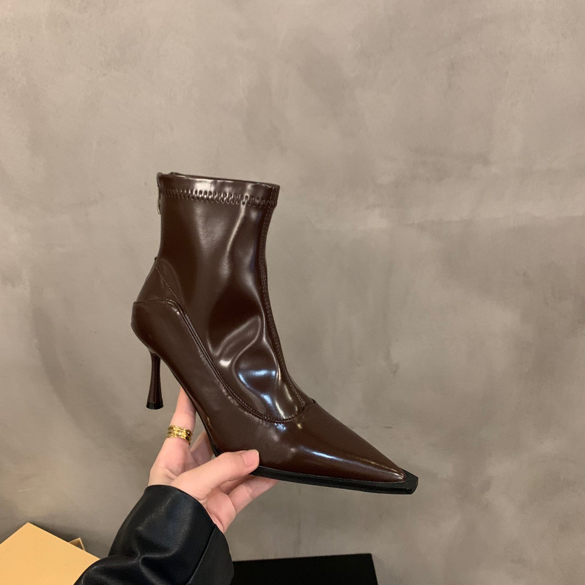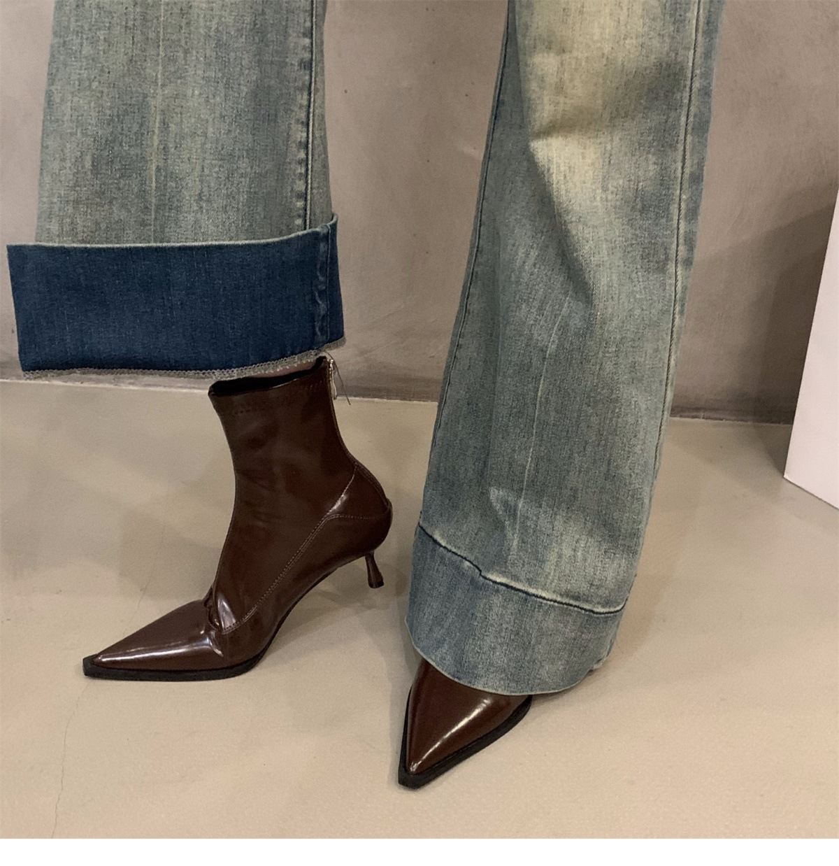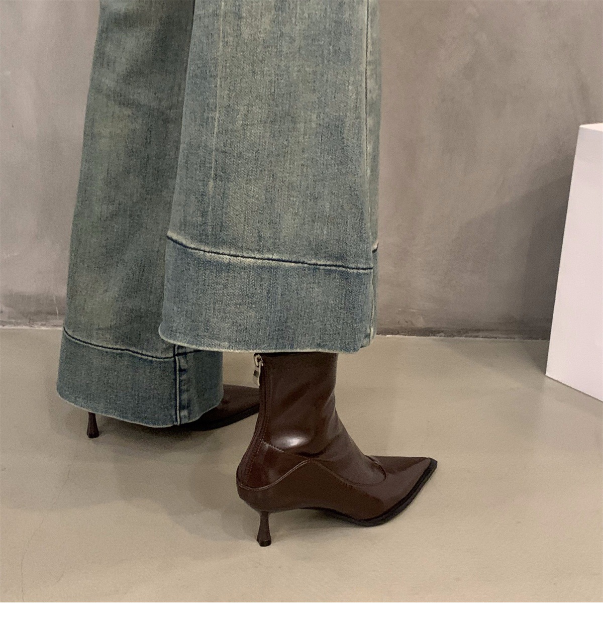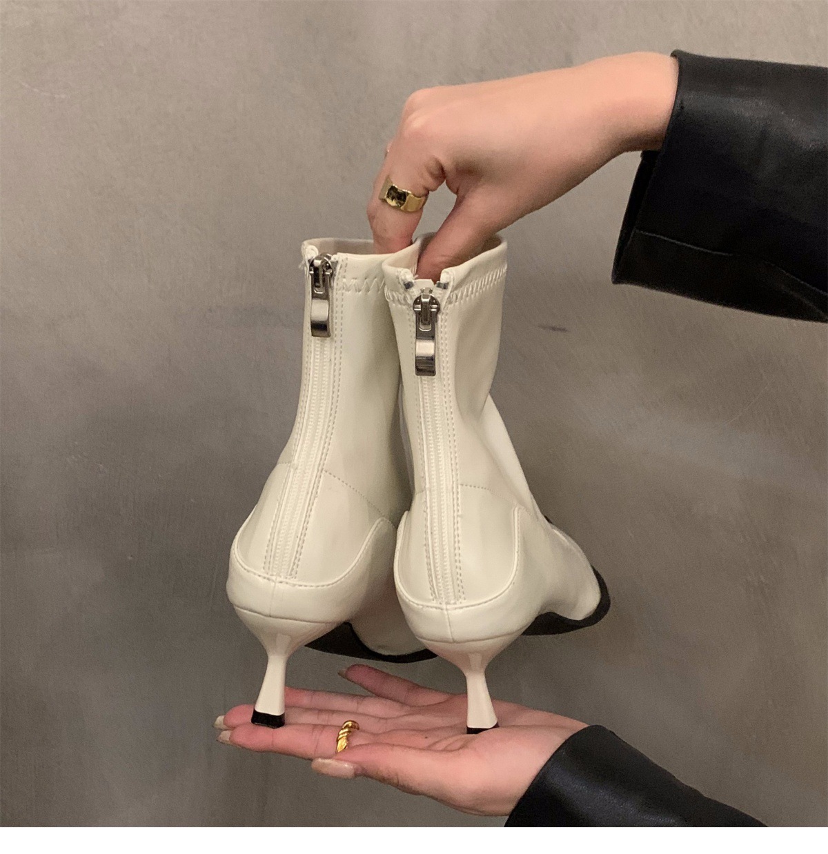 하이힐 포인팅 프랑스 작은 짧은 부츠 여성 신발 2024 새로운 봄 가을 겨울 기모 얇은 부츠 한국 작은 발목 부츠스토어 가기