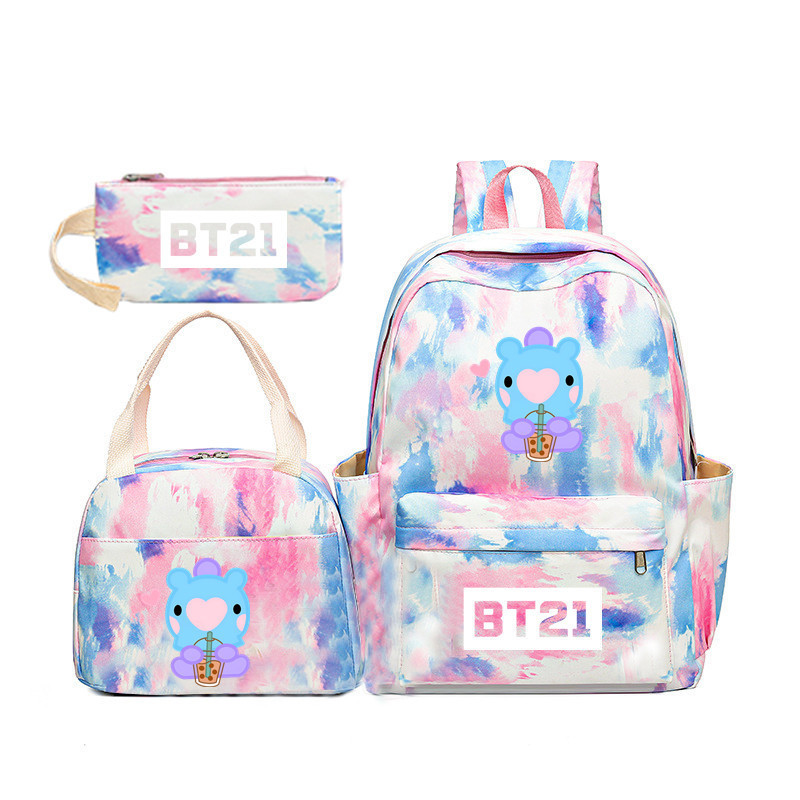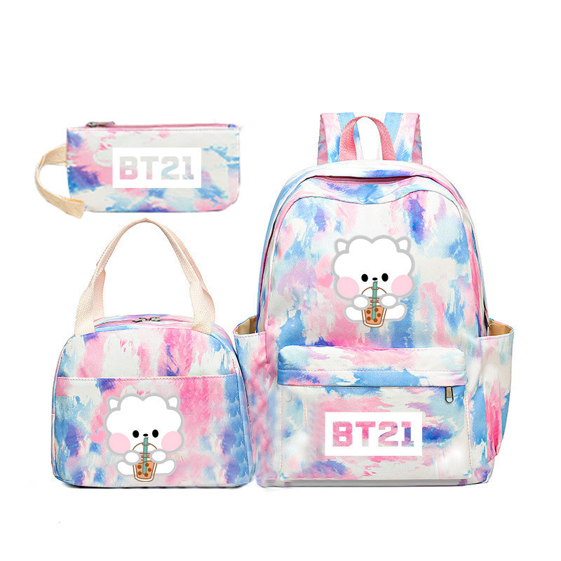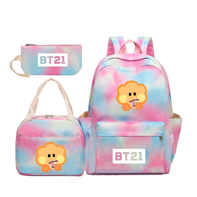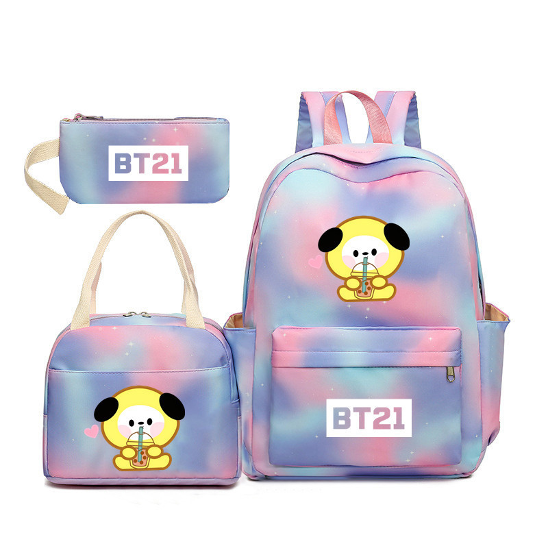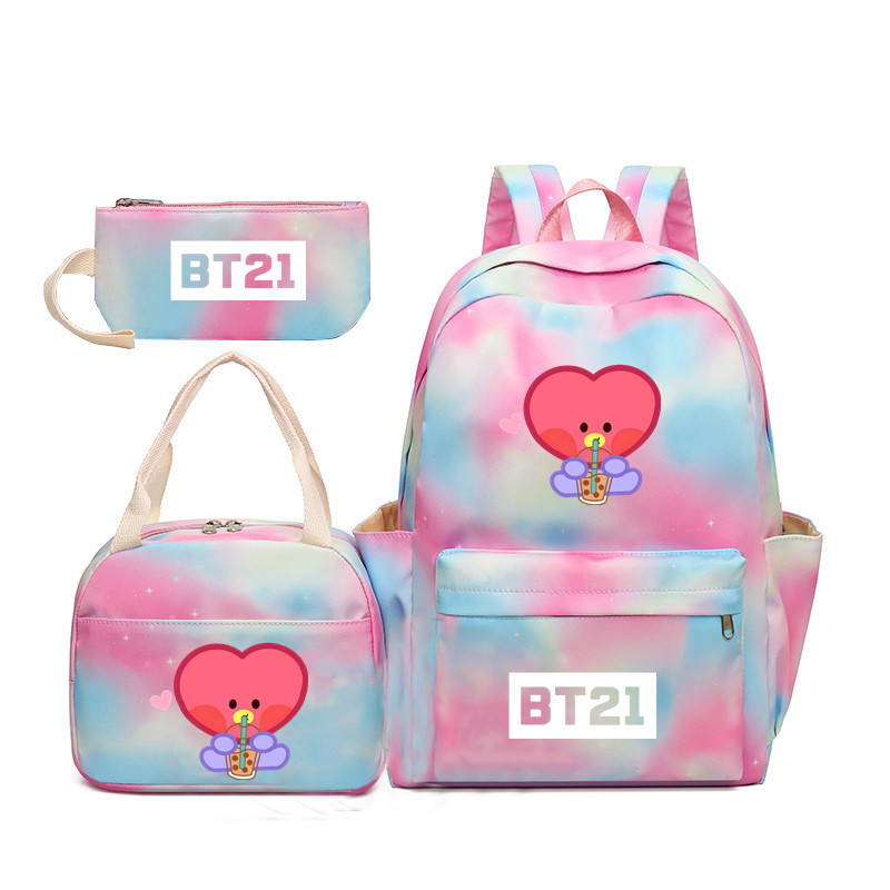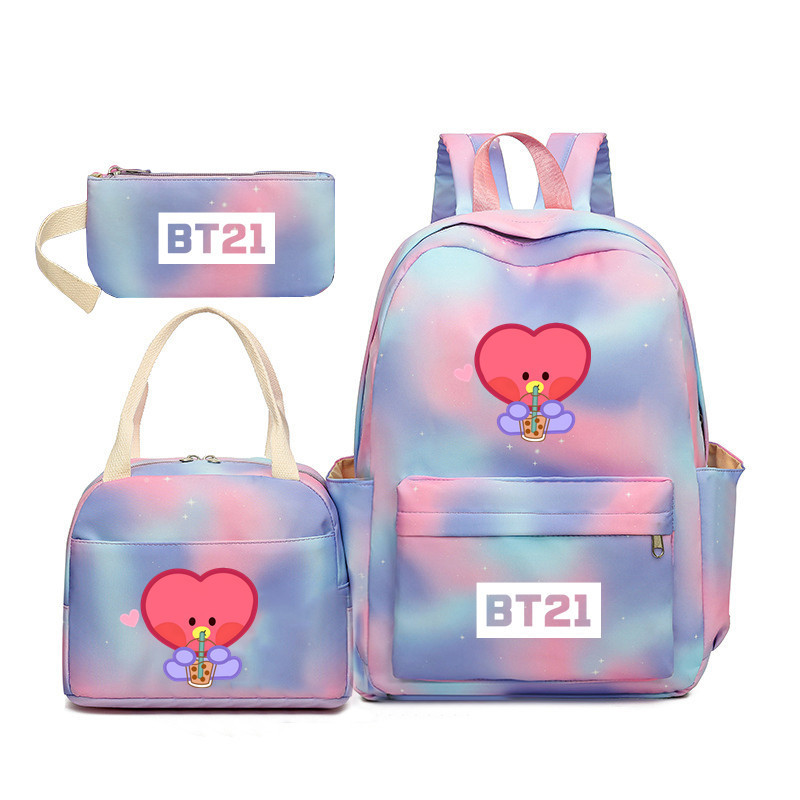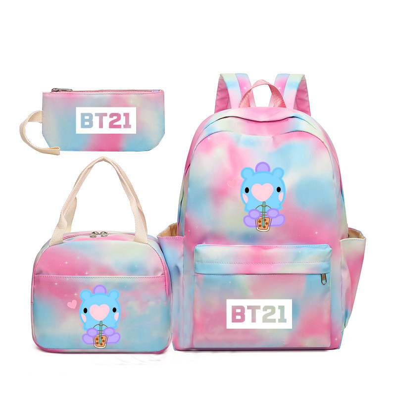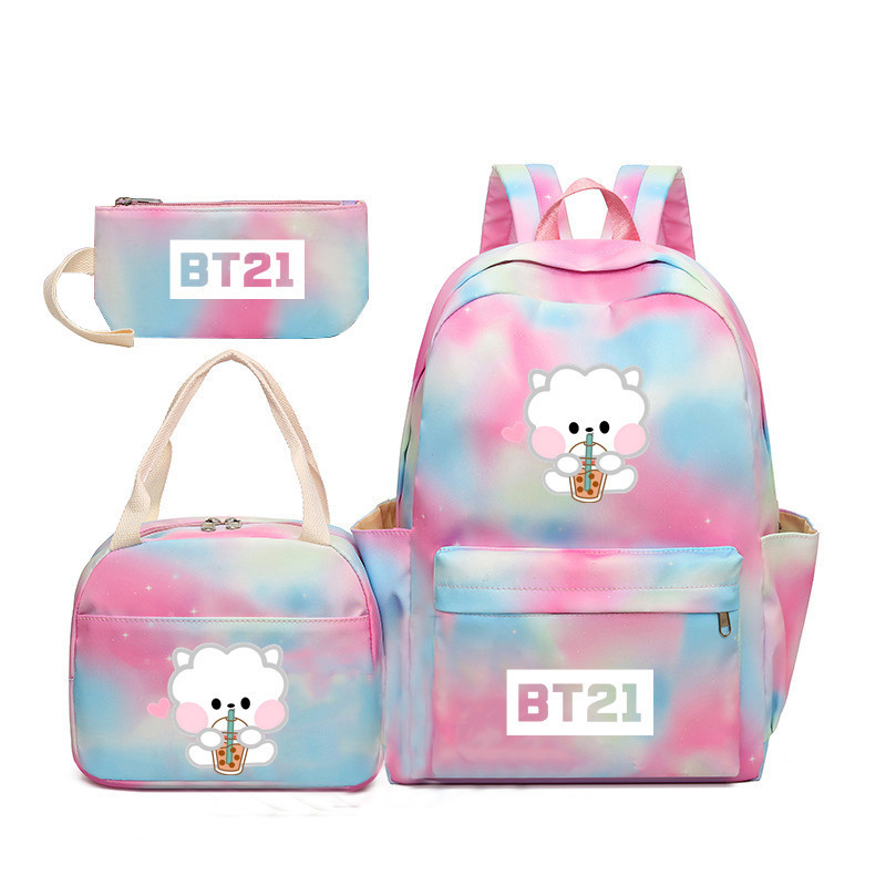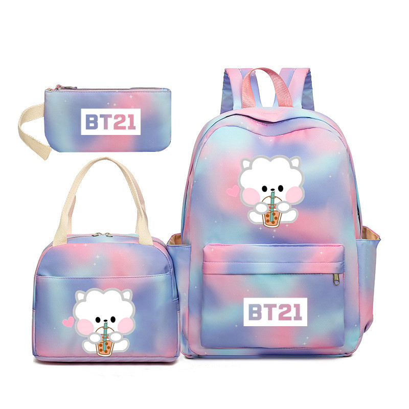 BTS 아기 만화 우유 차 그라디언트 컬러 레인보우 배낭 남녀 학생용 3 종 스쿨백